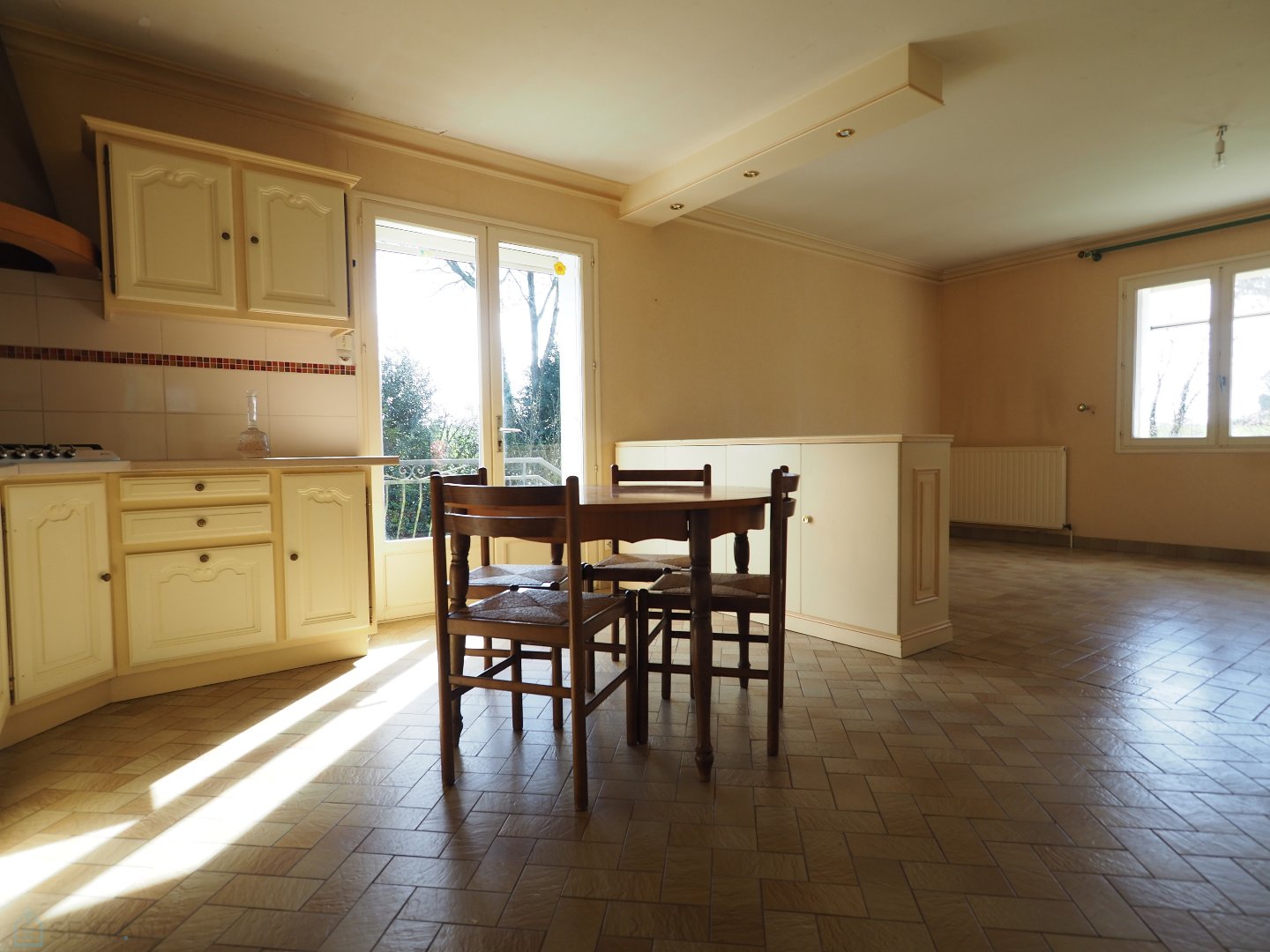 Une Maison à la campagne. Belle qualité de construction, beaux volumes et luminosité pour cette traditionnelle située à l'écart des axes passants à 3 kms du bourg, 13 minutes de Locminé et de Pontivy. Les amateurs d'espace apprécieront également ses 4 480 m² de terrain arboré, son sous-sol complet, son hangar fermé ! Elle offre une très belle entrée déplafonnée conduisant à une pièce de vie avec cheminée équipée d'un insert et ouverte sur une cuisine aménagée et équipée. Deux chambres avec placards. Une salle de bains ainsi qu'un wc. A l'étage, le palier mezzanine dessert 4 chambres, une salle d'eau, un wc. Son vaste sous-sol est très sain, très lumineux également, divisé en plusieurs espaces : garage avec porte grande largeur, espace chaufferie buanderie, cave, atelier, espace sanitaire avec wc et douche. Le tout sur un terrain de près de 4 500 m² avec un hangar fermé en bois sous tôle de 200 m² environ. De beaux arbres : oliviers, eucalyptus, saule pleureur, châtaignier, cerisier