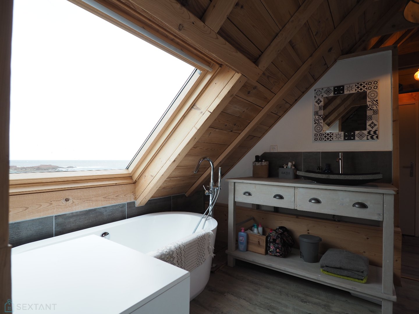 Embarquement en direction d'une île entre le ciel et l'eau, l'île de Sein, une île encore sauvage posée sur l'Océan. Un bel écrin pour cette maison « Coup de Cur » lumineuse et accueillante, joliment rénovée, toute de bois et de blanc vêtue, d'où l'on voit la mer par chacune de ses ouvertures et ses phares au large. Une maison typique avec un joli jardin sans vis-à-vis et ouvert sur la vue mer. Dès l'entrée, on s'y sent bien. Un espace vestiaire buanderie avec un wc qui conduit à une belle pièce de vie de 42 m² avec une cuisine aménagée et équipée. Une pièce baignée de lumière avec ses ouvertures plein Sud, un poêle à pellets programmable à distance pour un confort en toute saison. L'escalier blanchi nous conduit au 1er niveau, très cosy, avec son salon avec vue sur l'Océan, ses deux chambres et sa salle d'eau. L'escalier continu jusqu'au 2nd où nous attend une très agréable suite parentale avec vue de toute part sur la mer. Un espace ouvert avec ici une chambre et un espace bureau et salon, là un dressing, une salle de bains, une douche, un wc. A l'extérieur une terrasse avec barbecue et réserve d'eau enterrée, un carré en herbe pour les amoureux du jardin. A signaler pour ceux qui souhaiteraient encore plus d'espace, 2 permis acceptés L'un pour environ 35 m² et l'autre pour 18-20 m². Pour les uns maison de famille, pour les autres, port d'amarrage pour une retraite sereine et iodée ou bien encore refuge propice à la création pour un écrivain ou un scénariste en recherche d'inspiration