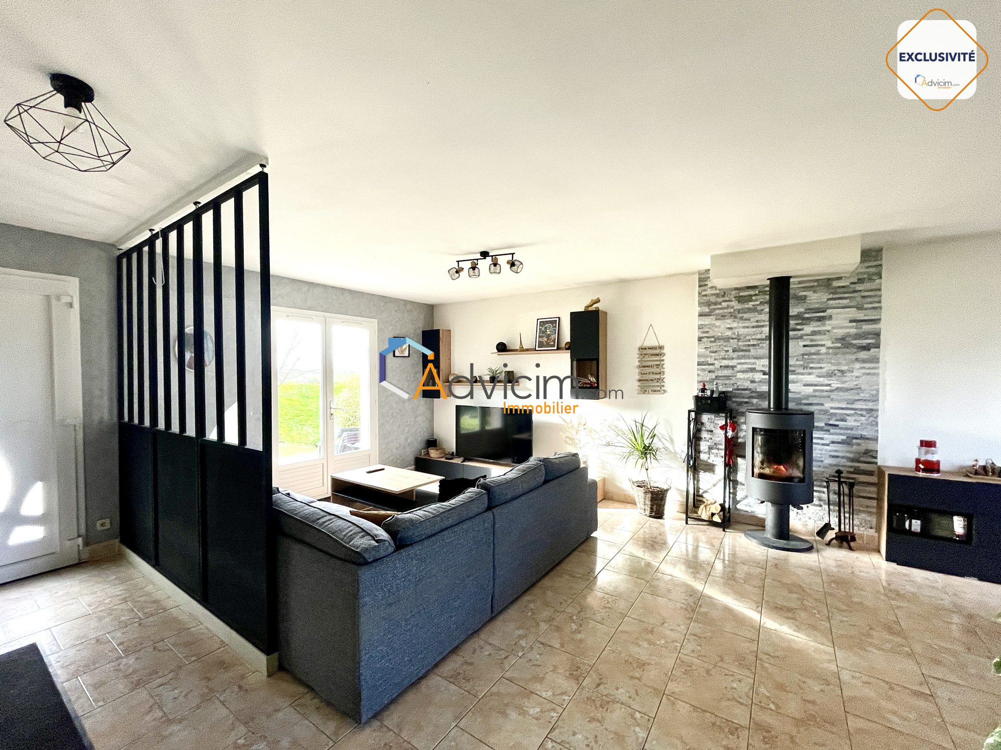 - Grand séjour traversant avec poêle à bois 40 m²