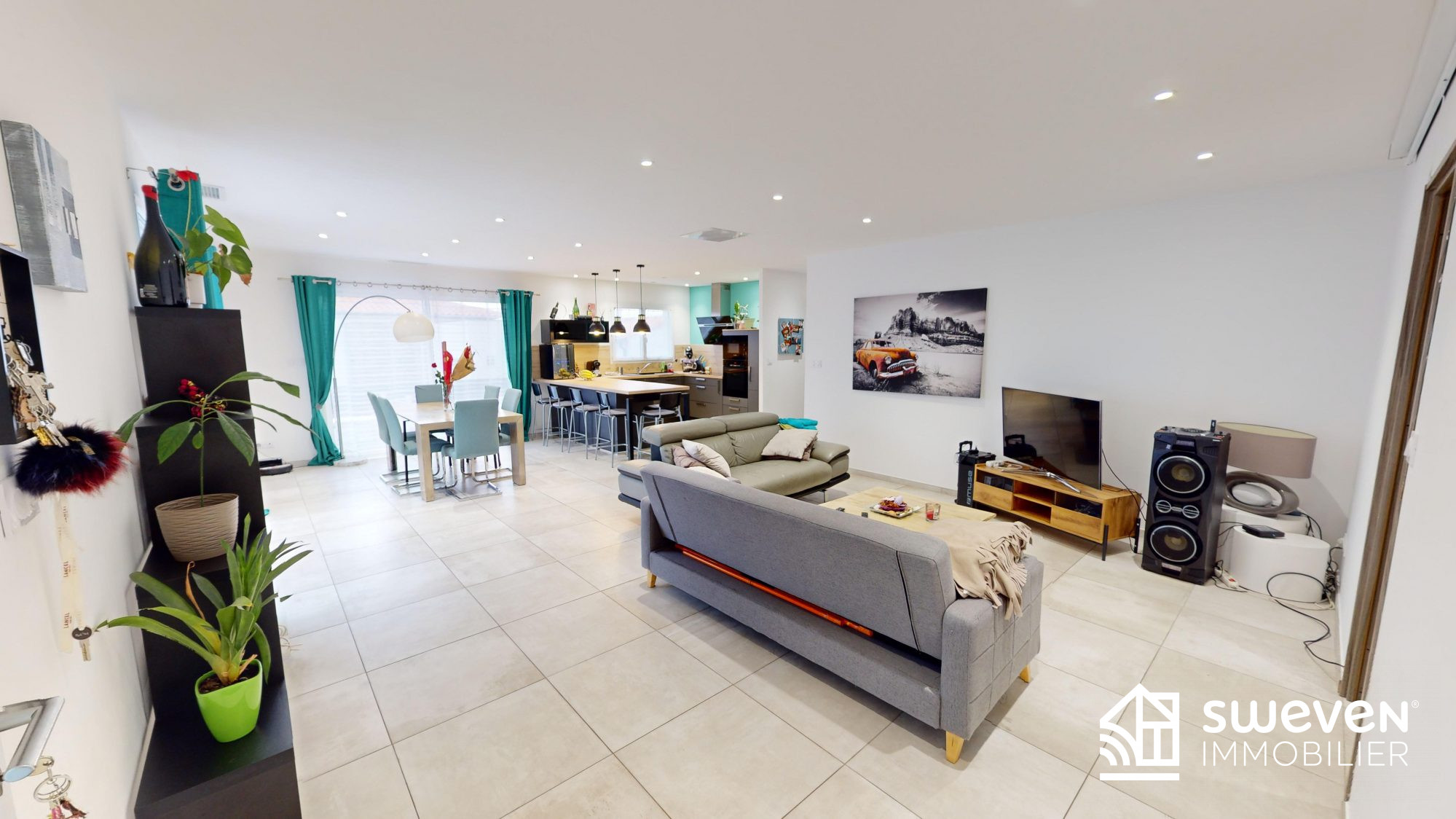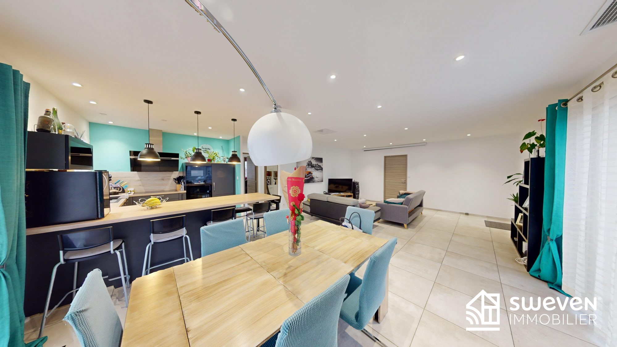 Dès l'entrée, laissez-vous séduire par une spacieuse pièce de vie baignée de lumière, offrant un séjour de 50 m² avec cuisine ouverte.