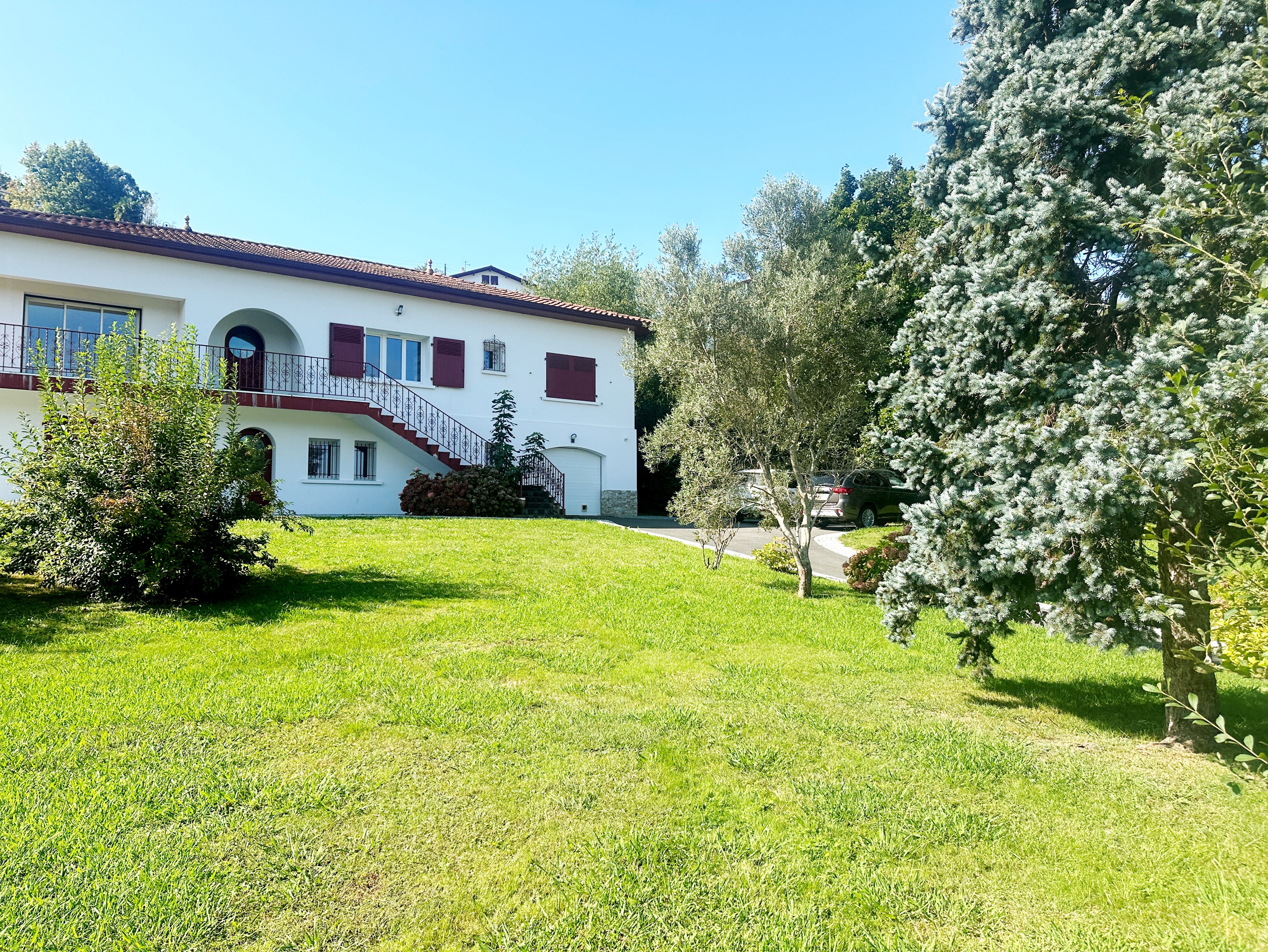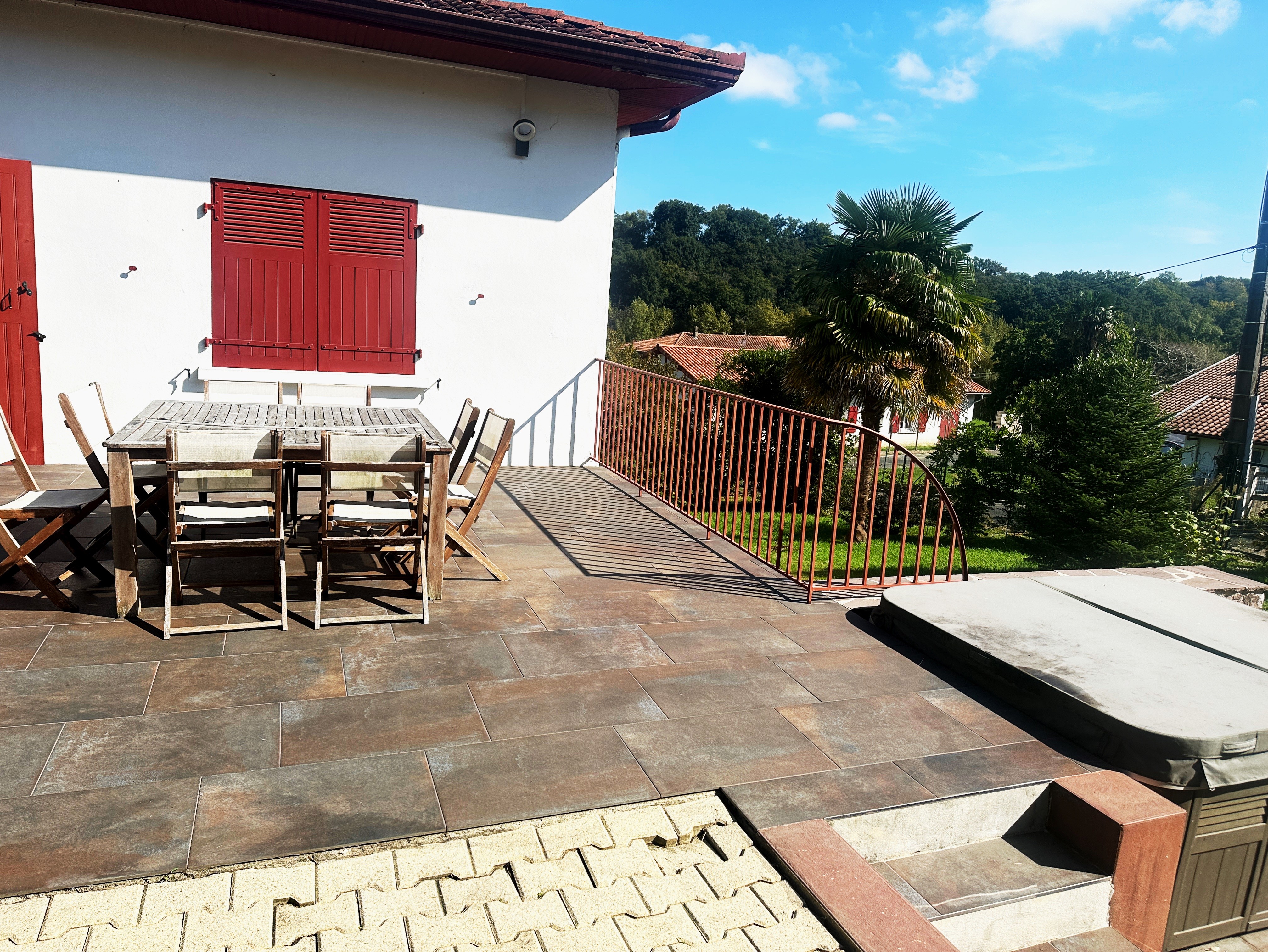 Cette belle maison parfaitement rénovée se situe près de centre-ville de St-Pée-sur-Nivelle. Composée de deux niveaux, elle vous donne un tas d'options pour y vivre et/ou recevoir un profit locatif avec sa partie indépendante (un T3) et sa partie principale d'environ 130 mètres carrés. Au rez de chaussée vous avez un salon ensoleillé avec une cuisine haut de gamme et ses trois chambres, 2 salles d'eau, un WC, un accès sur une belle terrasse en pavés du Portugal sans vis à vis avec jacuzzi et au rez-de-jardin un appartement T3 indépendant ainsi qu'un espace pouvant servir comme atelier, bureau, salle de jeux. Beau cadre, 5 chambres au total, 4 salles de bains, un garage, magnifique jardin arboré de 970 mètres carrés avec une possibilité d'acquérir les 500 mètres carrés du terrain divisible et constructible en plus. 4 salles de bains, jolie jardin et beau cadre. La maison est rénovée avec des matériaux de qualité, elle vous séduira par sa luminosité, sa jolie vue dégagée et son état impeccable.Honoraires : 3,53 % TTC inclus charge acquéreur (652 000 € hors honoraires) Agent commercial