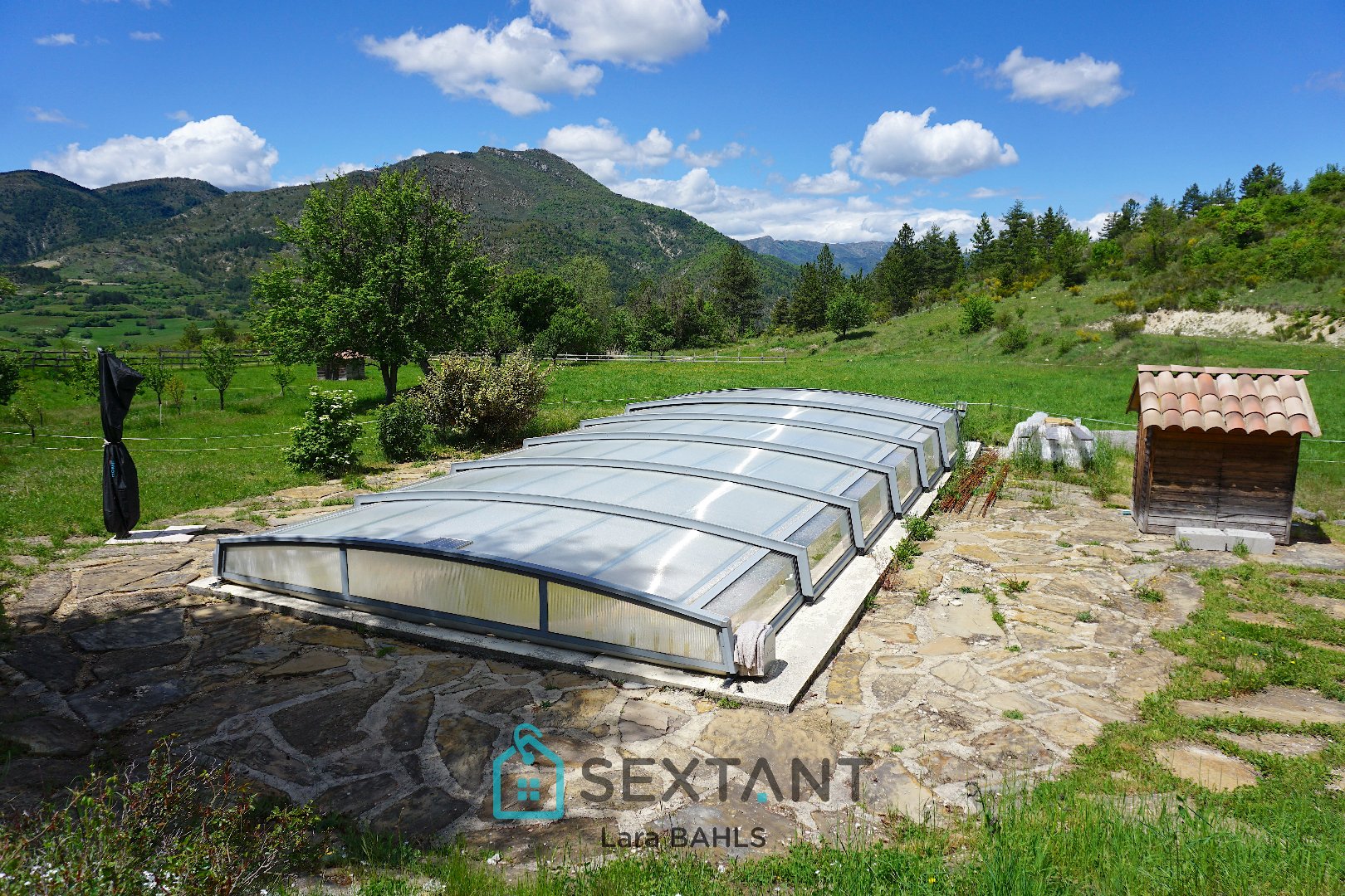 Saint-Lions, entre Digne-les-Bains et Saint-André-les-Alpes, cette propriété exceptionnelle offre une surface utile de 180m² sur un terrain de 1,9 hectares. Cette demeure avec une véranda et sa vue panoramique et dégagée sur les montagnes, se compose au rez-de-chaussée d'une cuisine aménagée menant à une salle à manger, d'un vaste séjour, de deux chambres avec un WC et d'une salle de bain. À l'étage, une grande mezzanine, deux chambres ainsi qu'un WC. À 5 minutes des commerces en voiture, nichée dans un environnement paisible au cur de la nature, vous pourrez profiter de sa piscine avec son abri motorisé, de plusieurs garages et dépendances. Une source alimente la maison, la piscine et l'étang. Le chauffage au sol et le chauffe-eau sont alimentés par des panneaux solaires. Des travaux de rénovation, incluant l'installation de fenêtres et portes en double vitrage ont été récemment effectués. Aucun travaux à prévoir. Proche des Gorges du Verdon et des sentiers de randonnée, ce lieu est parfait pour les amoureux de calme et nature. À une heure des stations de ski et à 1h30 de la Côte d'Azur. Honoraires TTC charge vendeur Agent commercial Sextant France - Lara Bahls agent basé à CASTELLANE - 07 63 95 29 18 - Plus d'informations sur www.sextantfrance.fr réf. 23038
