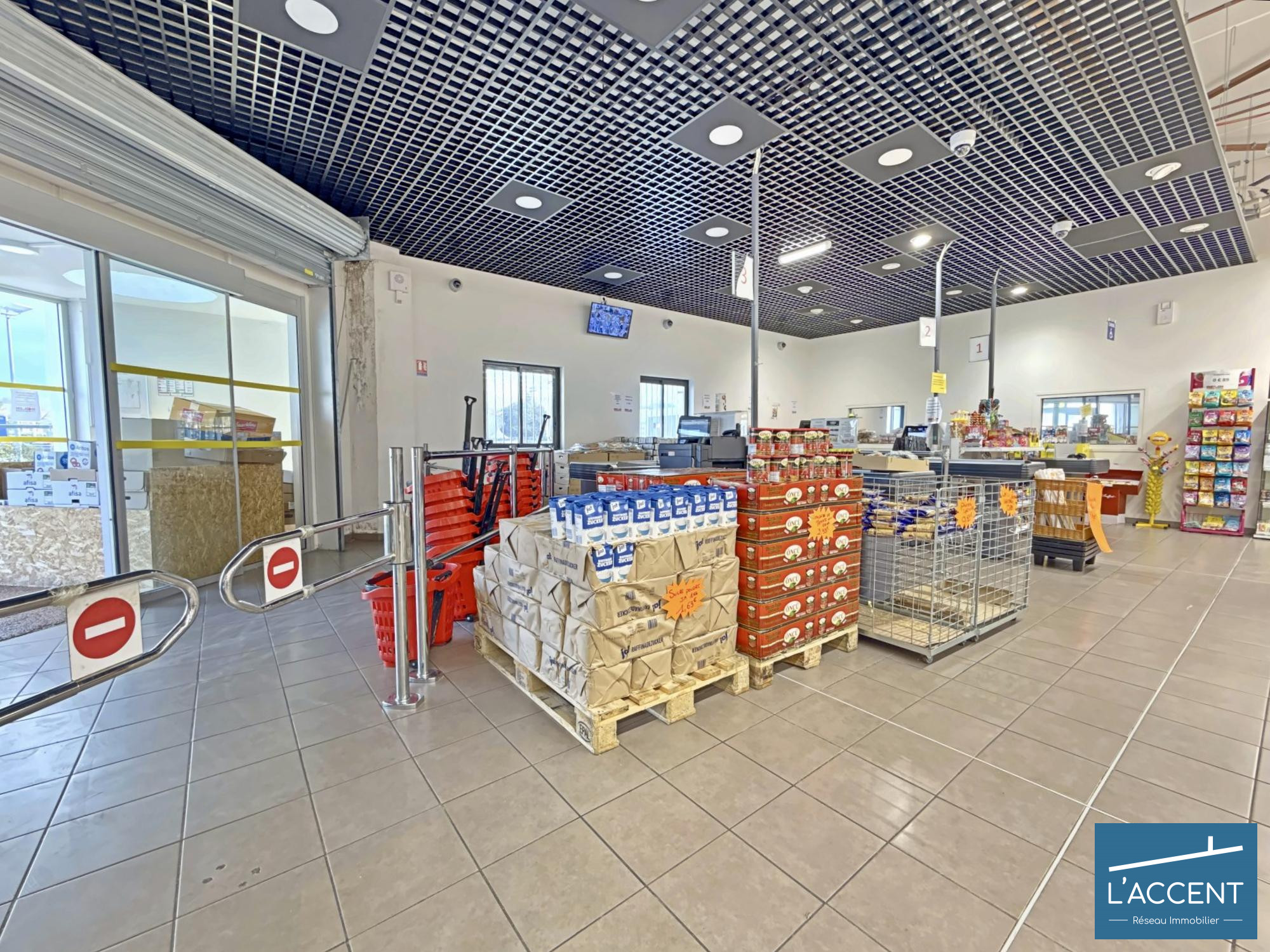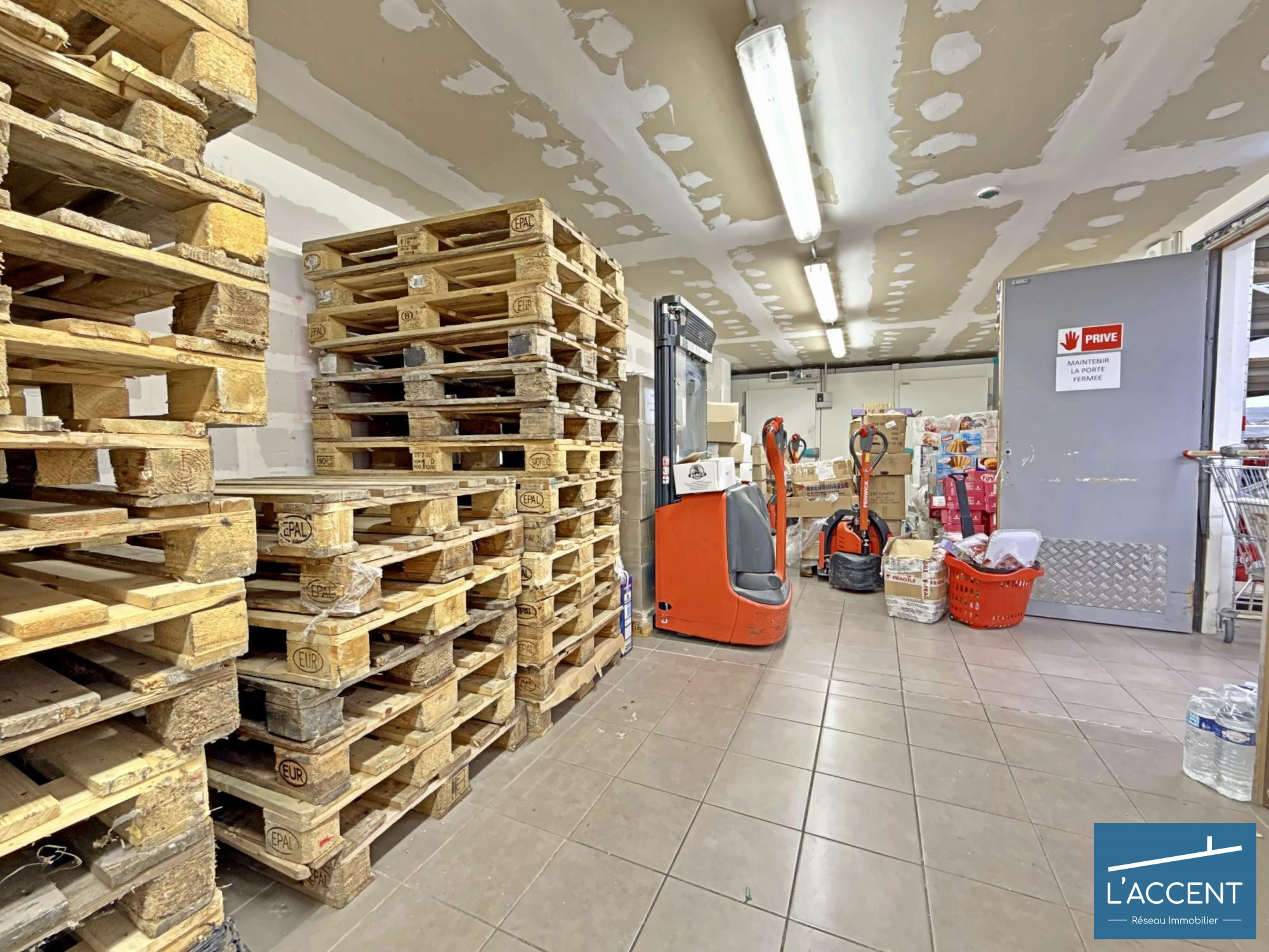- Entièrement équipé pour l'activité avec chambre froide, gondoles, bureaux, vestiaires...