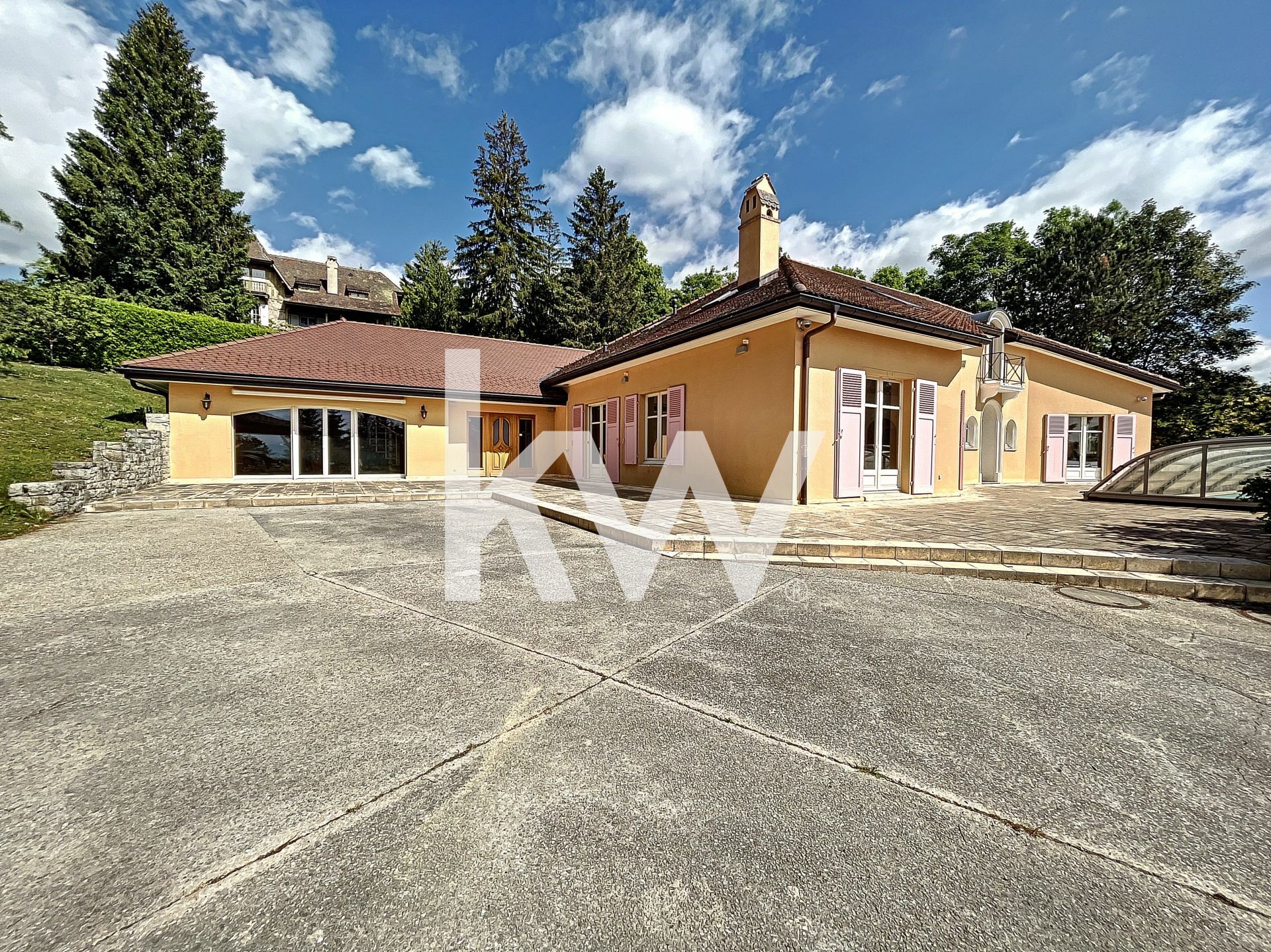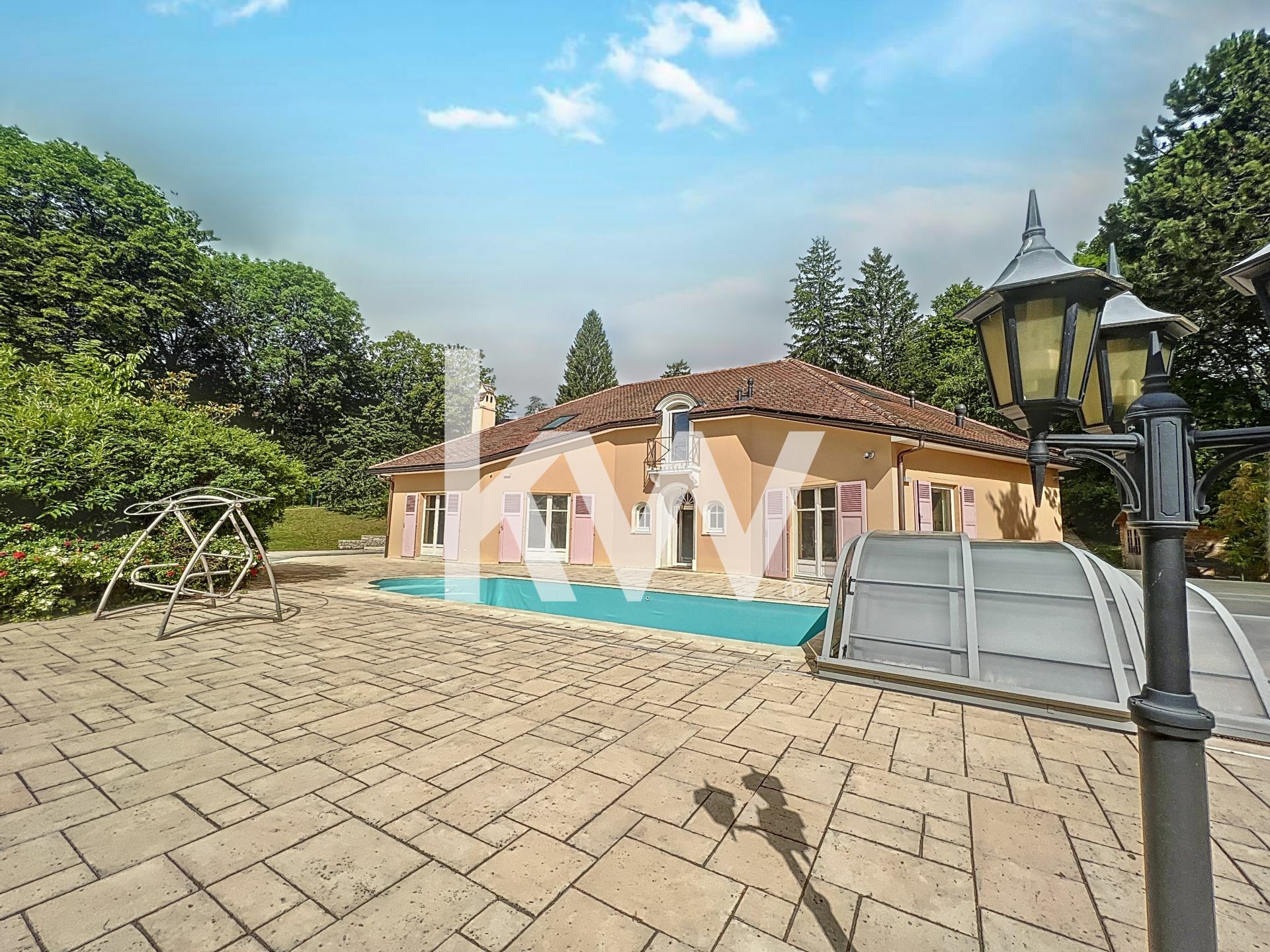 Magnifique propriété dans un parc de 4200m2 comprenant une villa d’architecte de plus de 540 m2 avec piscine accompagnée de son studio indépendant de 60 m2 est située sur les hauteurs de Gex avec une magnifique vue sur le Mont-Blanc, le bassin genevois, ainsi que sur le lac Léman.