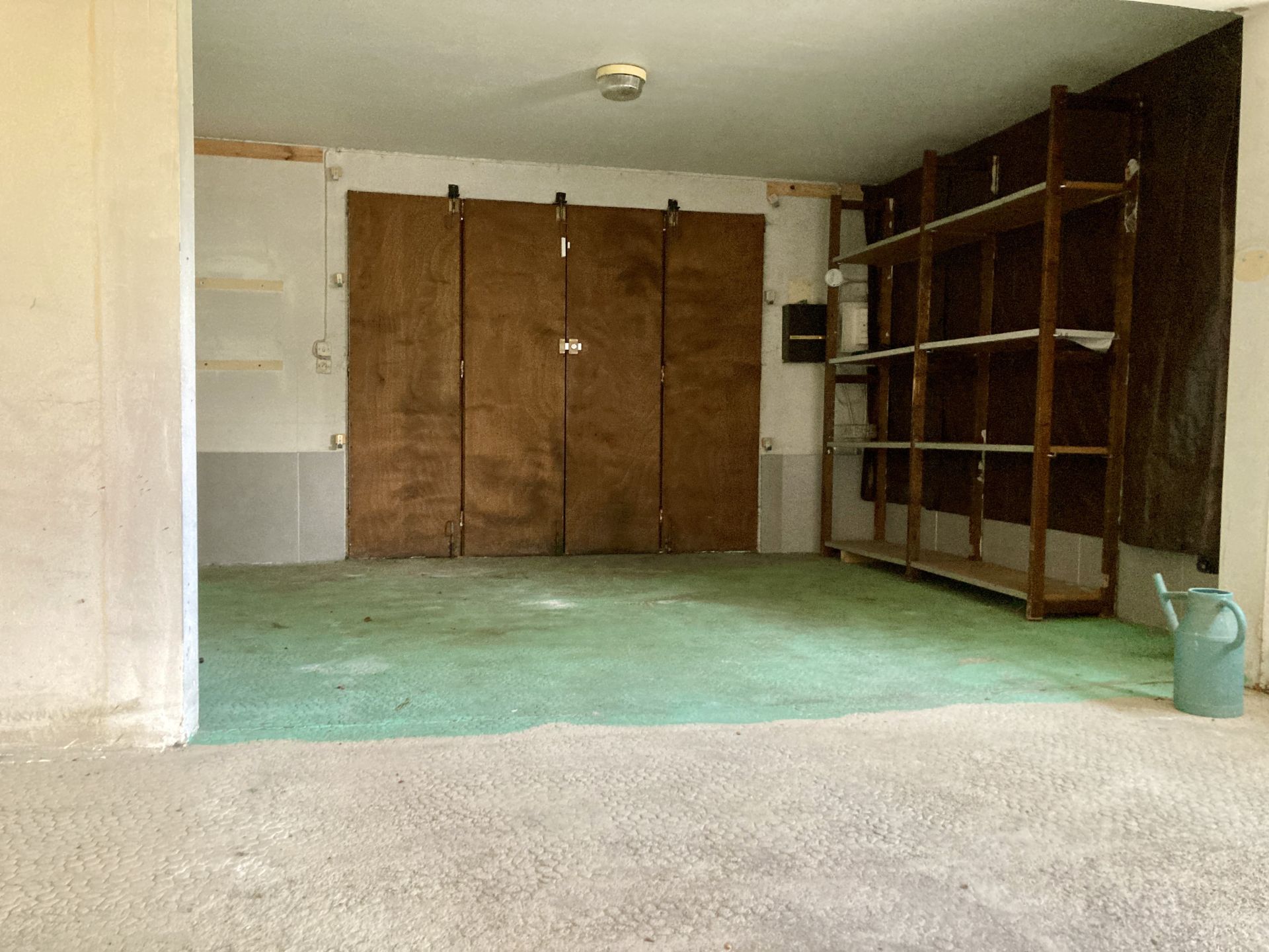 Deux chambres avec placards, une salle de douche avec WC, un garage, une buanderie et une cave.