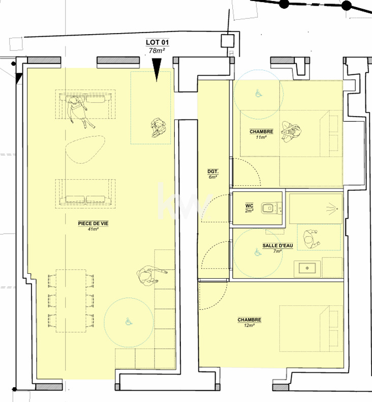 Cet appartement T3 vous propose une belle pièce de vie de 41m², deux grandes chambres, une salle de bains et WC séparé ainsi qu’un extérieur de 140 m².