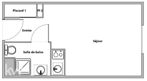 Studio de 18,15 m² comprenant une pièce de vie, kitchenette et une salle d'eau.