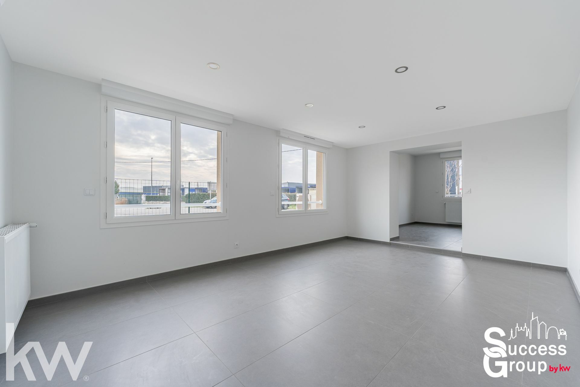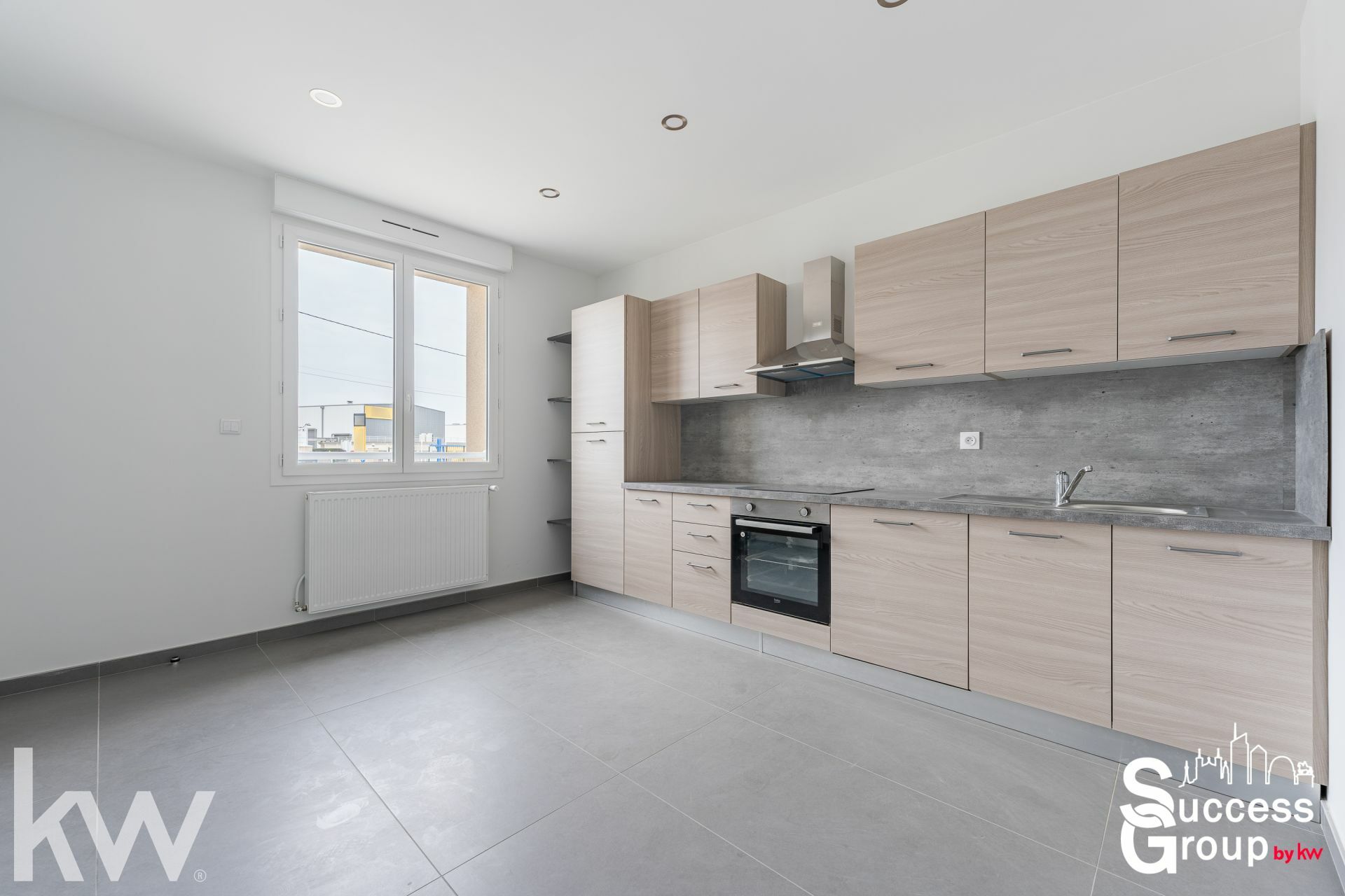 Au premier niveau : une entrée avec placard, une grande cuisine dinatoire aménagée et équipée (four, plaque, hotte…), une grande pièce de 37 m², une grande chambre de 15 m² avec rangement, une salle d'eau et un WC.