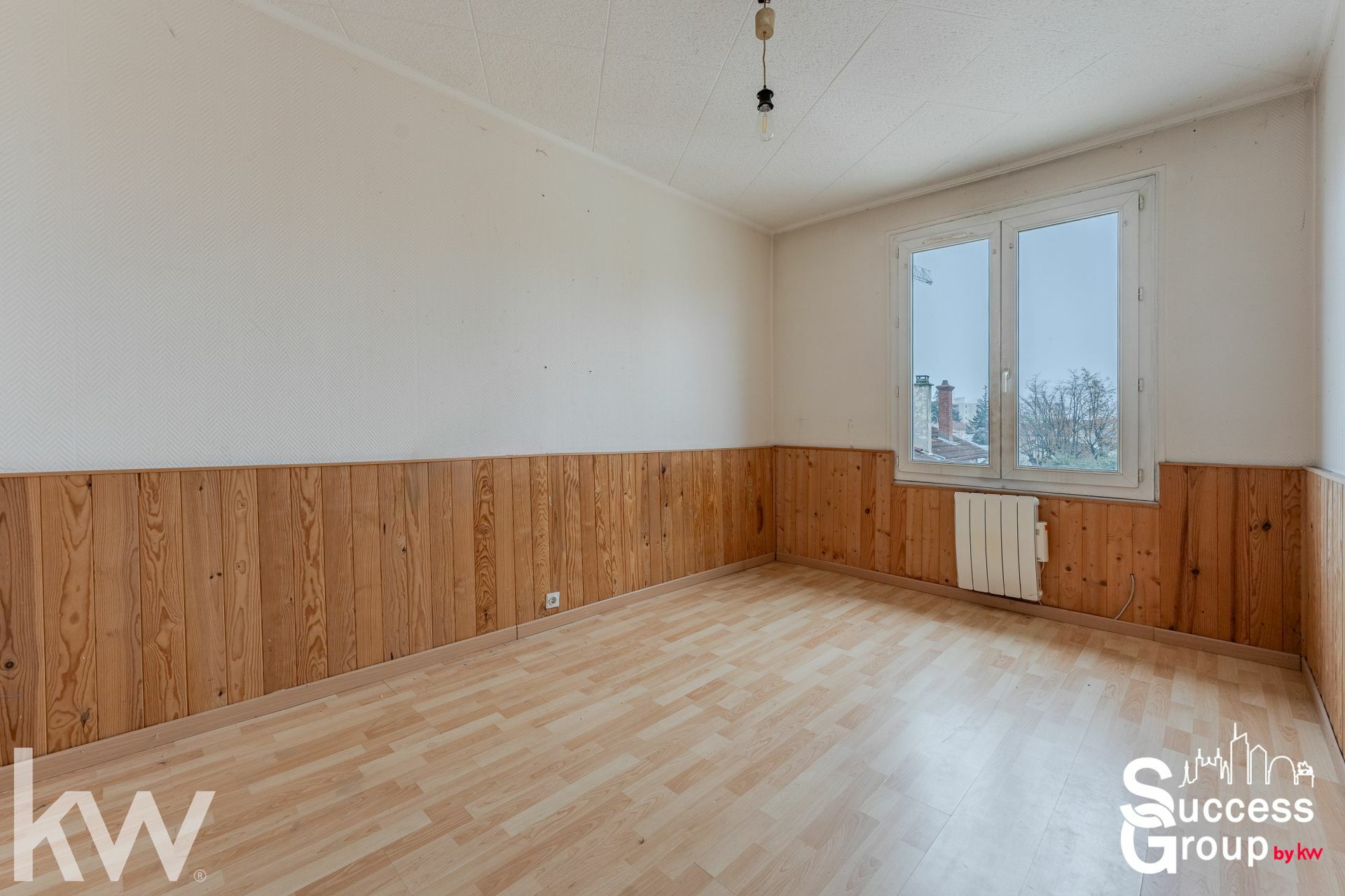Ce bien se compose : d'une entrée, d'une grande pièce de vie, de deux chambres de belle taille (10 et 15 m²) confortables, d'une salle d'eau et d'un WC indépendant.