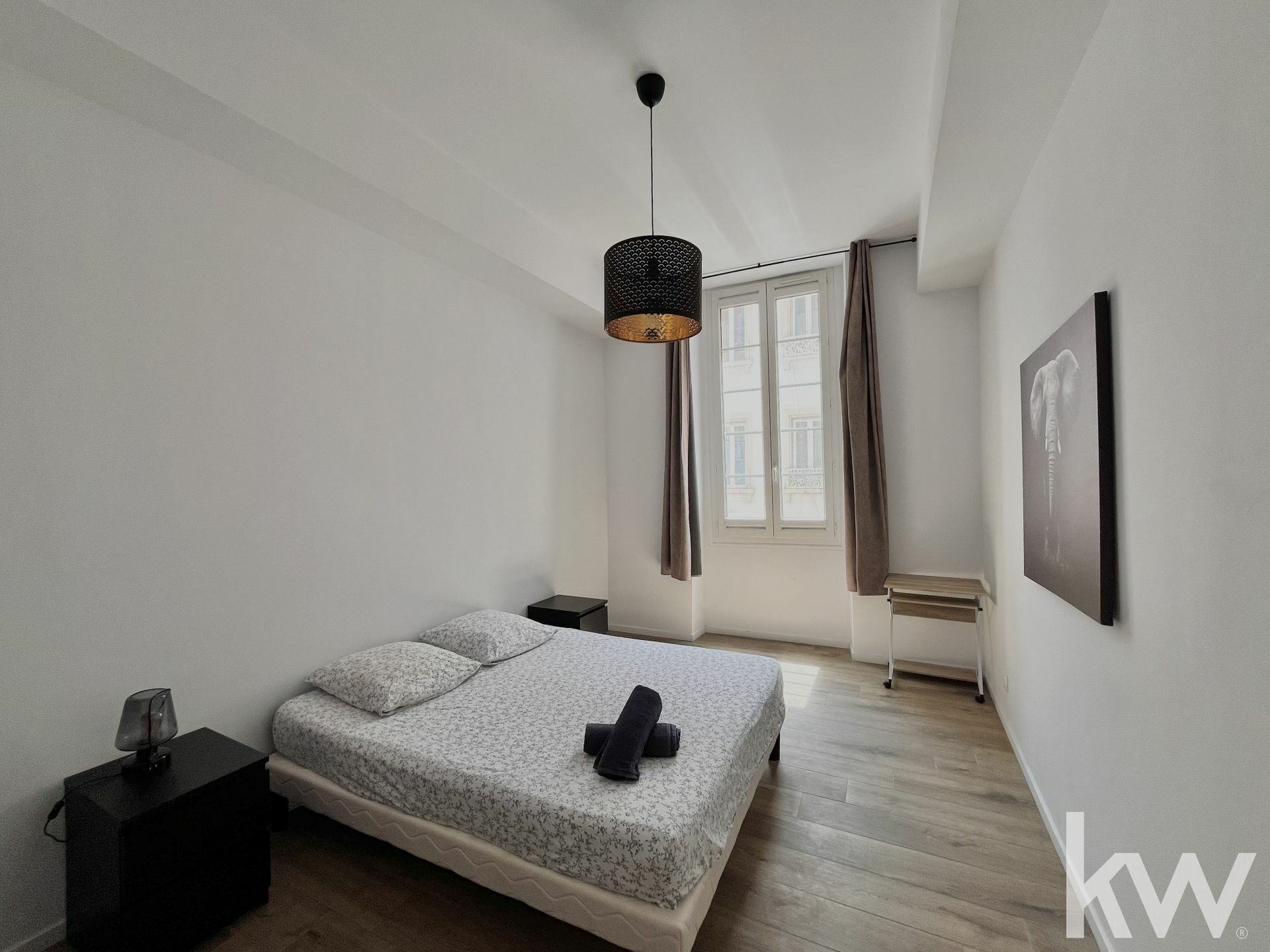 Situé au 2e étage d'un immeuble de quatre étages. Il comporte trois chambres et un grand séjour/cuisine américaine aménagée.
