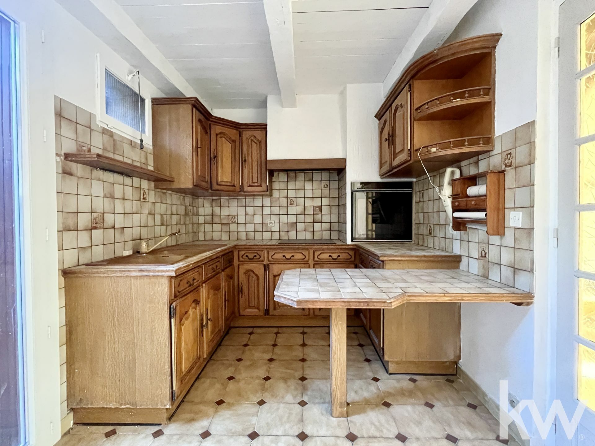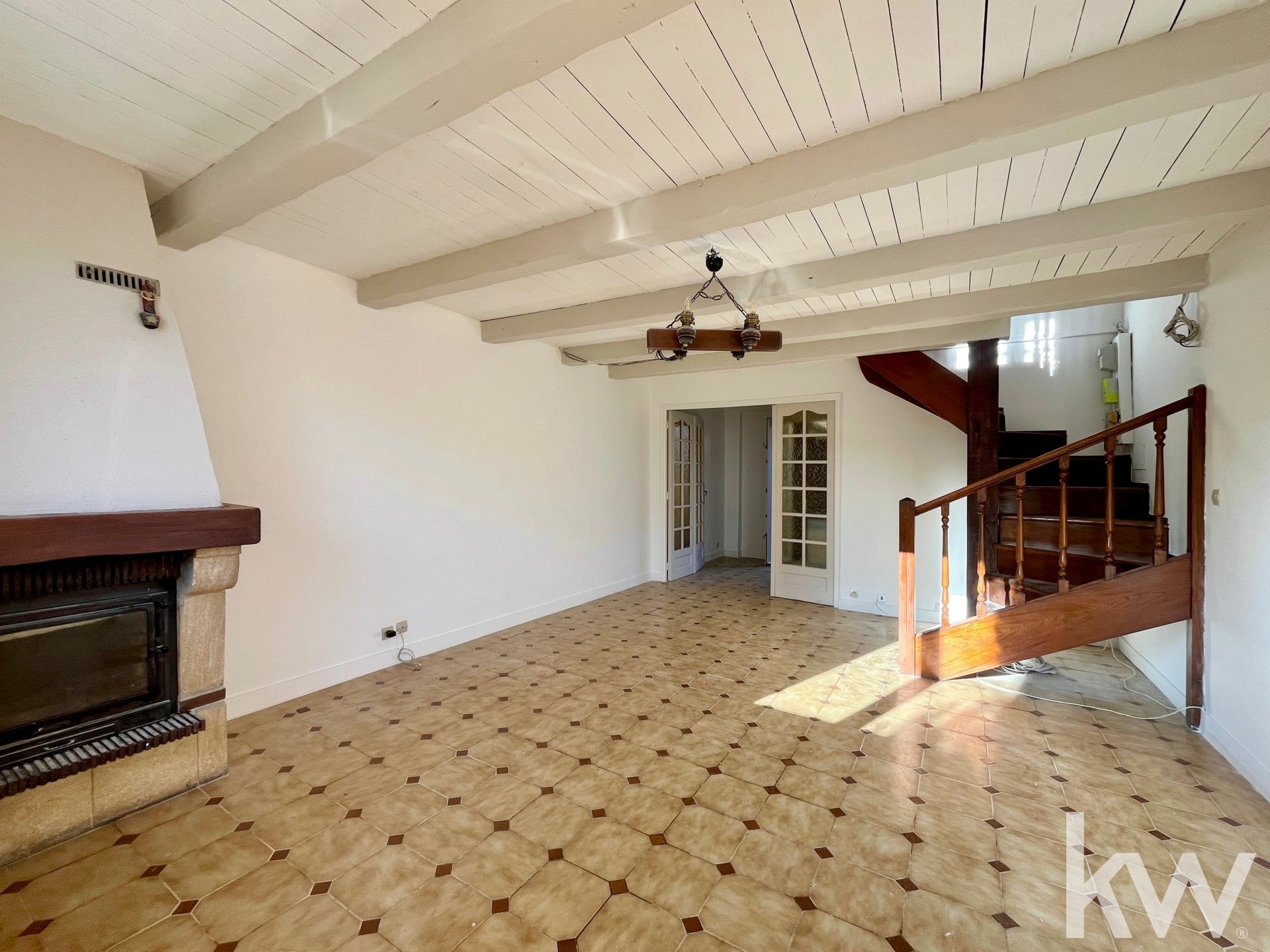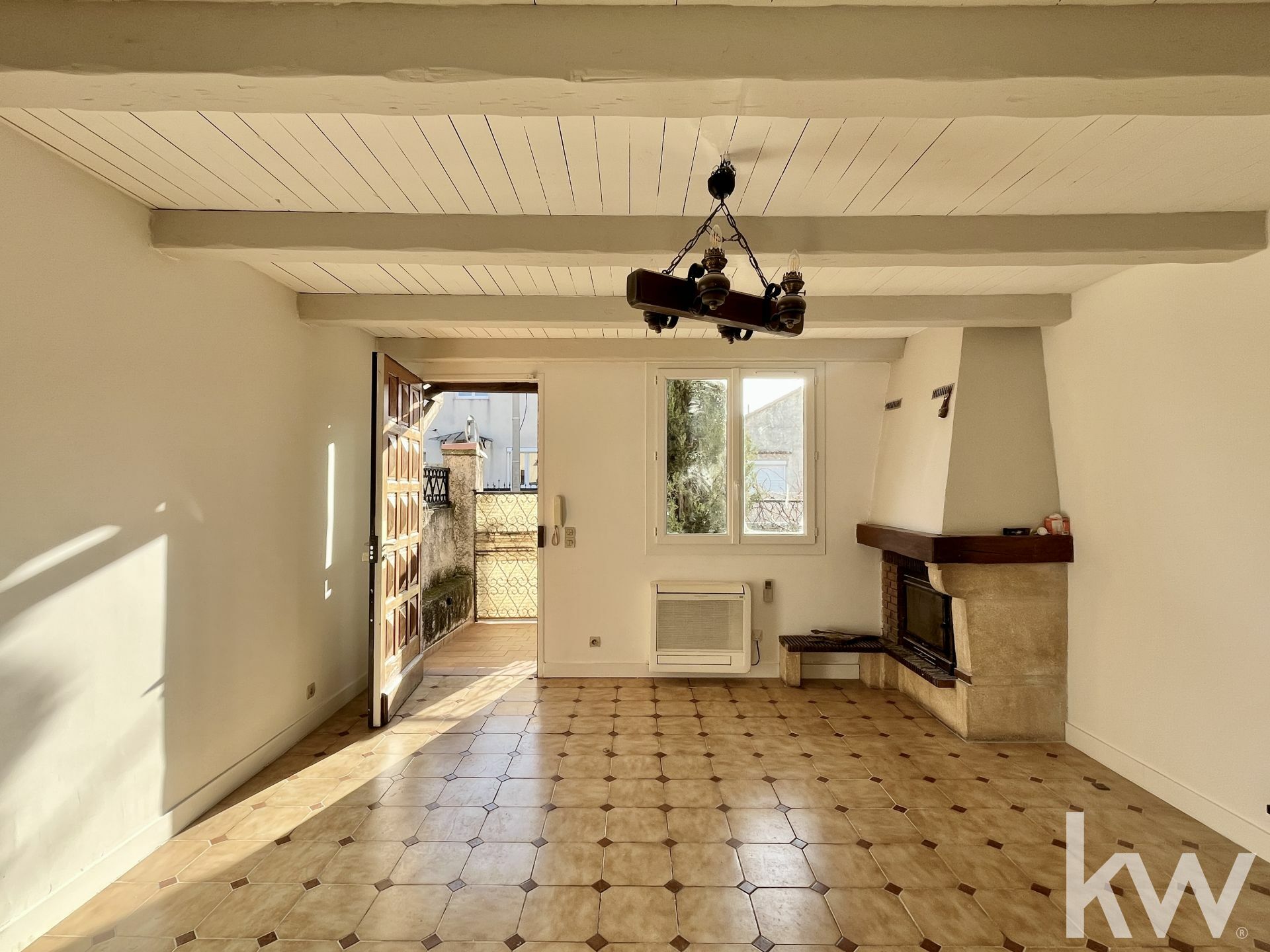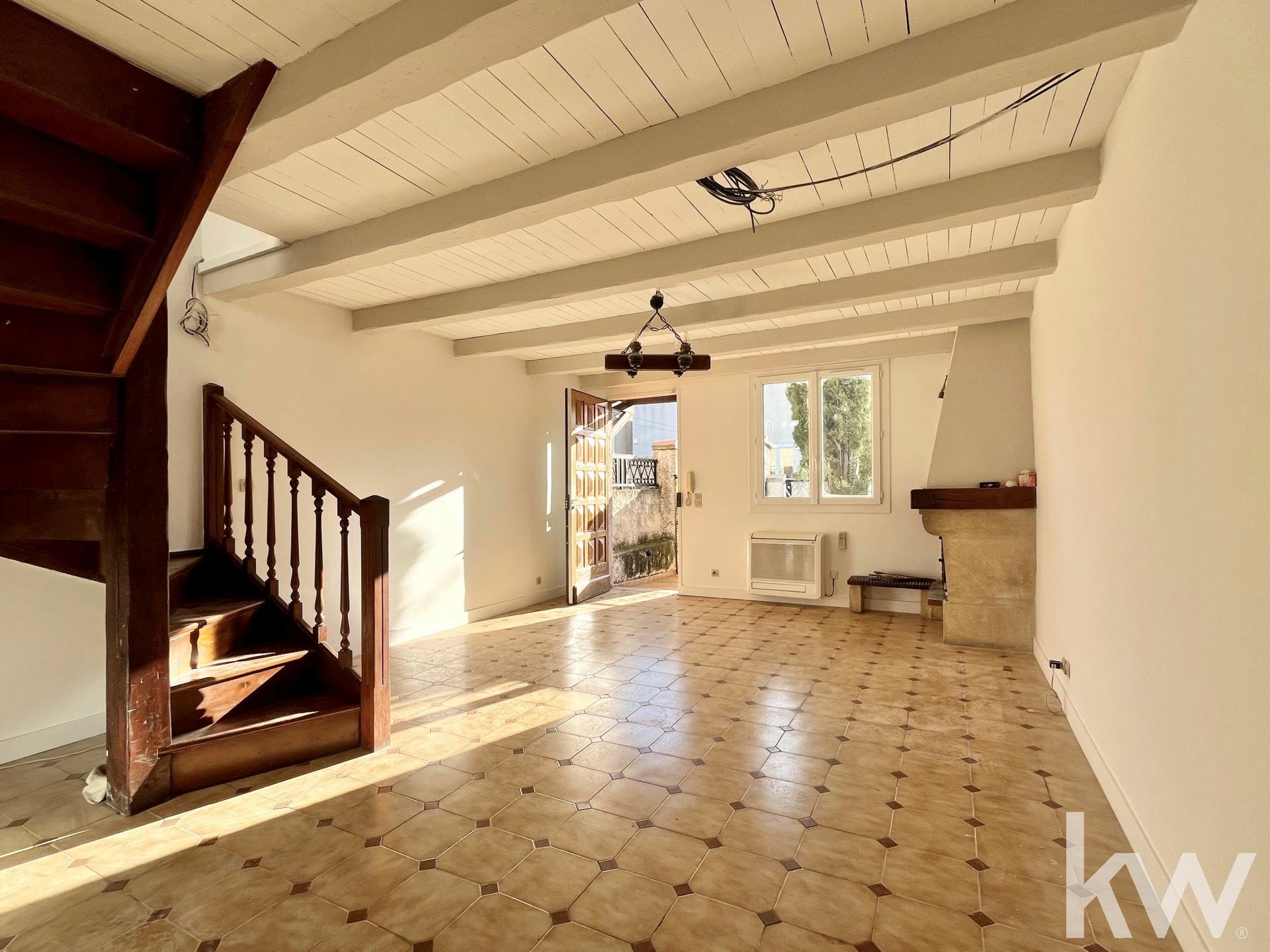 Au rez-de-chaussée, vous découvrirez un salon spacieux et lumineux avec cheminée et climatisation réversible, ainsi qu'une cuisine équipée.