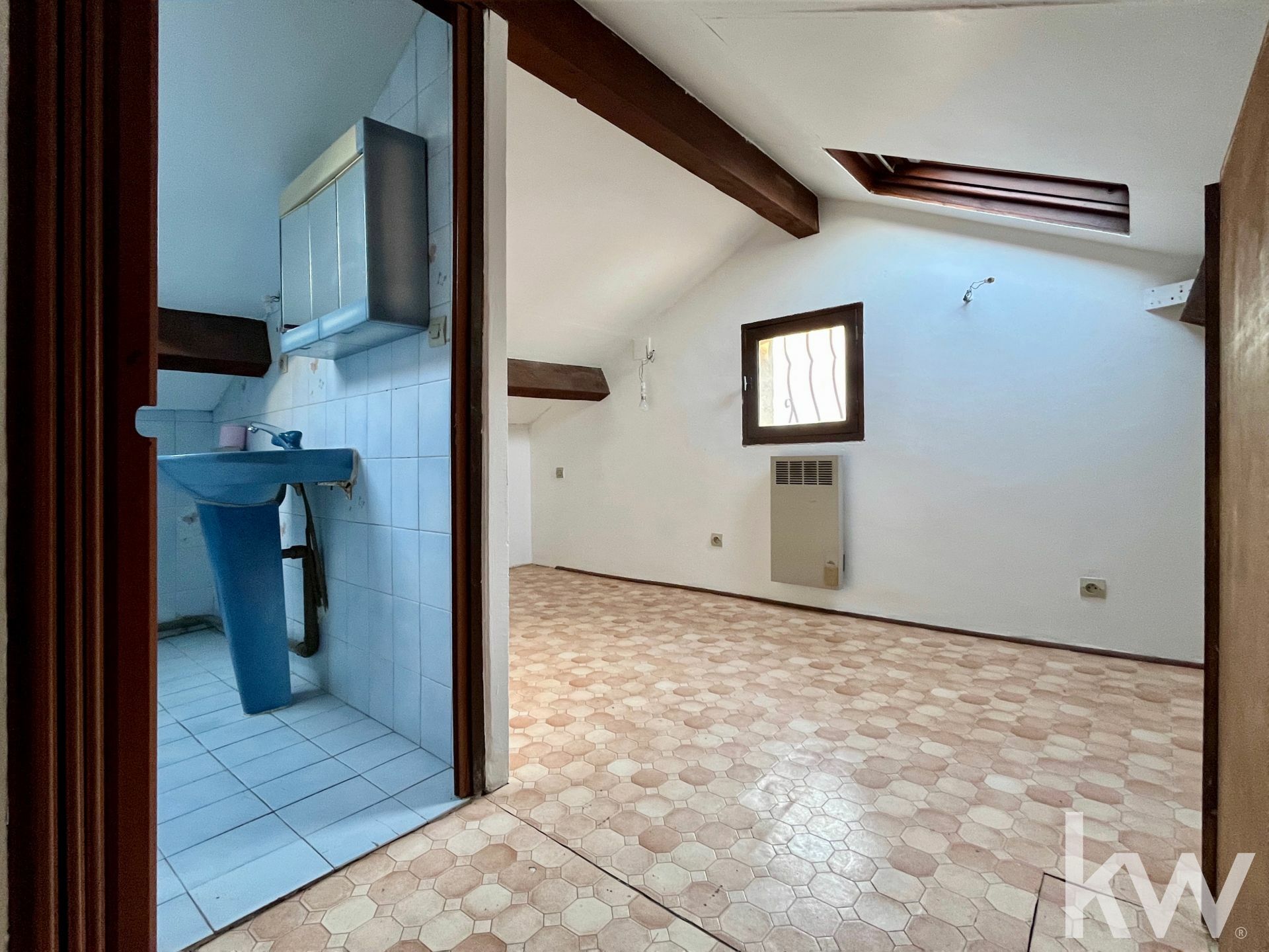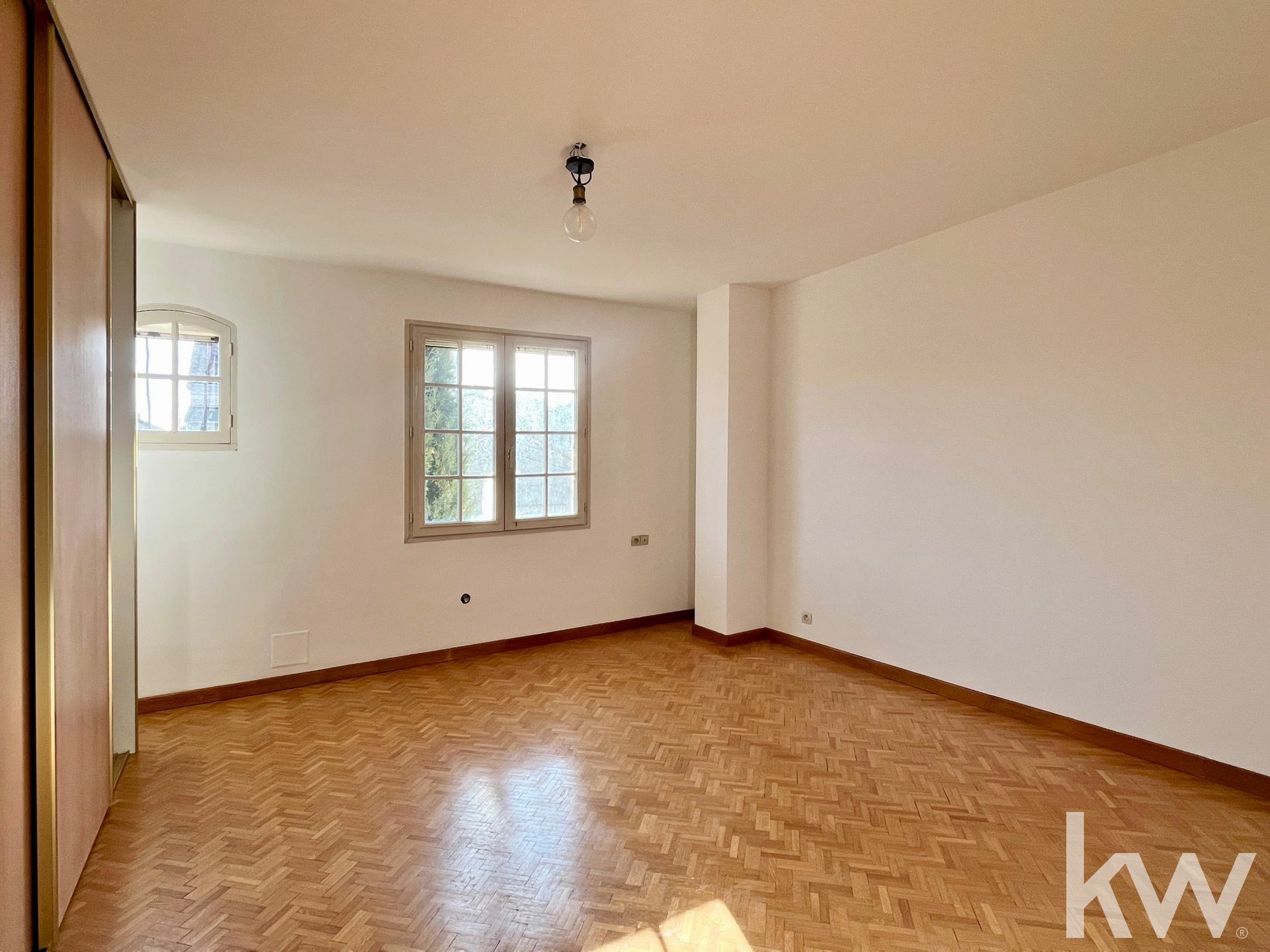À l'étage, une belle chambre avec un placard intégré, une deuxieme chambre ainsi qu’une grande salle d’eau avec WC et placard.