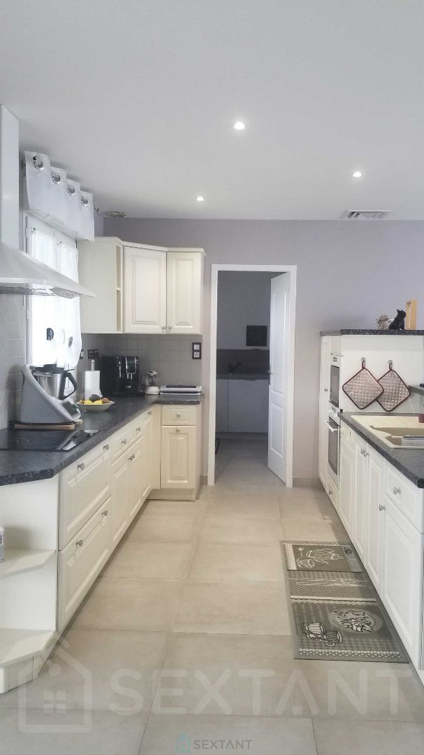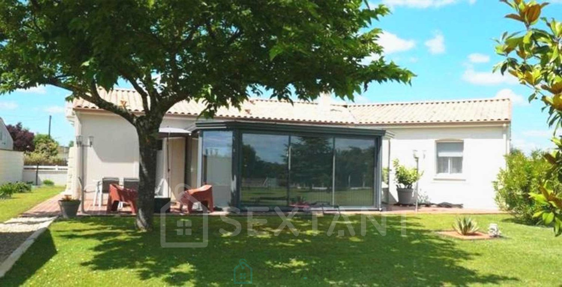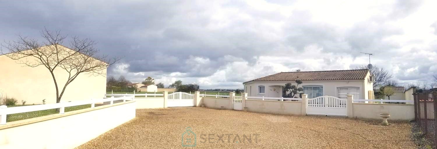 MAISON CONTEMPORAINE DE 140M², 6 PIECES, 3 CHAMBRES, JARDIN 2500M² Maison contemporaine de plain-pied proposant 140m² habitables, un jardin d'environ 2500m² avec une grande terrasse exposée sud. Idéalement située en secteur résidentiel mais à seulement 5 minutes du centre-ville de Cognac. Cette maison familiale dispose d'un bel espace de vie lumineux de 50m², composé d'une cuisine ouverte sur le salon/salle à manger, le tout donnant sur la véranda, la terrasse et le jardin, une deuxième cuisine pouvant faire office de cellier et une grande buanderie (possibilité 4ème chambre). A l'opposé, vous trouverez la partie nuit avec un bureau, 3 chambres, une salle de douche, ainsi qu'un wc indépendant. Jardin arboré, sans vis-à-vis, terrasse, véranda et abri de jardin avec récupérateur d'eau de pluie. Grande cour avec double garage (possibilité pour camping-car). Les + : Double-vitrage total, tout à l'égout, pompe à chaleur avec clim réversible, insert, vmc, portail électrique, adoucisseur d'eau. Aucuns travaux à prévoir. Cette propriété avec de belles prestations offre un cadre de vie confortable et fonctionnel, idéal pour la vie familiale. Ne manquez pas cette opportunité, contactez-moi dès aujourd'hui pour organiser une visite ! Agent commercial Sextant France - Contacter Florence Guitard au 06 09 96 11 41 - (7/7j - 9h/20h) - Plus d'informations sur www.sextantfrance.fr réf. 22601. Honoraires : 4,37 % TTC inclus charge acquéreur (286 000 hors honoraires)