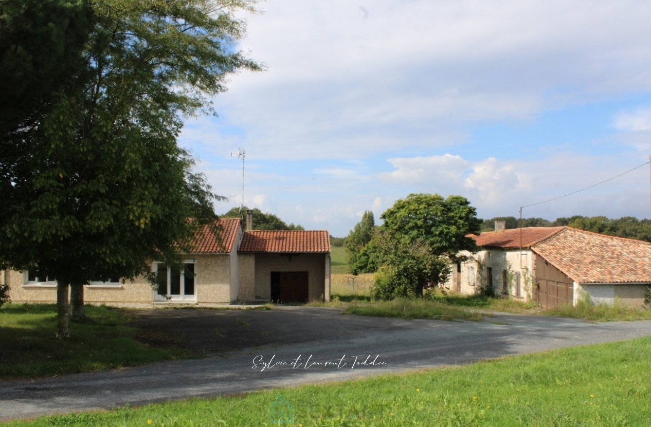 EXCLUSIVITE - A quelques minutes de Montendre, au bout d'une impasse, ensemble immobilier composé de deux habitations, une maison des années 70 de plain pied de 115 m² environ et une ancienne ferme à rénover en totalité, sur une parcelle de 3 644 m². LA MAISON PRINCIPALE, constuite dans les années 70, comprend une cuisine aménagée, une salle à manger, un séjour lumineux, trois chambres, une salle de bain avec baignoire et douche et un WC séparé. Quelques travaux de rafraichissement sont à prévoir. Chauffage via une chaudière à bois et une chaudière à fuel. Double vitrage. Volets roulants électriques. Assainissement (fosse étanche) non conforme. Garage de 33 m². L'ANCIENNE FERME, en pierres, à rénover en intégralité, de 88 m² environ, se compose d'une belle entrée avec des carreaux de ciment anciens et de 4 pièces (de 14 m² à 25 m²) Dépendances (grange, atelier) et garage. Bien non soumis au DPE. LES EXTERIEURS : parcelle de 3 644 m² d'un seul tenant, en partie clôturée. Magnifique vue sur la campagne. Honoraires TTC charge vendeur Agent Commercial Sextant France - Sylvie et Laurent Taddei agents basés à POMMIERS MOULONS - 09 80 53 19 80 - Plus d'informations sur www.sextantfrance.fr réf. 23737