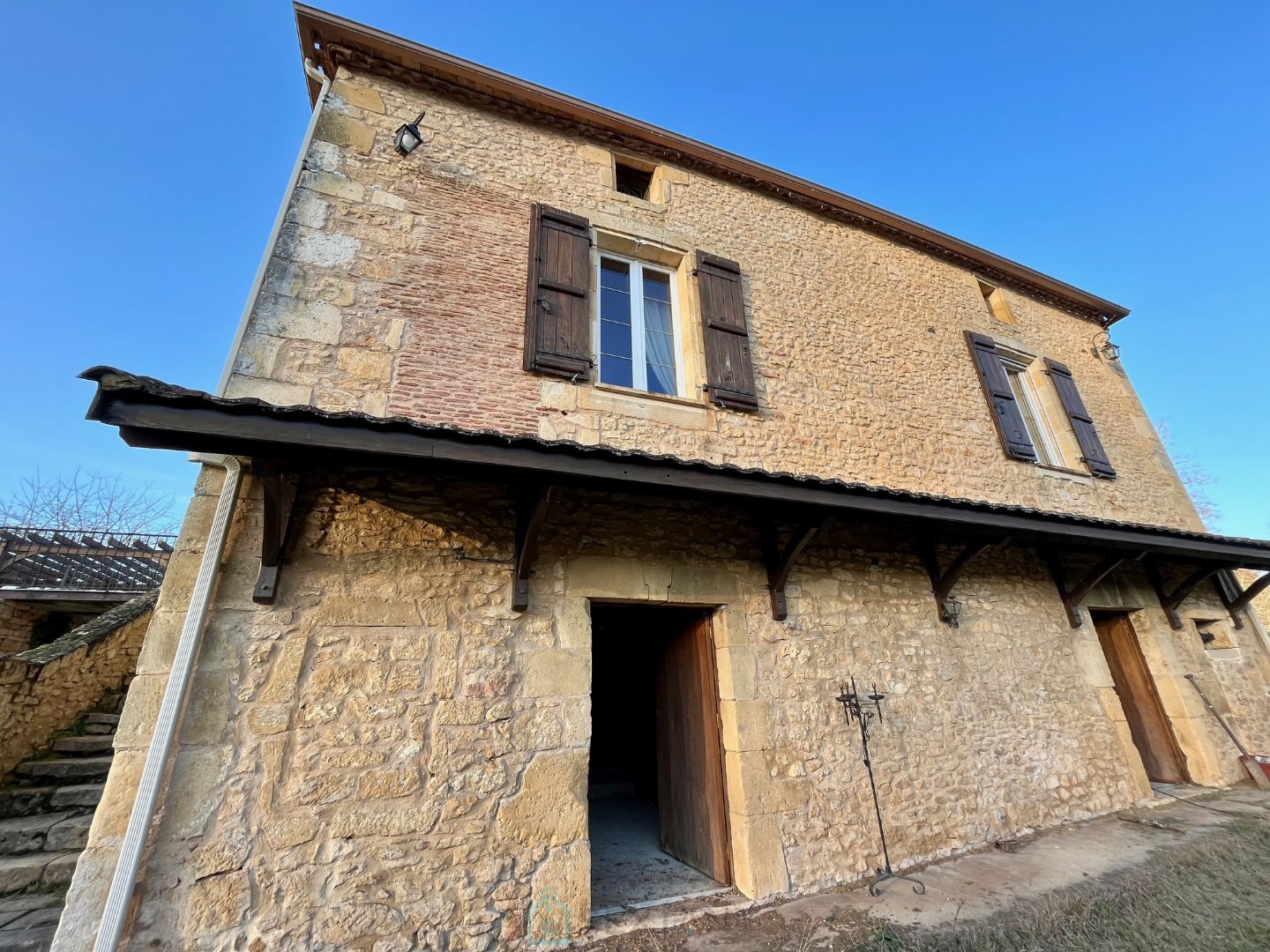 Proche Lalinde, grande maison en pierres avec sous-sol, doube-garage, grange et jardin