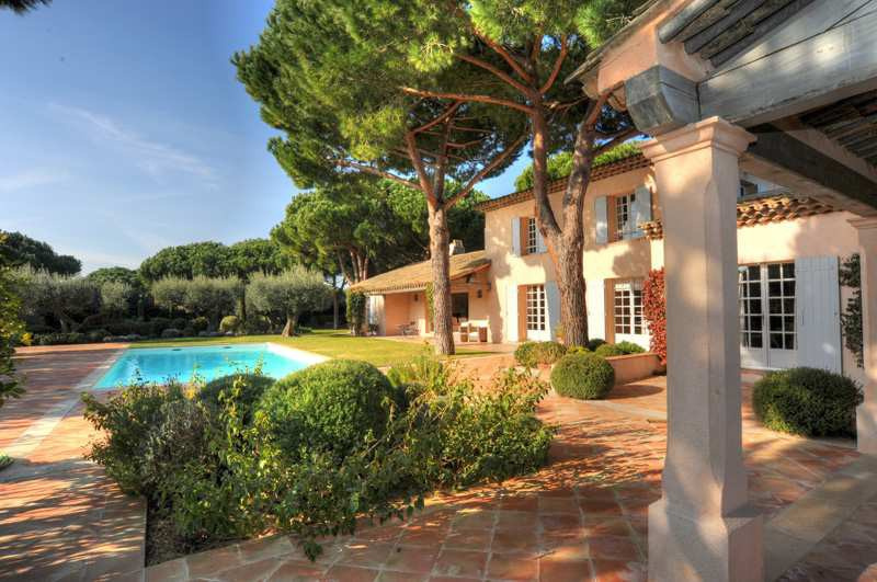 Cette élégante villa de charme de 5 chambres sur un grand terrain impeccablement maintenu et entièrement clôturé se situe à proximité à pieds de la plage de Tahiti. Les intérieurs sont joliment décorés dans un style provençal moderne et comprennent une grande entrée, un élégant salon avec cheminée, écran plasma et des baies coulissantes ouvrant sur la terrasse. Une salle à manger est adjacente ainsi quÂÂ?une cuisine entièrement équipée avec un ilot central et un bar pour les petit-déjeuners. Une chambre double avec salle de bains ensuite et la suite de maître sont situées au niveau principal, et deux chambres spacieuses partageant une salle de bains familiale sont situées au niveau supérieur. Pour une utilisation par des enfants ou du personnel, on accède indépendamment par la terrasse à une cinquième chambre avec une douche moderne et une mezzanine aménagée en dortoir avec quatre lits simples ; villa entièrement climatisée ; La piscine 6x12 (chauffée sur demande) est entourée de spacieuses terrasses aménagées de bains de soleil et de confortables fauteuils et canapés. Sur le côté de la piscine une terrasse couverte comprend une cuisine d'été avec barbecue à gaz, une salle à manger d'été et un salon d'été avec des canapés. Parking pour 4 voitures, demi-court de tennis idéal pour jeux de balle, piste de boules et grand trampoline.