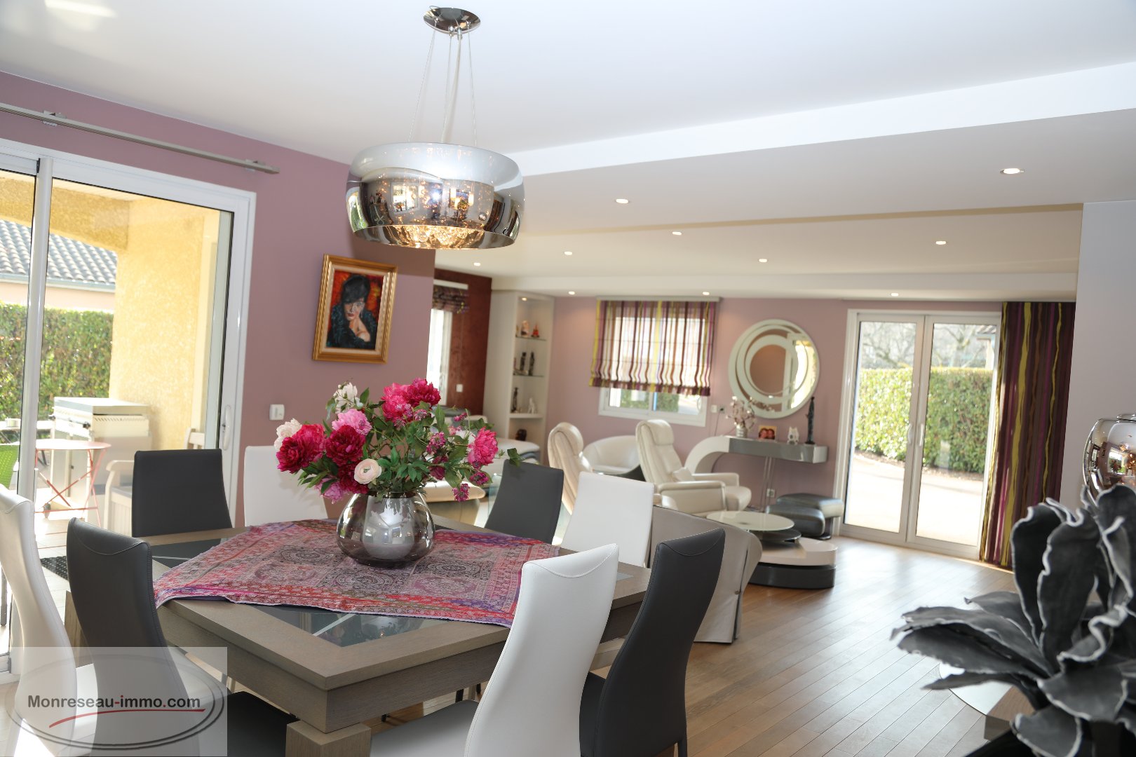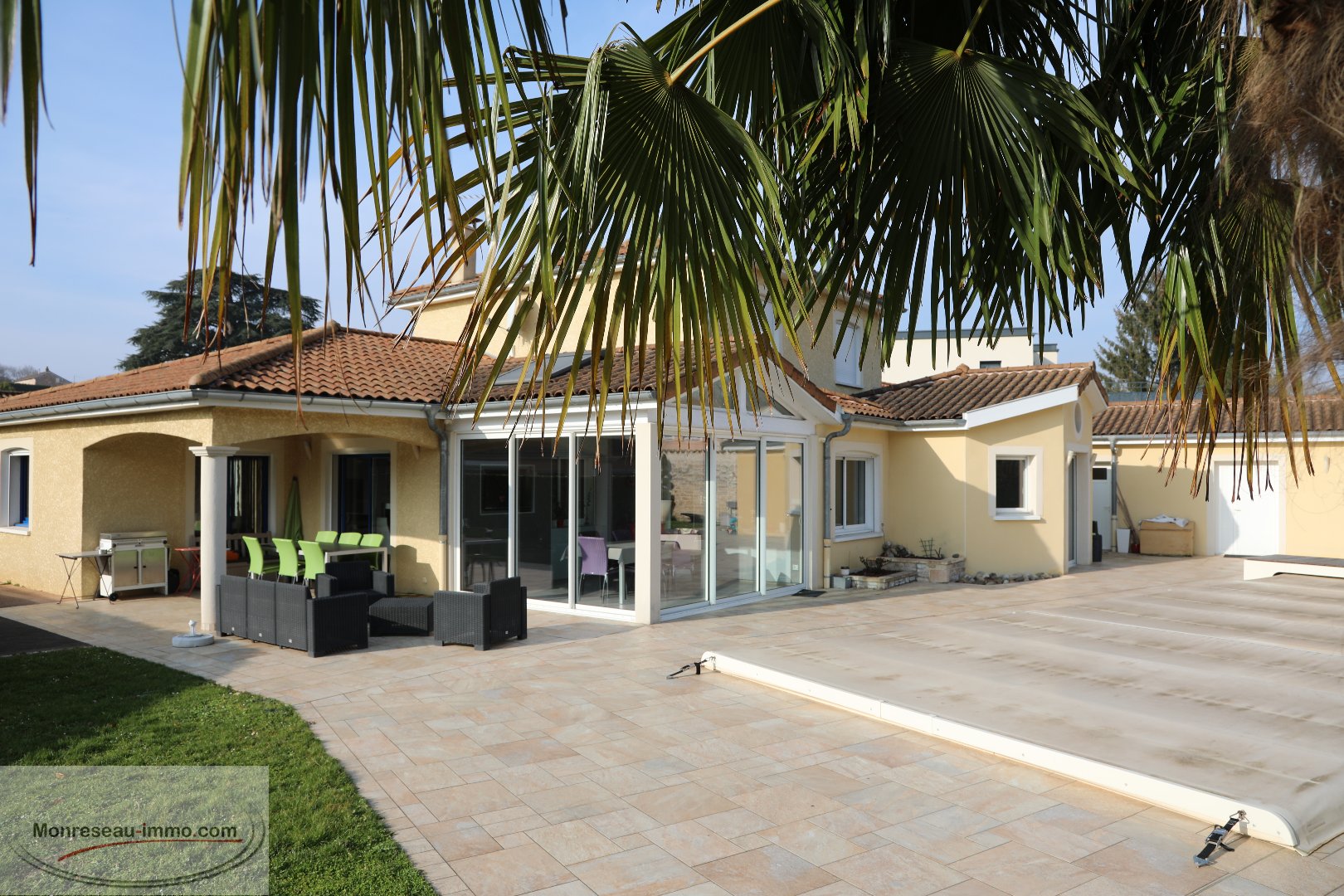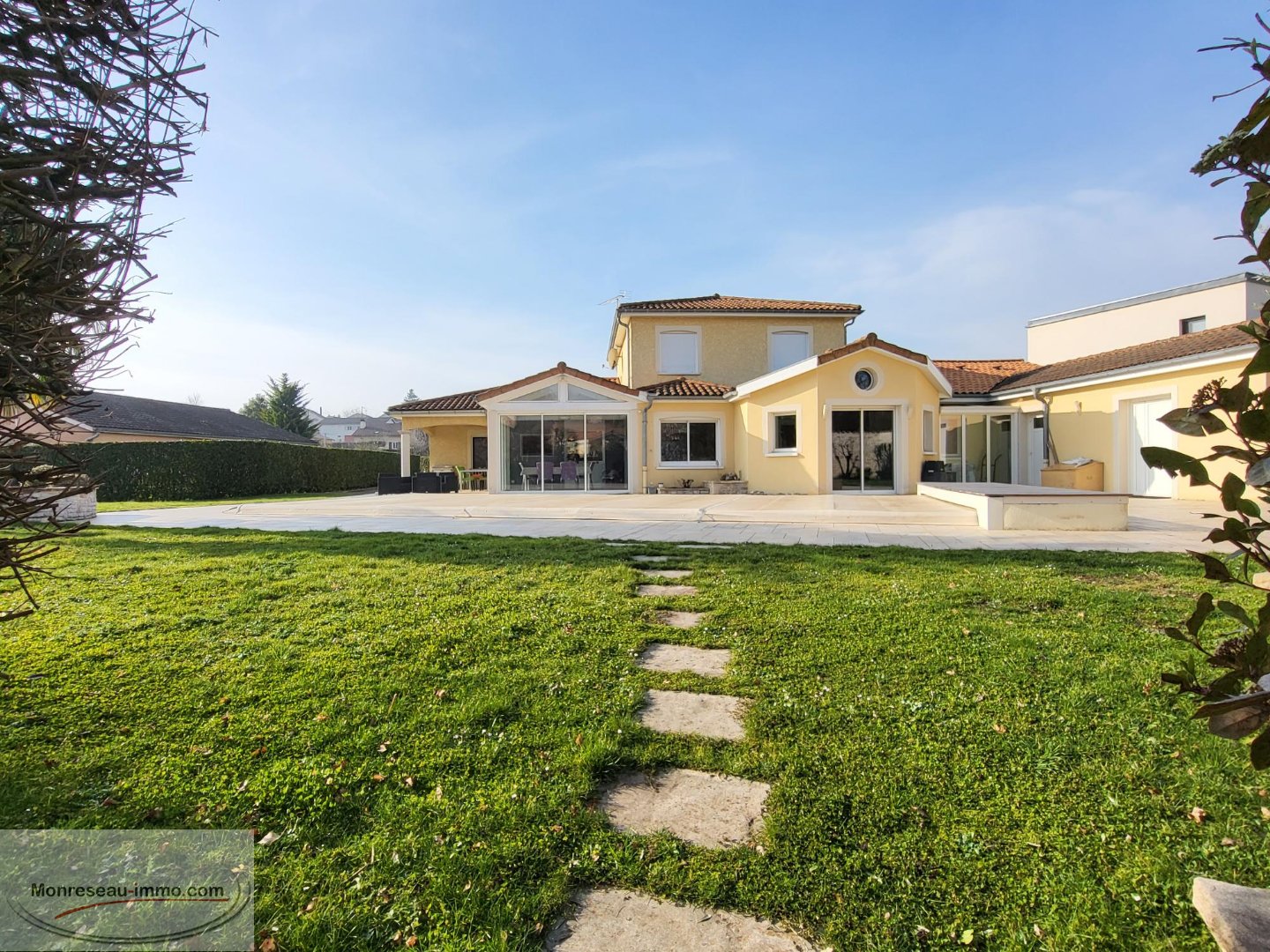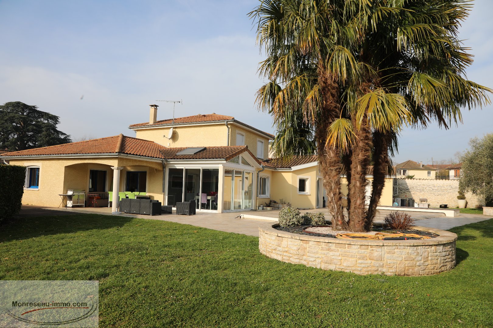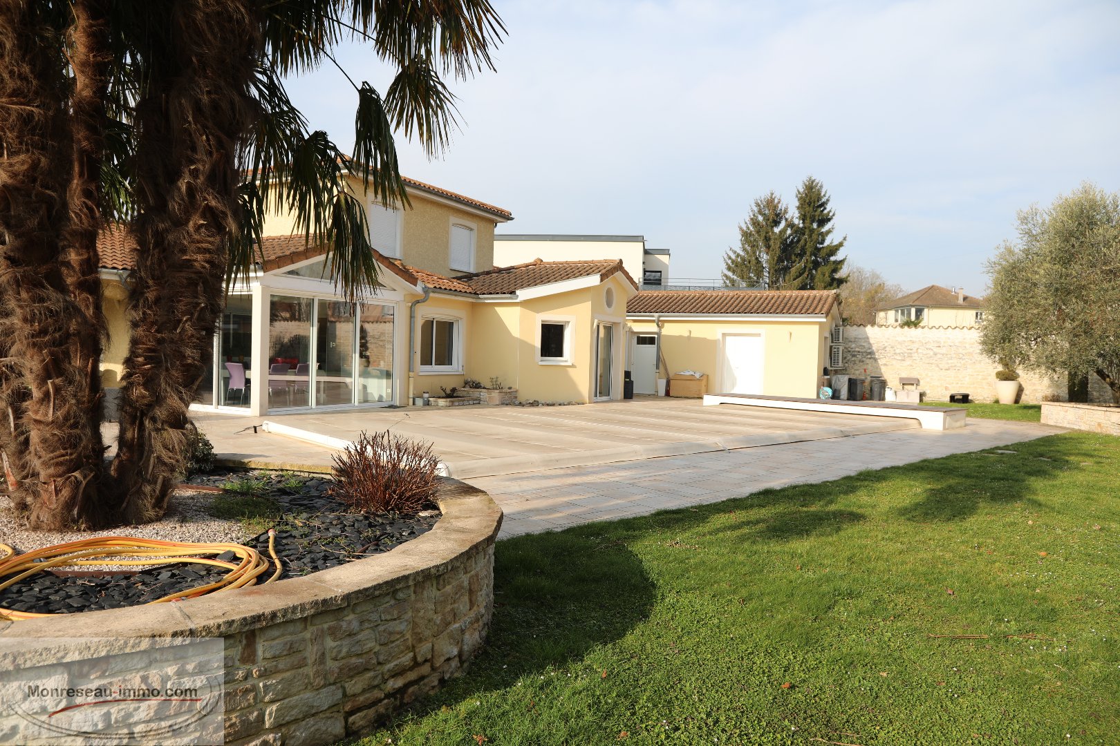 MACON EN EXCLUSIVITE Dans un quartier prisé à la fois calme et à proximité de toutes commodités Coup de cœur assuré pour cette propriété hautement équipée où vous n'aurez plus qu'a poser vos valises, implantée sur un terrain de 1600 m2, dans un écrin de verdure, sans vis-à-vis L'habitation de 210 m2, édifiée avec goût et matériaux de qualité, offre en RDC une accueillante entrée avec vestiaire desservant un vaste salon/séjour avec cheminée, une cuisine baignée de lumière, un bureau avec baie vitrée, une chambre parentale, une buanderie cellier... permettant une vie de plain-pied! L'étage est réservé à 3 chambres une salle de bain et WC séparés. Indépendant , un studio avec coin cuisine, chambre, salle d'eau et WC. Vous serez séduit par sa cave très bien organisée, ,son espace SPA, sa véranda chauffée et sa piscine chauffée. Son jardin , au bord d'un ruisseau, propose différents cois dédiés au bien être, à la lecture, aux jeux grâce à son espace de verdure, ses terrasses qui invitent soit à un travail concentré, soit à de bons moments de partage au soleil ou à l'ombre en fonctions des envies et des saisons. Caractère, confort, quiétude , moments de convivialité en toues saisons, cette propriété d'esprit familial est un véritable havre de paix que je vous invite chaleureusement à découvrir ensemble. MONRESEAU-IMMO.COM - BONNOT Gilbert - 06 88 26 97 88 - g.bonnot@monreseau-immo.com - Agent commercial RSAC 811 897 024 - Prix TTC et Honoraires à charge vendeur TTC
