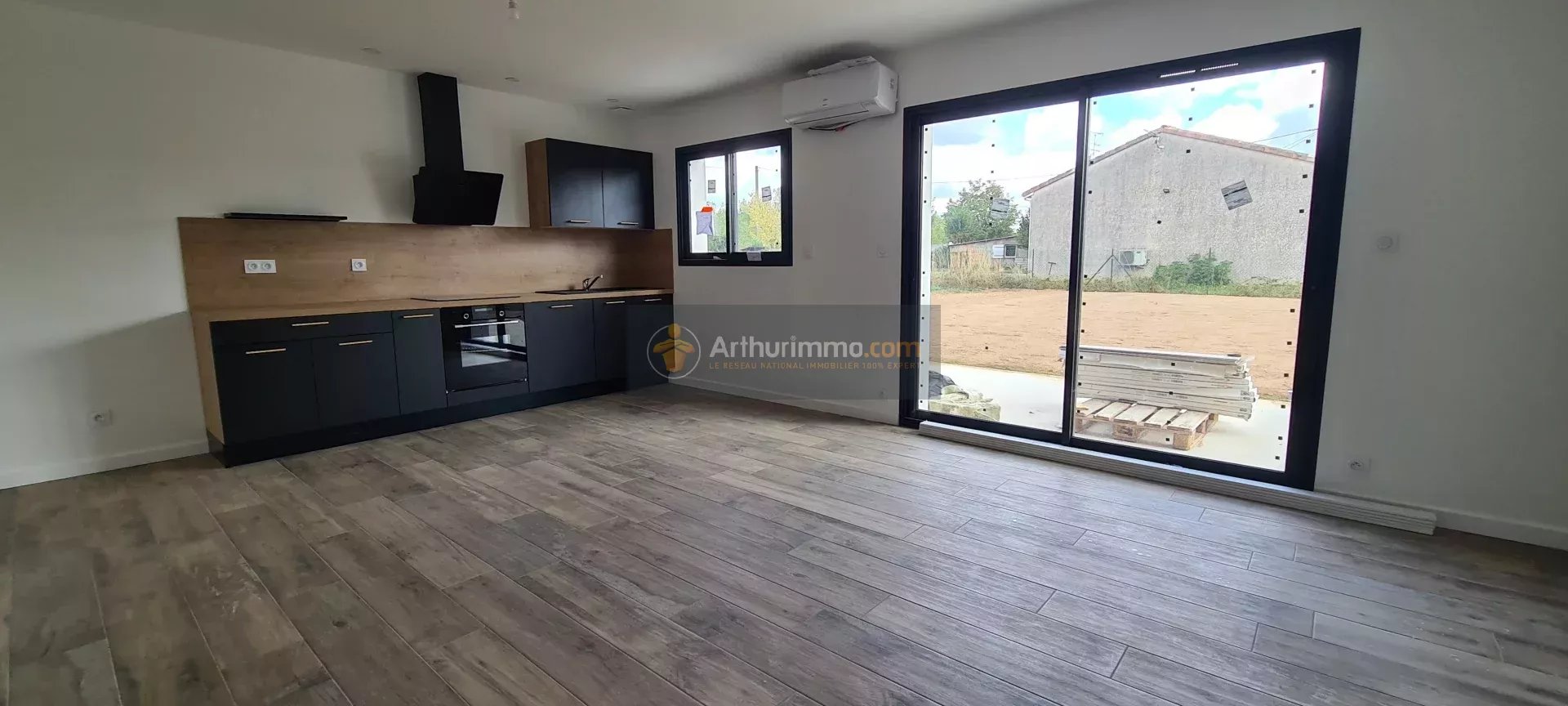 Proche Atlantis. Maison Plain-Pied Neuve aux normes RT 2012 de type 2 de 53 m2 sur environ 169 m2 de terrain. Cuisine équipée/séjour de 26 m2 donnant sur terrasse de 18 m2, une grande chambre avec placard, salle d'eau, WC. Climatisation réversible, 2 places de parking. Vendue loué.