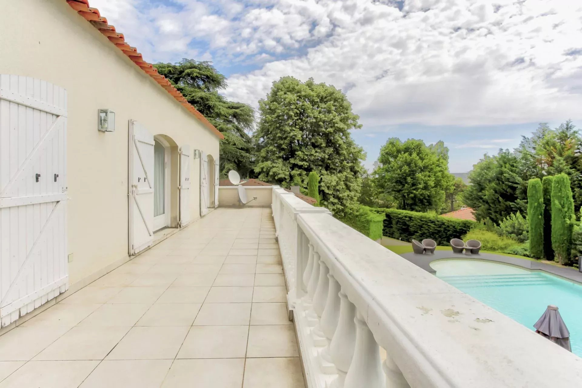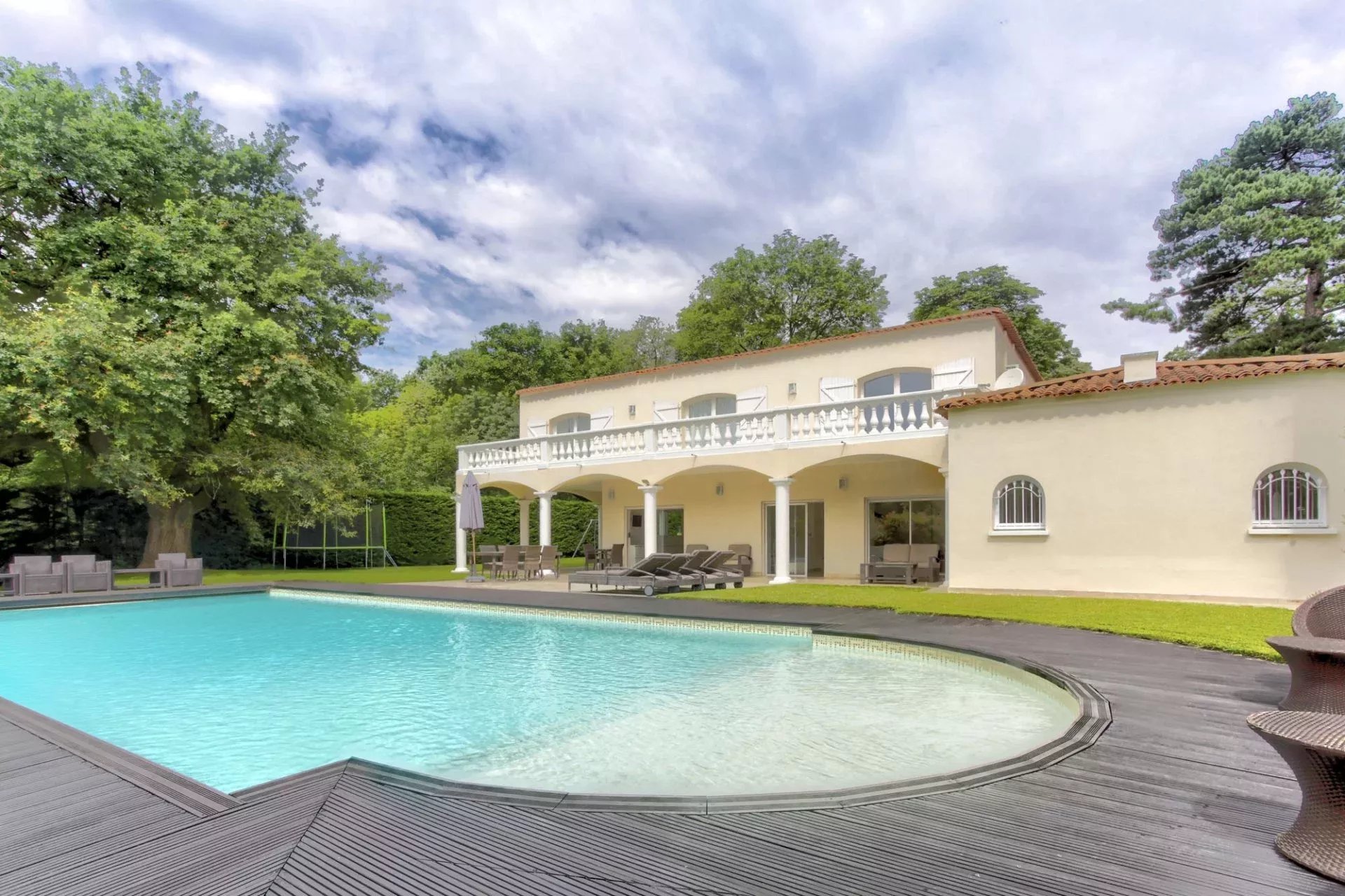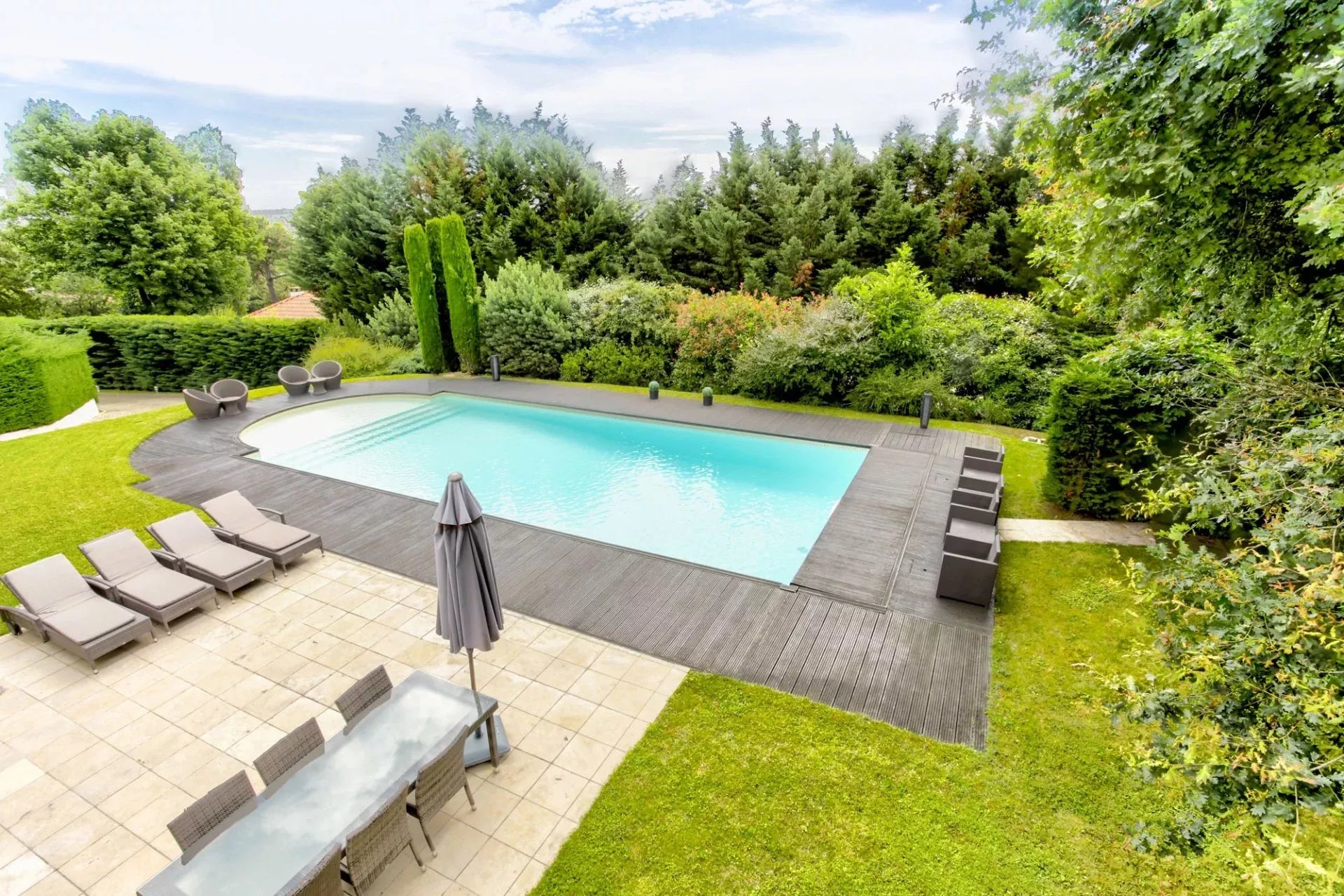 In a peaceful and green setting, away from prying eyes, this magnificent property, built in 1995 and meticulously renovated over the years, offers an exceptional living environment. Nestled on a fully enclosed plot of 1,689 m², it captivates with its elegance, generous spaces, and high-end features. On the garden level, the living area is bright and spacious, featuring a refined 40 m² living room that opens onto a large, partially covered terrace. The contemporary, fully equipped kitchen harmoniously integrates with the dining room, creating a warm and inviting space. This floor also includes a pantry and a beautiful suite with its own private shower room, offering both comfort and privacy. Upstairs, a sumptuous 40 m² master suite provides a true haven of serenity, with a bathroom equipped with a shower/steam room, a bathtub, and a double vanity, as well as a spacious, custom-fitted dressing room. The suite opens onto a terrace with unobstructed views. This level also hosts three additional suites, each with its own private shower room, two of which have direct access to the terrace, further enhancing the sense of space and harmony. The entire house is designed for optimal comfort, featuring modern amenities and high-quality materials. Underfloor heating, present on all three levels and powered by a recent Mitsubishi heat pump, ensures outstanding energy efficiency, with a DPE rating of "B" and GES rating of "A." Every room is air-conditioned, pocket glass doors maximize natural light, and motorized roller shutters, controlled by centralized home automation, add a modern touch. A 14.5 x 6-meter heated swimming pool with reinforced PVC coating invites relaxation with its surrounding beaches, while an automatic irrigation system, mechanical ventilation, and an alarm system enhance the comfort and security of this exceptional home. A double garage with an automatic door and four additional parking spaces complete this ideal property. Located close to shops, public transport, and all amenities, this uniquely charming house offers a true haven of peace, perfect for hosting a family or entertaining in an enchanting setting. Let yourself be captivated by this exceptional residence, where every detail has been carefully considered to provide an incomparable quality of life. For a private viewing or more information, please contact Cécile de Jouffrey at +33 6 85 39 23 35. Dear colleagues, if you have a buyer, do not hesitate to get in touch. We offer free property valuations for all our clients in Lyon and its surrounding areas, so feel free to reach out.