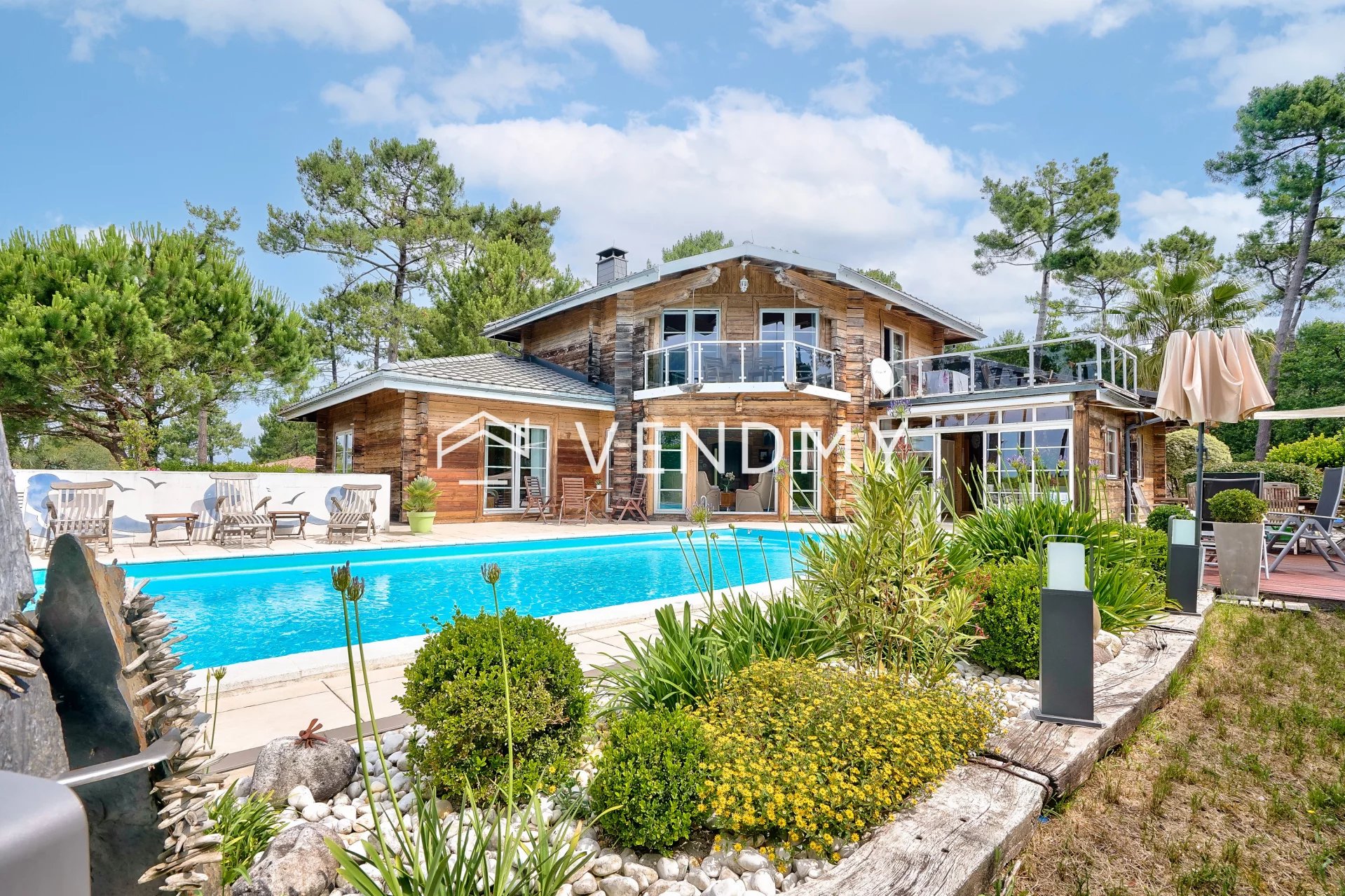 Villa exceptionnelle aux larges volumes en bois de mélèze avec vue panoramique sur la pinède entre bassin et océan et à proximité immédiate de tous commerces. Grande piscine au sel chauffée, terrain paysagé de 1500 m2 et pour la détente quatre terrasses et une pergola. Un studio indépendant pour les invités donne sur la piscine. Vendu entièrement meublé et équipé, matériaux haut de gamme. Havre de paix. Unique sur la presque île. Les informations sur les risques auxquels ce bien est exposé sont disponibles sur le site Géorisques http://georisques.gouv.fr. Prix : 3.465.000€ FAI dont 5% TTC de commission d’agence à la charge du vendeur et incluse dans le prix affiché. La présente annonce immobilière a été rédigée sous la responsabilité éditoriale de Nathalie.Magendie, Agente Commerciale mandataire en immobilier immatriculée au Registre Spécial des Agents Commerciaux du Tribunal de Commerce de Paris.