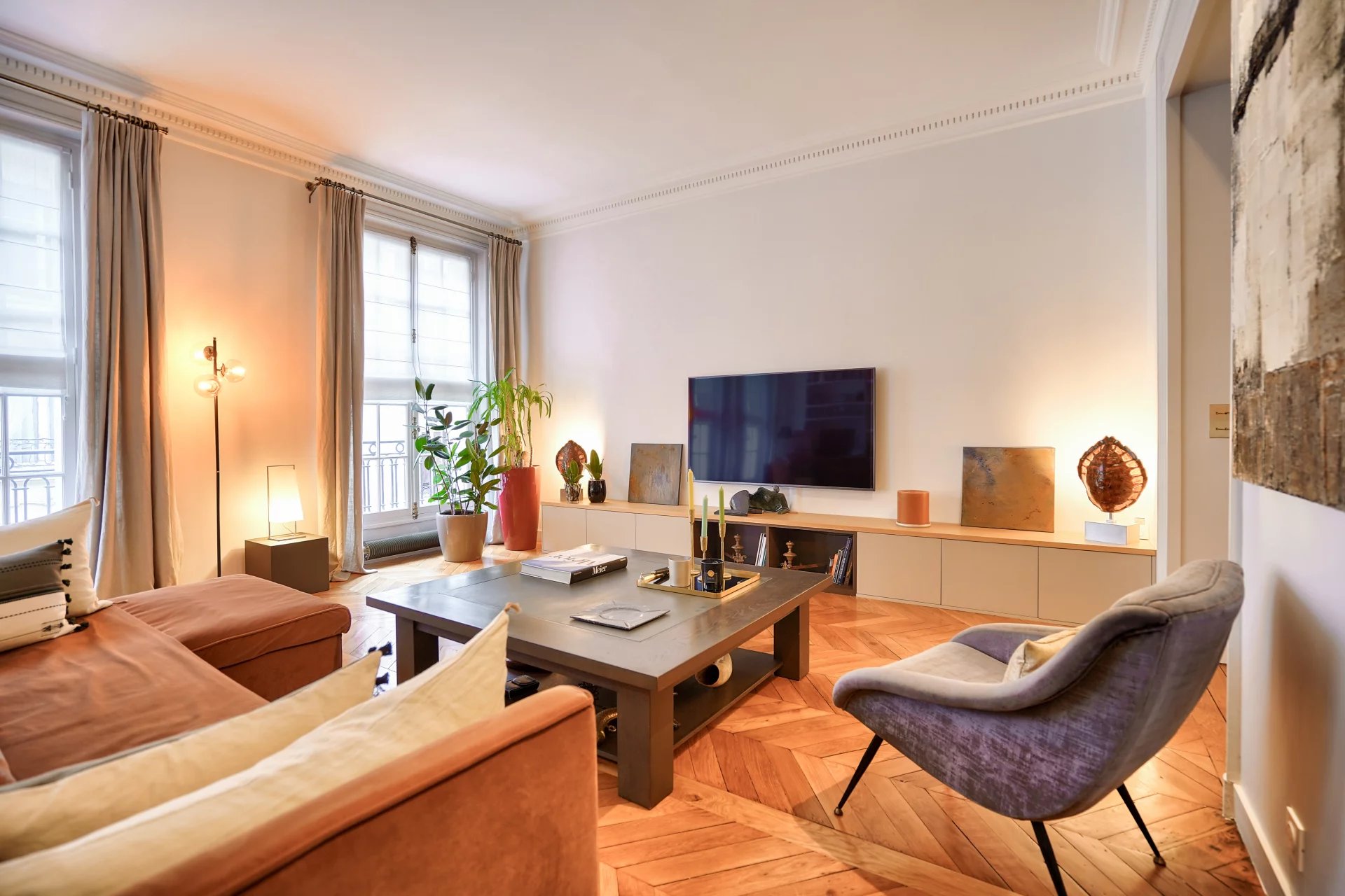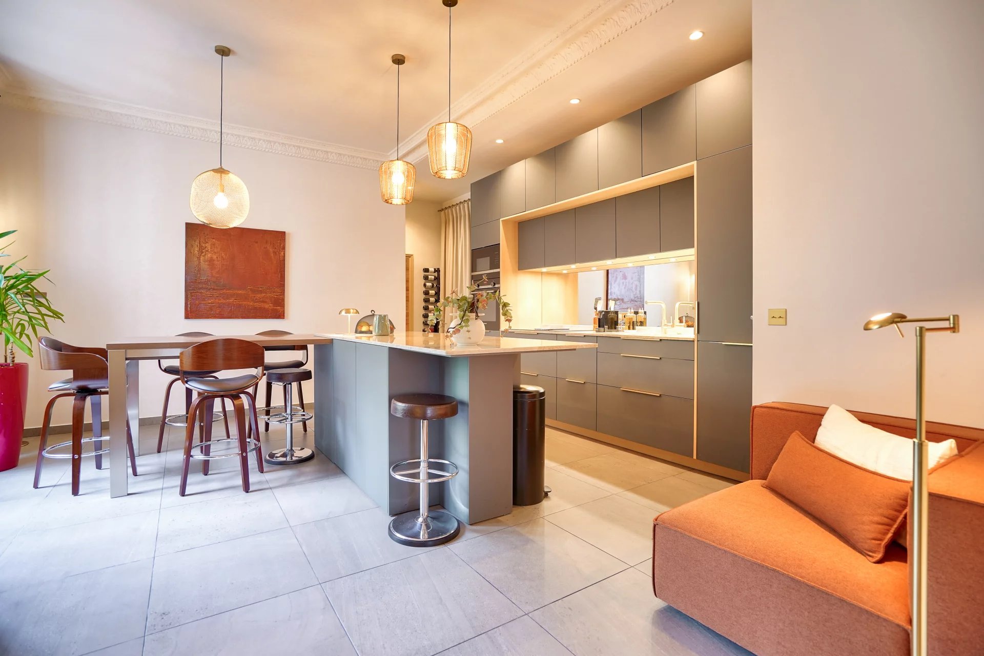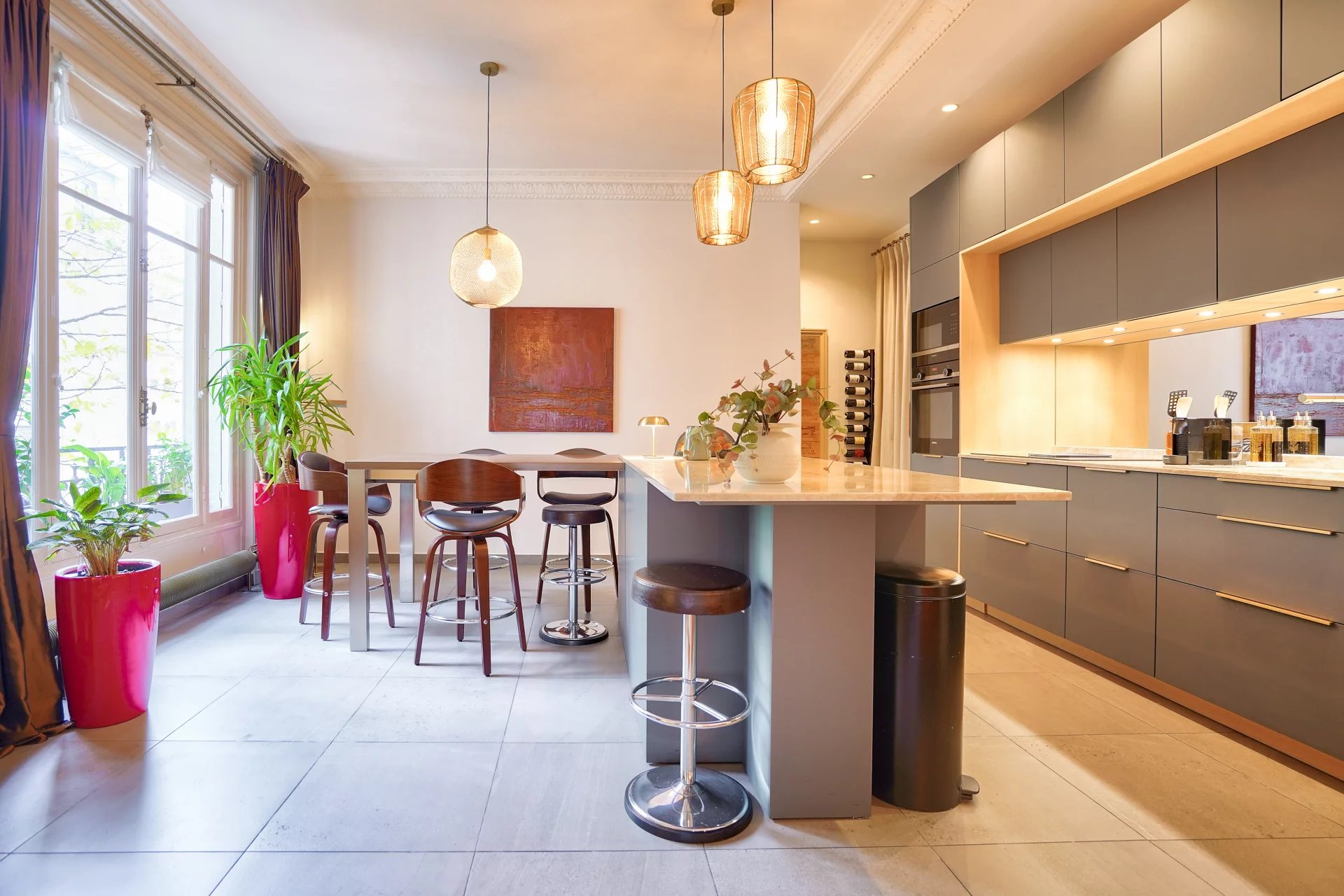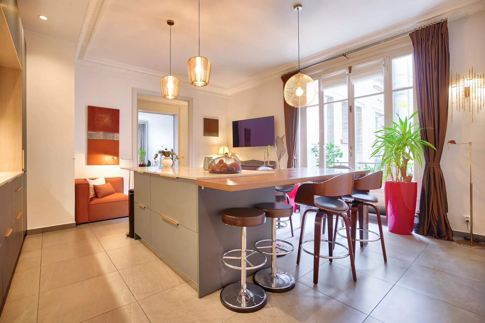 Dans un bel immeuble en pierre de taille, situé au 3ème étage avec ascenseur, un très bel appartement de 160 m2 loi Carrez entièrement rénové par architecte qui comprend : une entrée, une cuisine dinatoire, un vaste séjour avec vue dégagée, une suite parentale avec un grand dressing et une salle de bains attenante, deux chambres avec dressings, une salle de douche, toilettes séparées. Buanderie. Une cave complète ce bien. Charme de l'ancien. Rénové. Belles hauteurs sous plafond (Très Lumineux Exposition Sud). Copropriété formant une dizaine de lots principaux, ne faisant l'objet d'aucune procédure en cours. Prix de vente : 2 200 000 Euros incluant les honoraires d'agence à la charge du vendeur. Les informations sur les risques auxquels ce bien est exposé sont disponibles sur le site Géorisques : http://georisques.gouv.fr