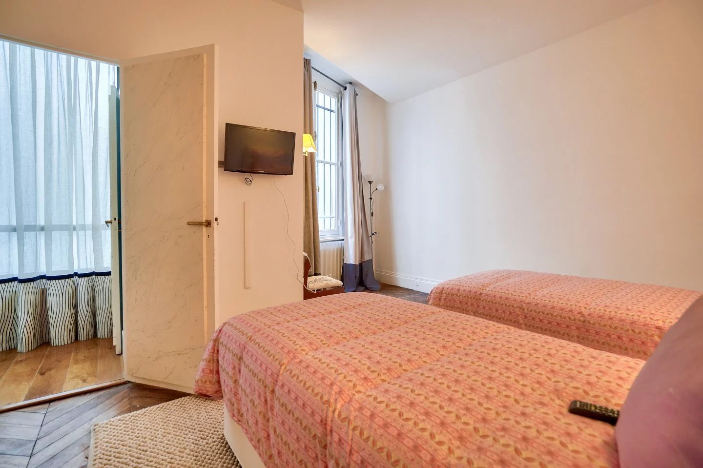 Tuileries Gardens - In a beautiful building constructed in 1830, a reception apartment of 177.53 m² (Carrez law) in perfect condition with very spacious rooms. Located on the noble floor with private access, this apartment overlooking a former private mansion currently used as an office (unoccupied in the evening and on weekends) consists of an entrance, a large reception room, a dining room, a fully equipped kitchen with a dining area, a master suite with a bathroom and dressing room, and two bedrooms each with its own adjoining bathroom. Very high-quality features. A basement cellar completes this beautiful ensemble. Air conditioning. Concierge. Elevator. Quiet and sought-after location.