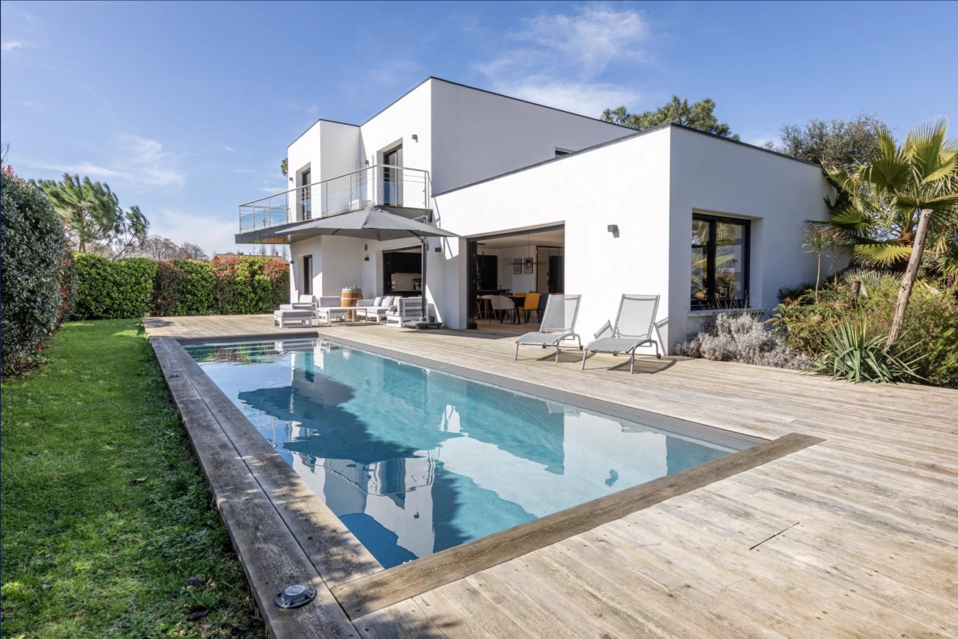 Vous serez immédiatement séduit par ses prestations haut de gamme et son confort absolu. Le jardin luxuriant, agrémenté d'une piscine ensoleillée exposée plein sud, vous invite à la détente et à la sérénité.
