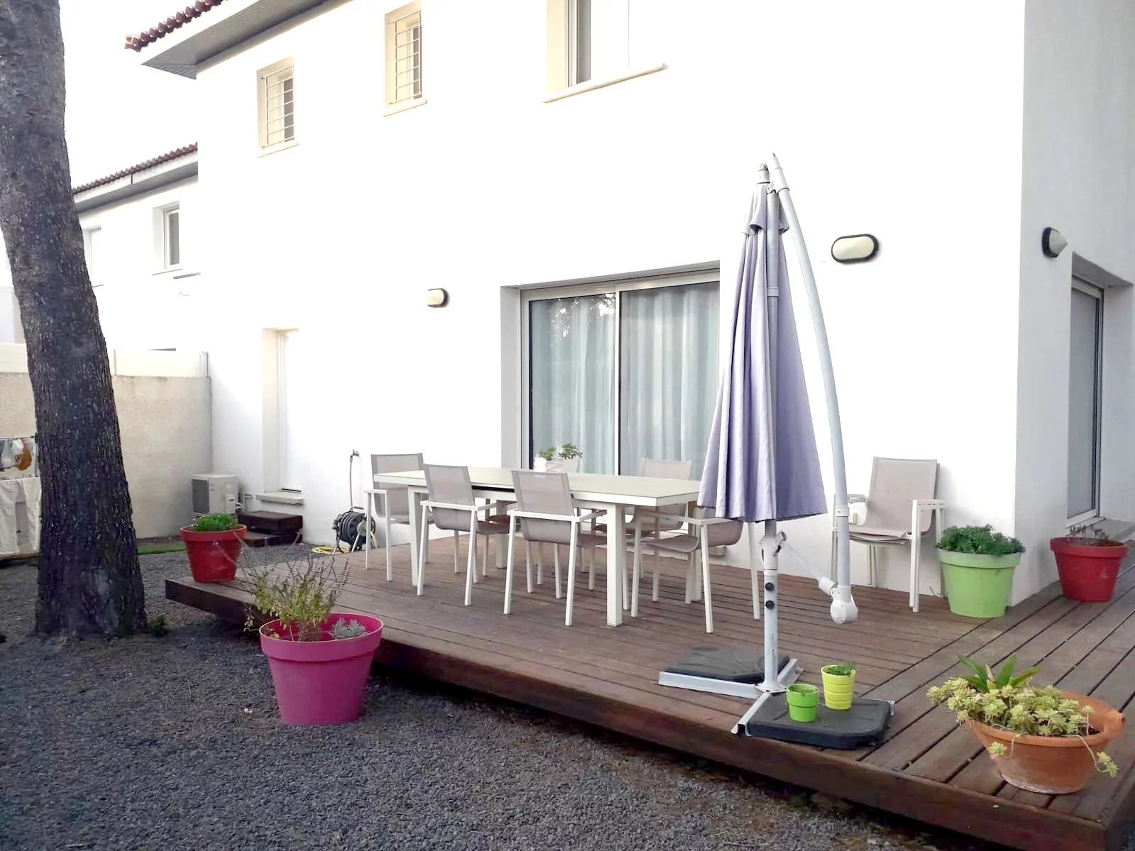 Getting first Near the center of the village, quiet, in a small set of 3 lots, beautiful new contemporary villa of 100m2 habitable in R + 1 with an enclosed garden of 200m2 raised and landscape, a single room of 33m2 parking as well as a gaarage 21m2.En of DRC, a furnished kitchen with center island stay equipped (plate, oven), a large bathroom with sink, and a pantry. Upstairs 3 bedrooms of respectively 14/14 and 12m2, a bathroom with bath, shower and vanity. reversible air conditioning in all rooms. available for the first week of June. Rental amount: 1200 Excluding charges (water and electricity). Agency fees: 900