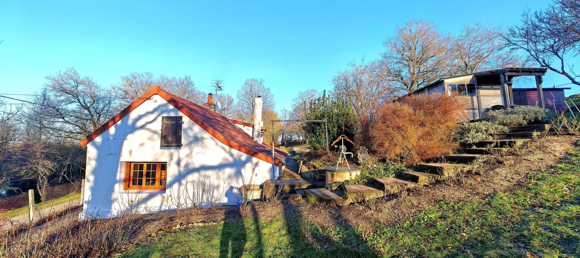 Pour les amoureux de la nature, cette propriété vous ravira par son calme, ses arbres fruitiers, ses ruches, deux puits, et ses nombreuses dépendances.