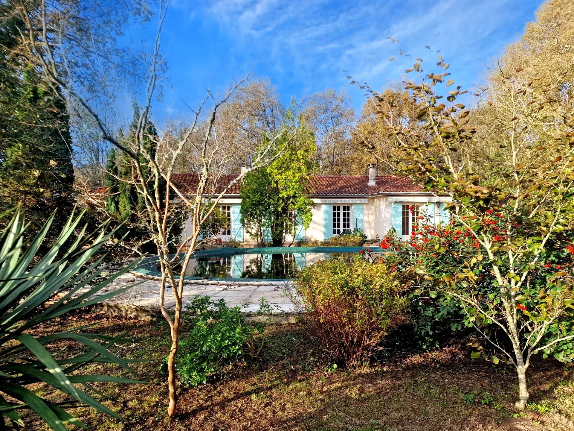 En extérieur outre la piscine et le parc paysager arboré, se trouve une dépendance de 60m² pouvant abriter un atelier ou le futur studio pour recevoir vos invités ...