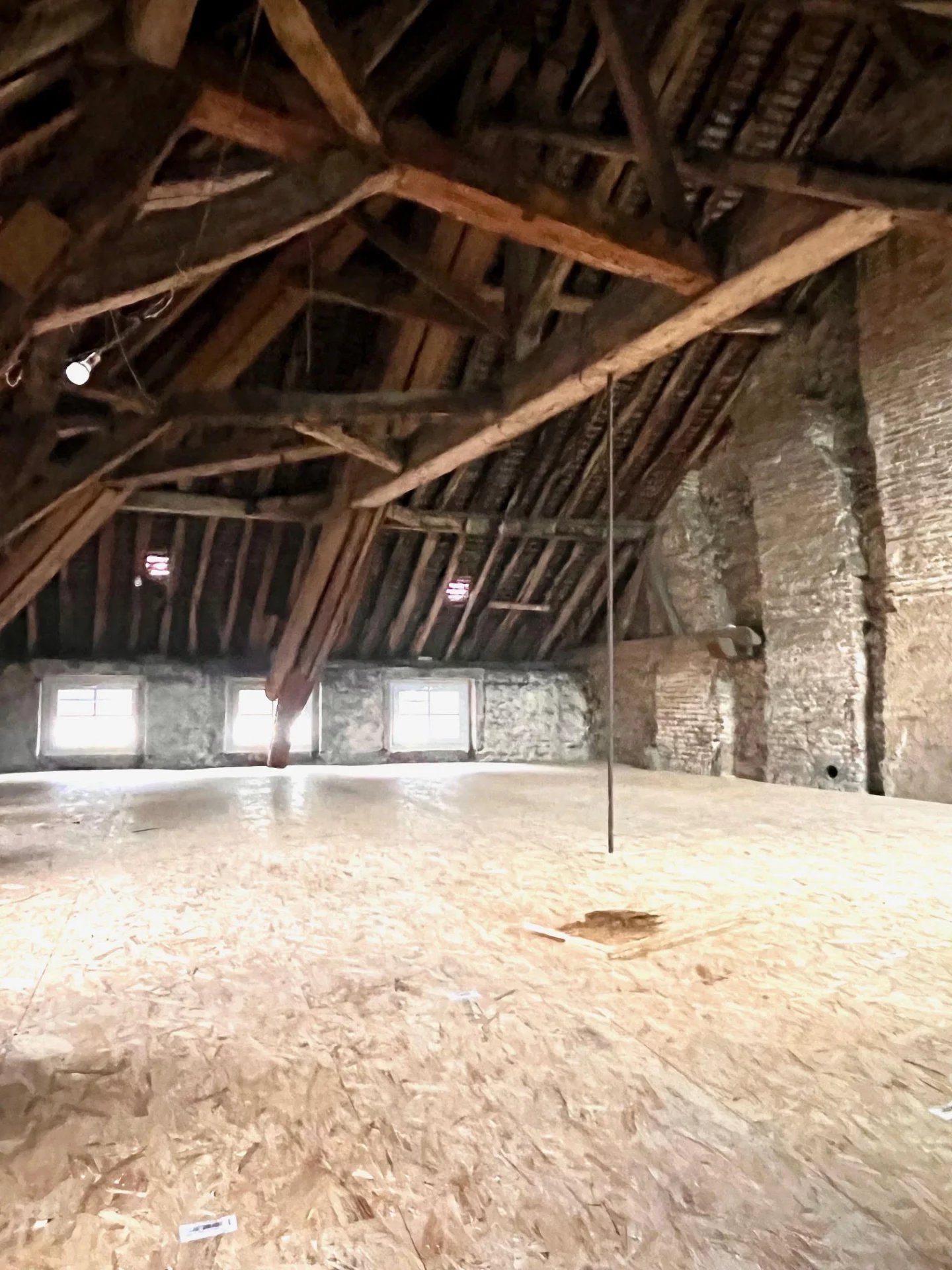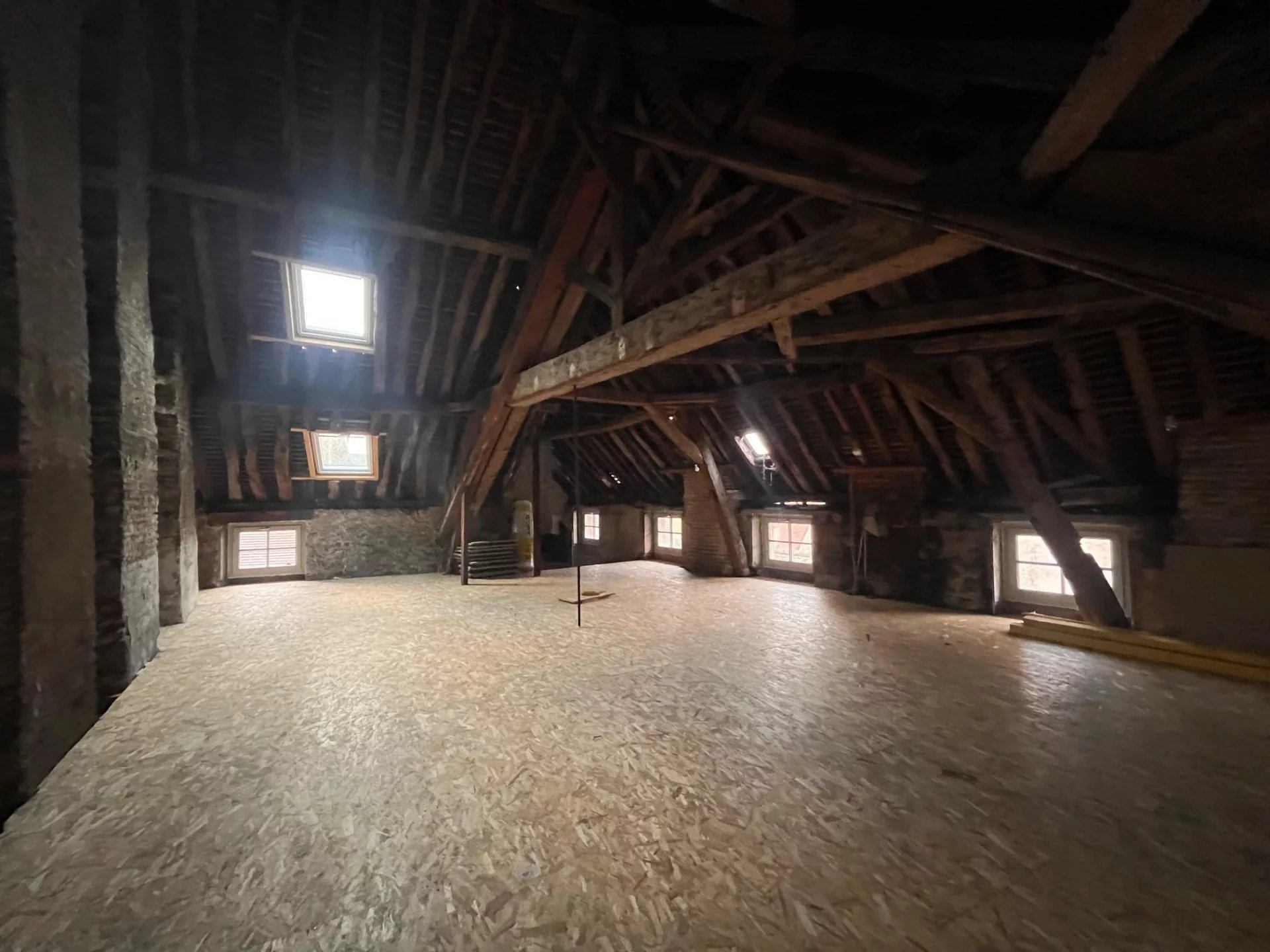 A vendre: un plateau de 80 m² au sol situé au centre historique de Beaune. Vous pourrez créer votre agencement à votre goût tout en préservant les matériaux anciens existants (pierres, poutres). Composé de 6 ouvertures avec des fenêtres basses neuves et deux fenêtres de toit neuves également. Grande hauteur sous plafond. Compteur et évacuation en attente sur place.