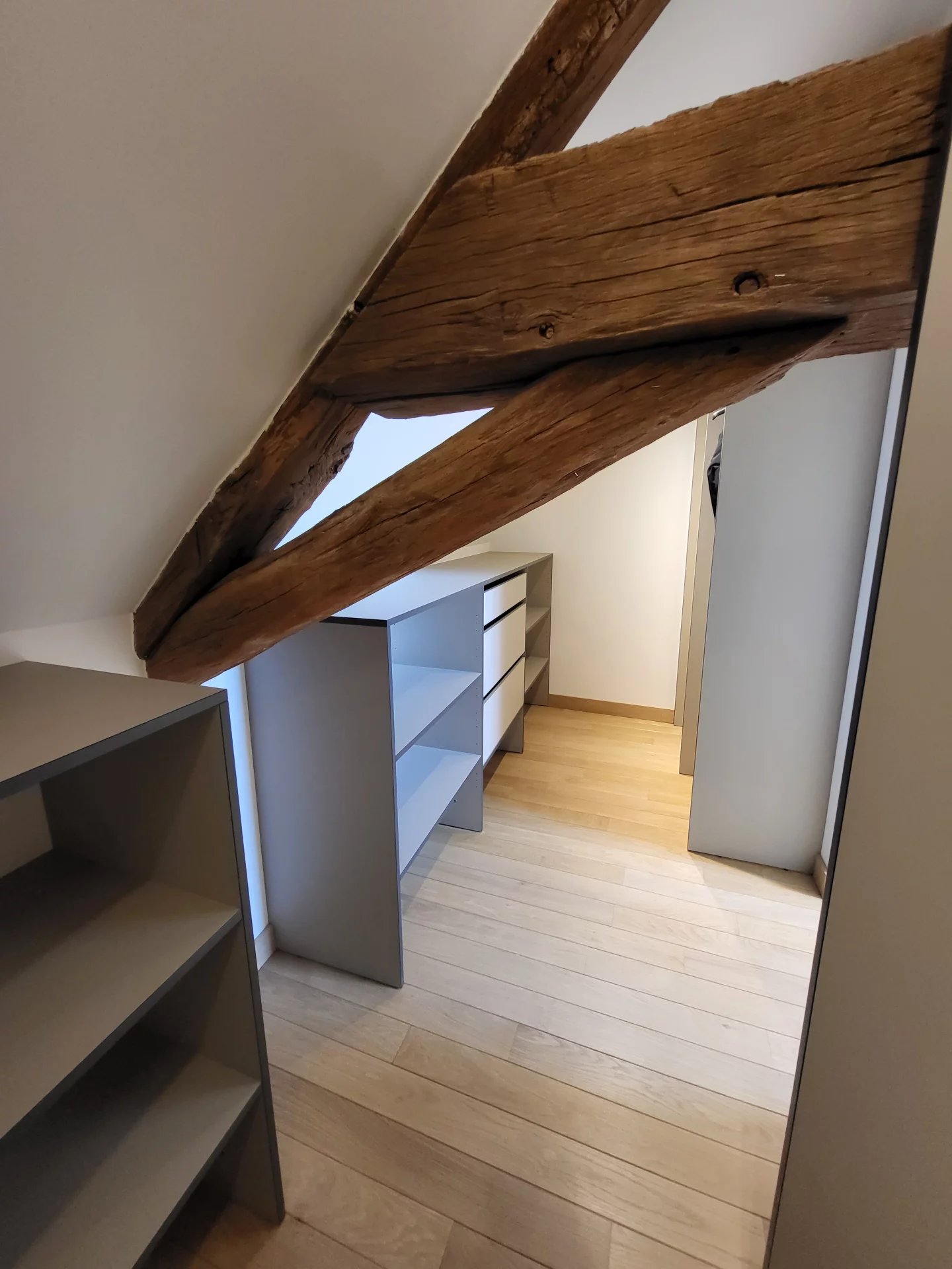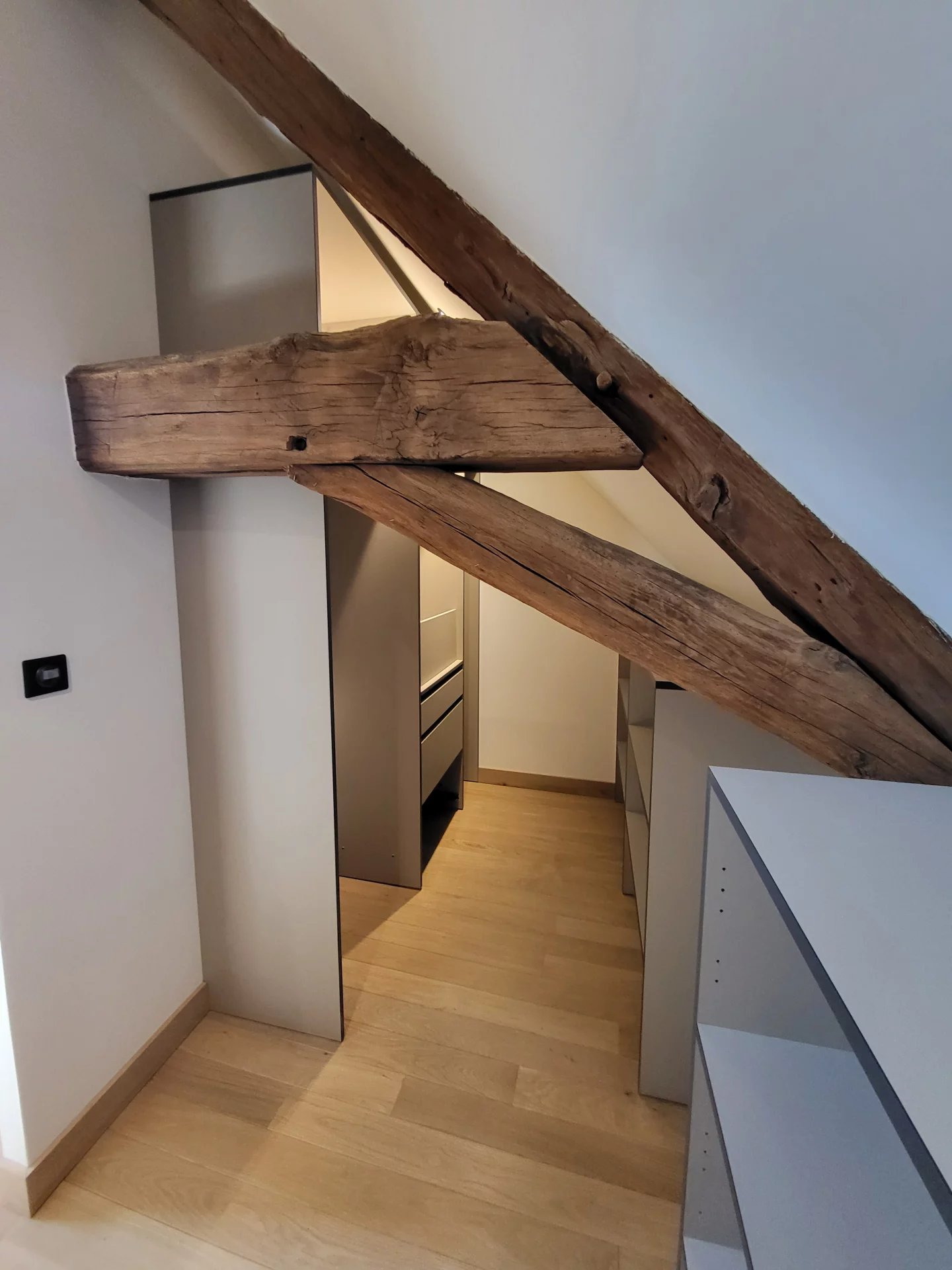Dans un hôtel particulier rénové, un bel appartement en duplex au dernier étage avec ascenseur. Beaux volumes et matériaux nobles (bois - acier).