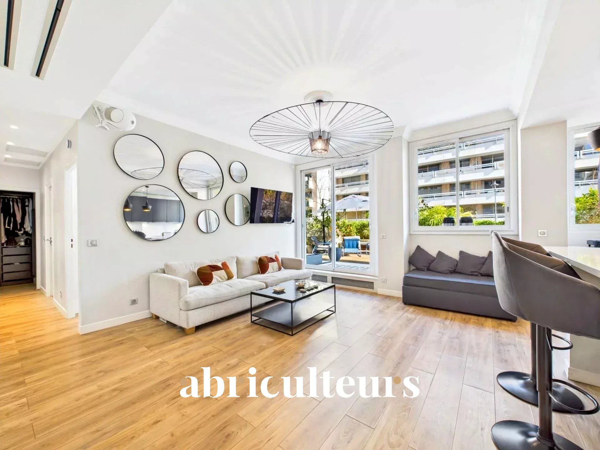 The apartment is enhanced by communal amenities such as a lift, playground, and outdoor lighting. Sliding windows invite natural light, while the terrace is perfect for relaxation under the sun. The property includes internet and a range of automated features like irrigation sprinklers to maintain the lush surroundings. Experience a sophisticated lifestyle in this sought-after Parisian enclave.