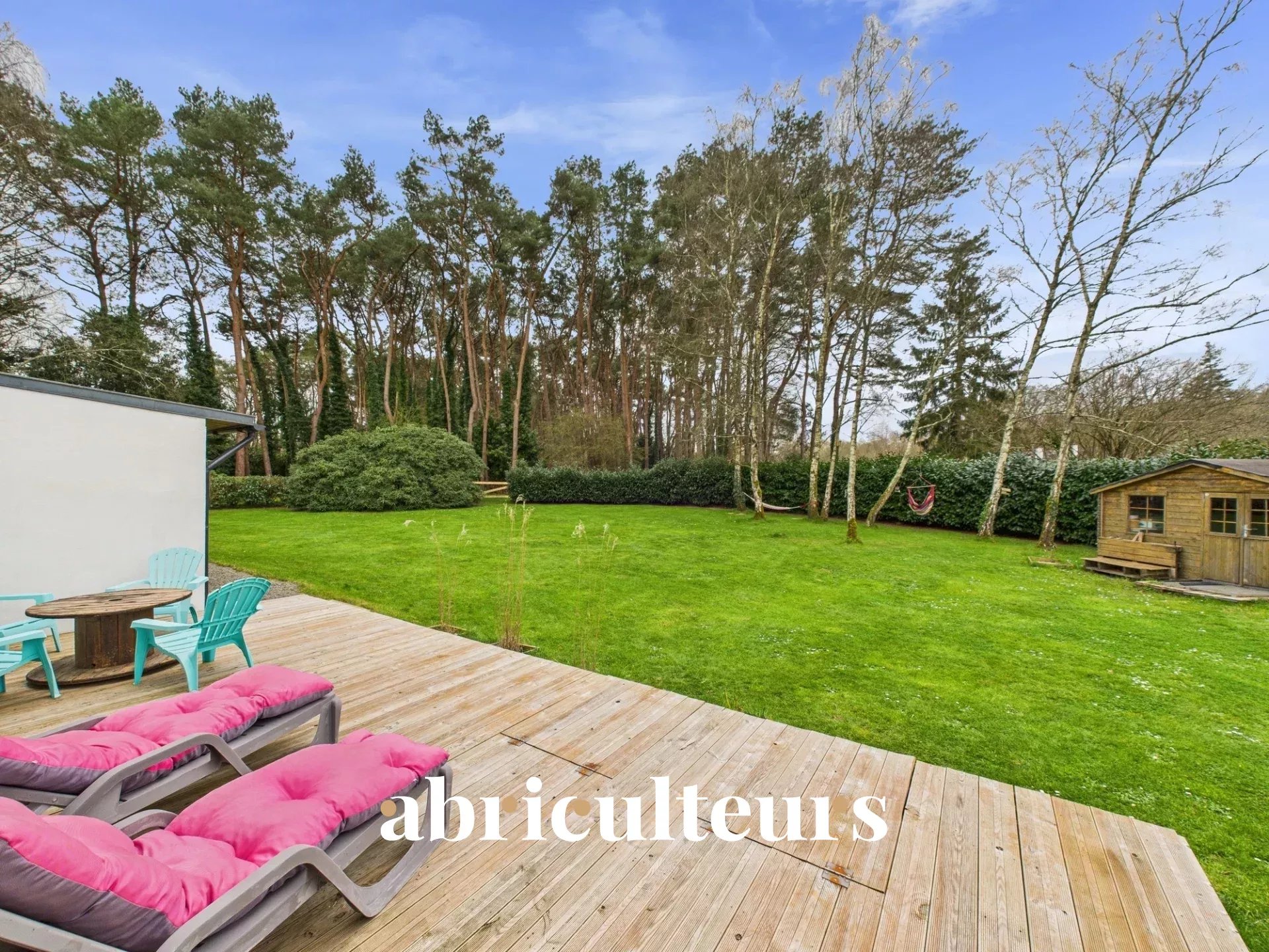 Outside, on the living room side, there is a lovely, well-oriented tiled terrace overlooking the garden and a wooded area of 3,500 m², a large garden shed, and on the entrance side, an electric gate opens onto a gravelled area (plenty of parking).