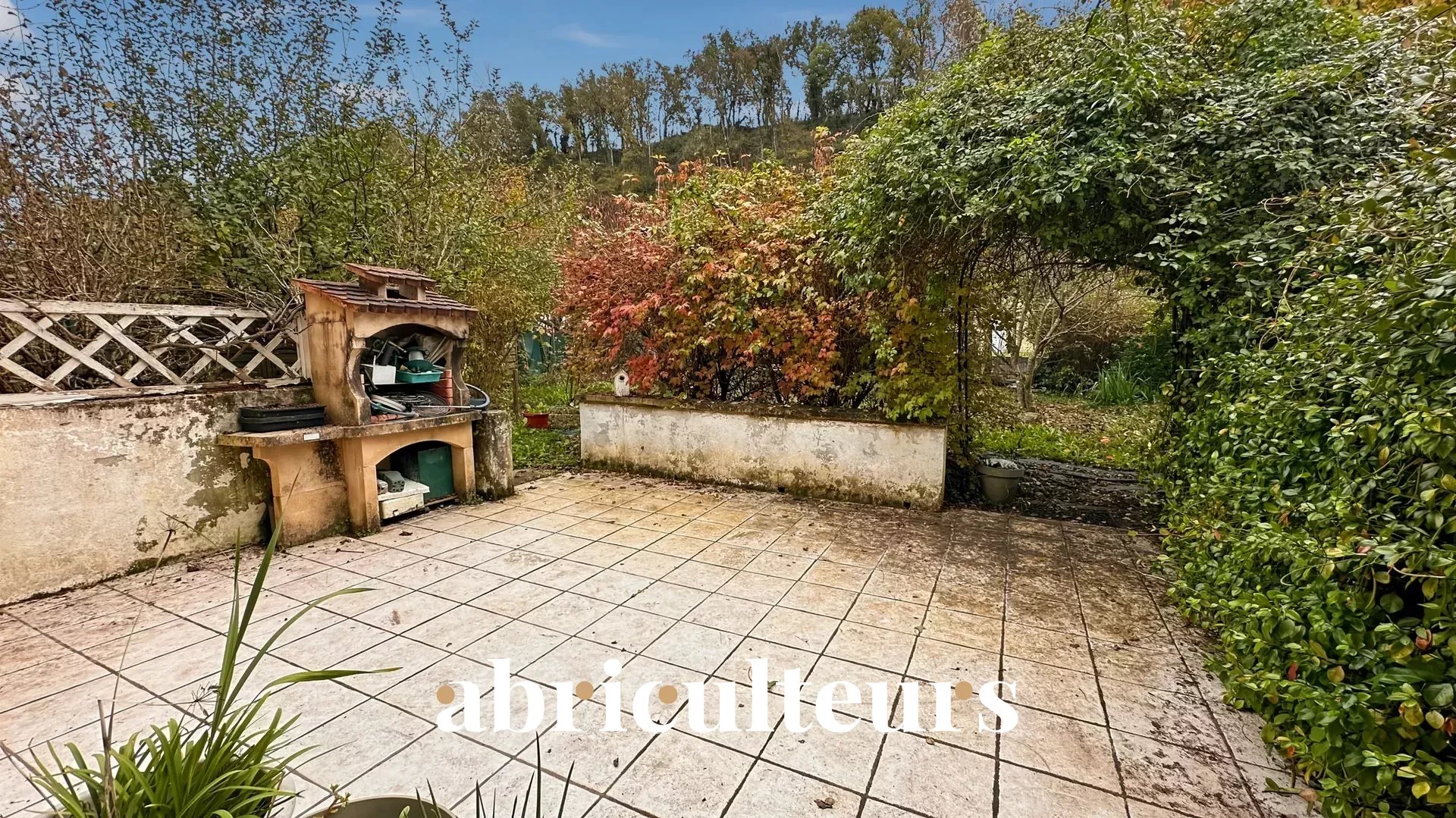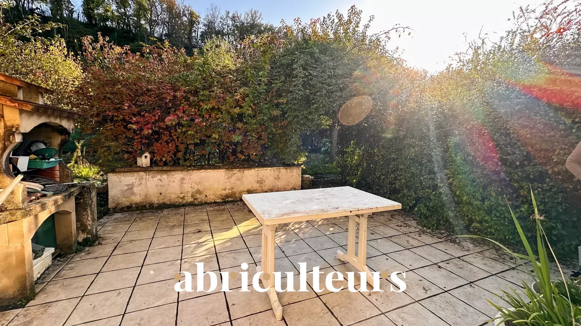 - Terrasse carrelée équipée d'un barbecue