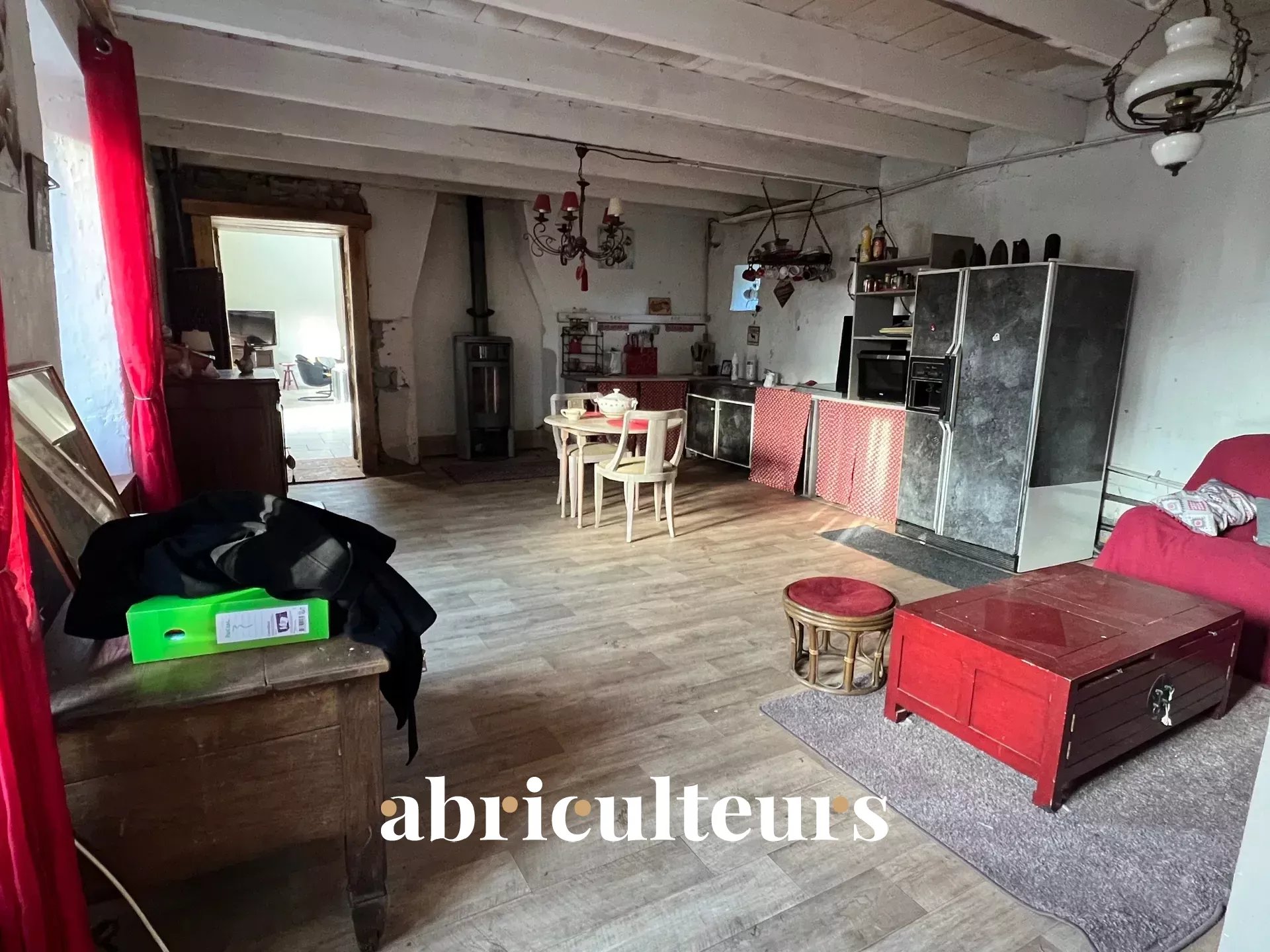 - Un séjour avec cuisine ouverte et poêle à bois,