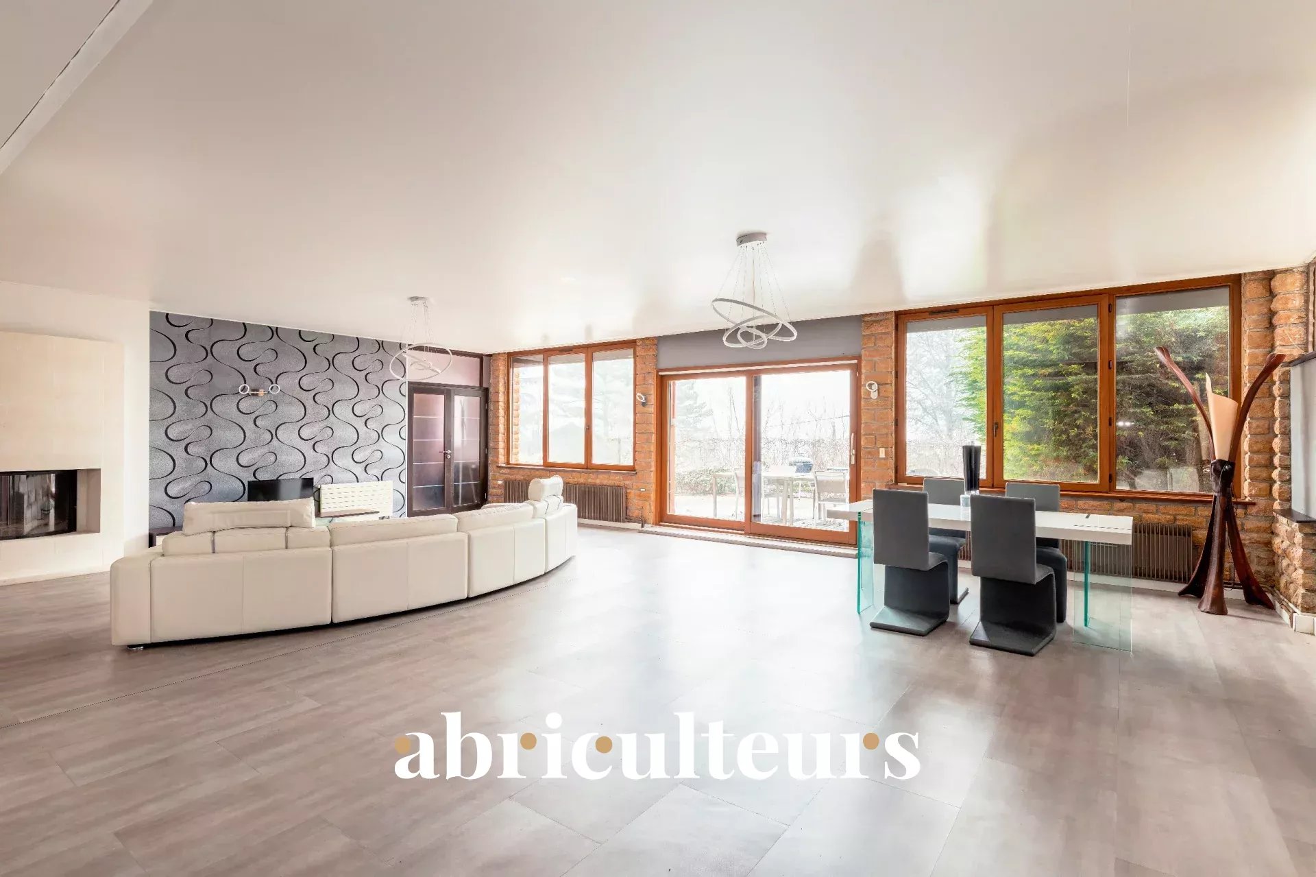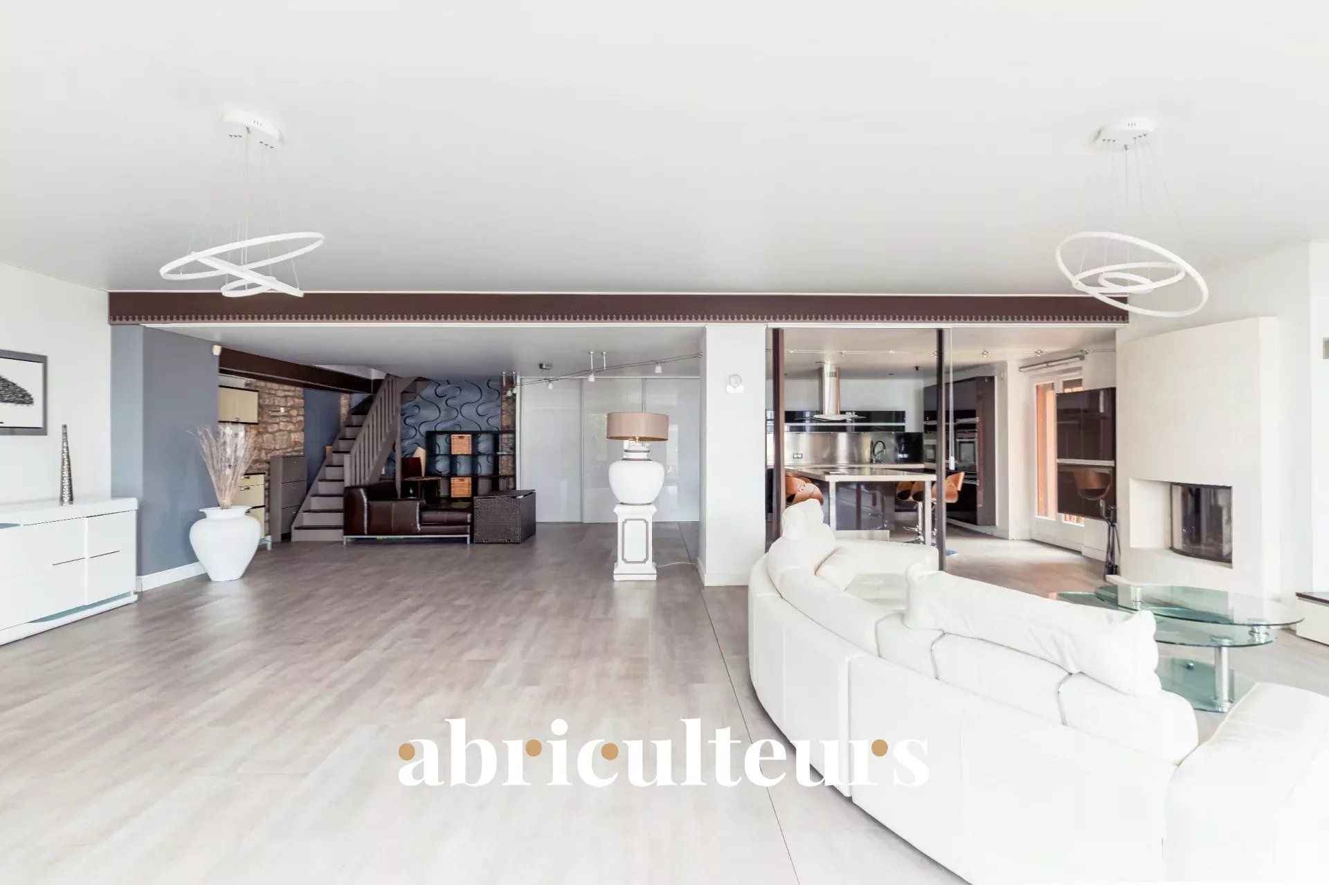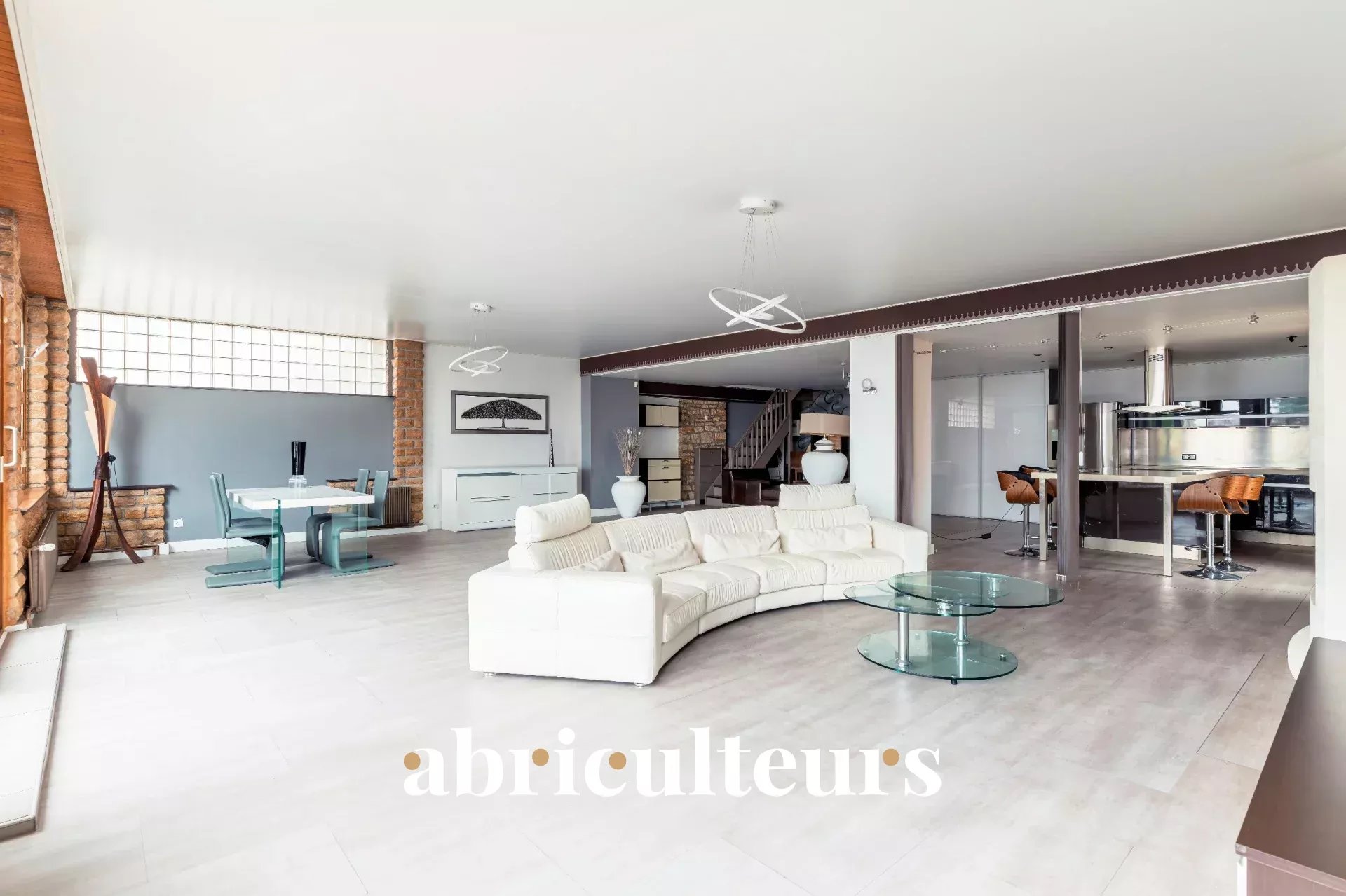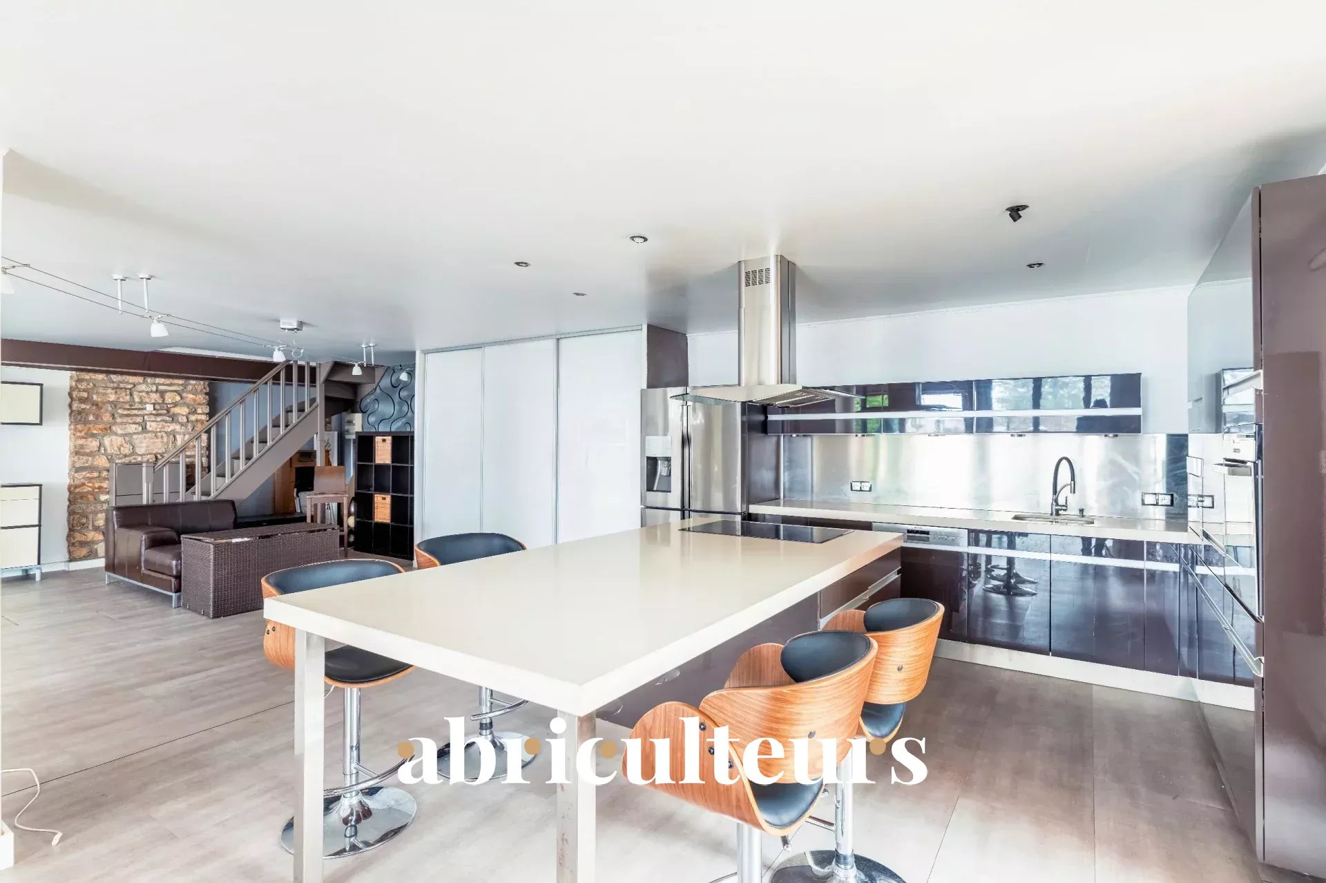 - Un séjour spacieux de 100 m² avec cuisine ouverte qui est aménagée et équipée,