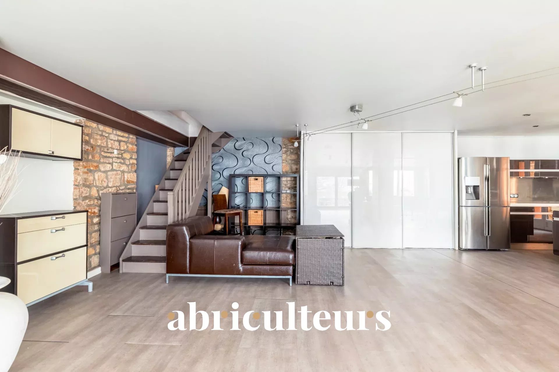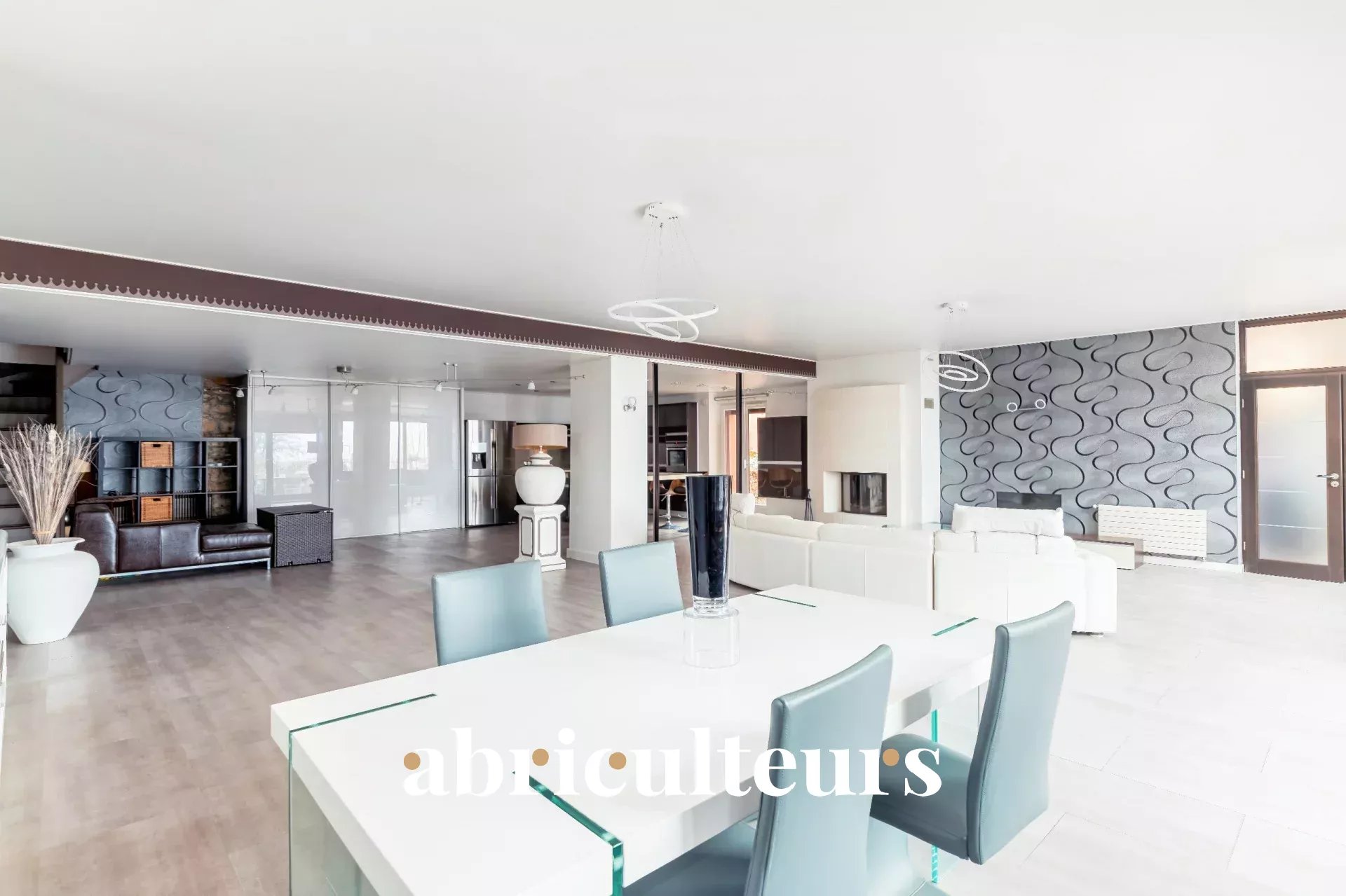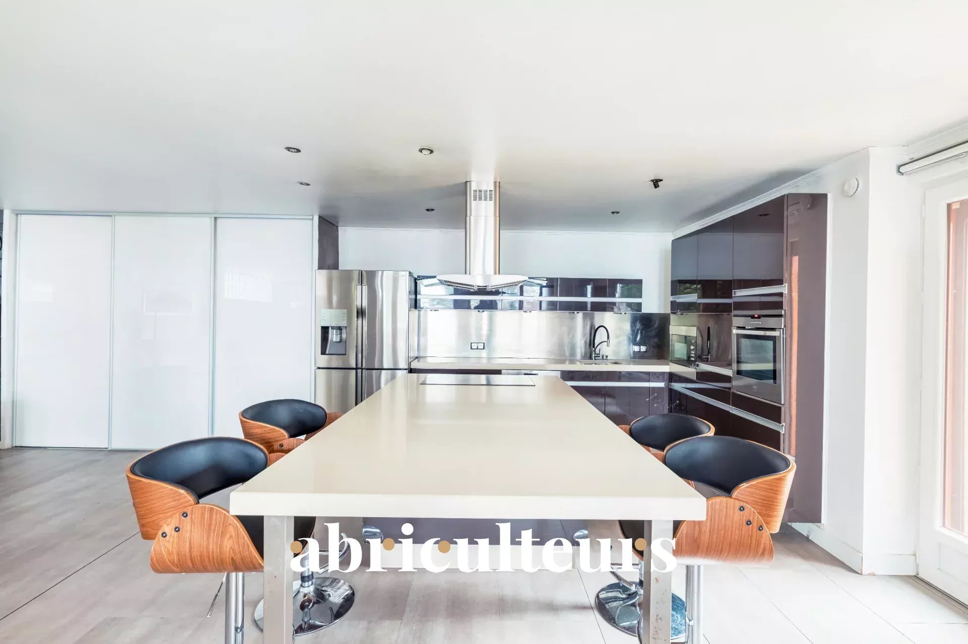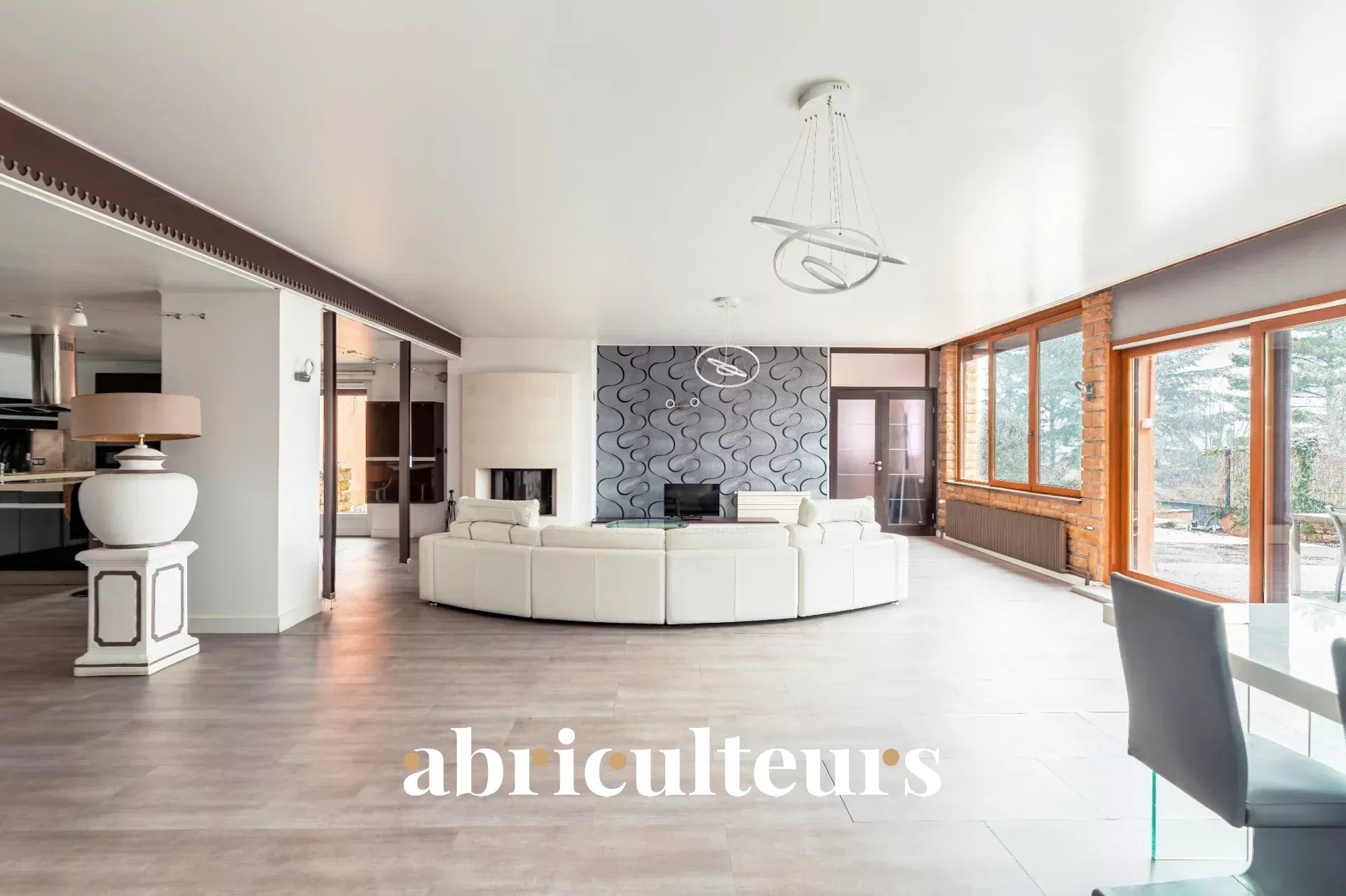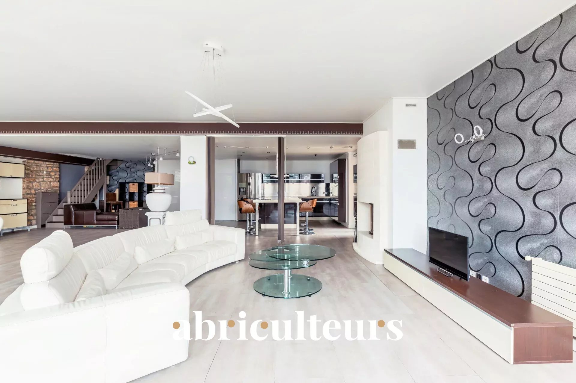 - Un séjour spacieux de 100 m² avec cuisine ouverte qui est aménagée et équipée,