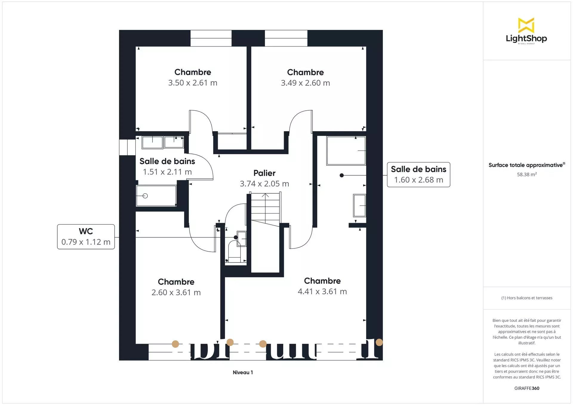 - Une salle d'eau,