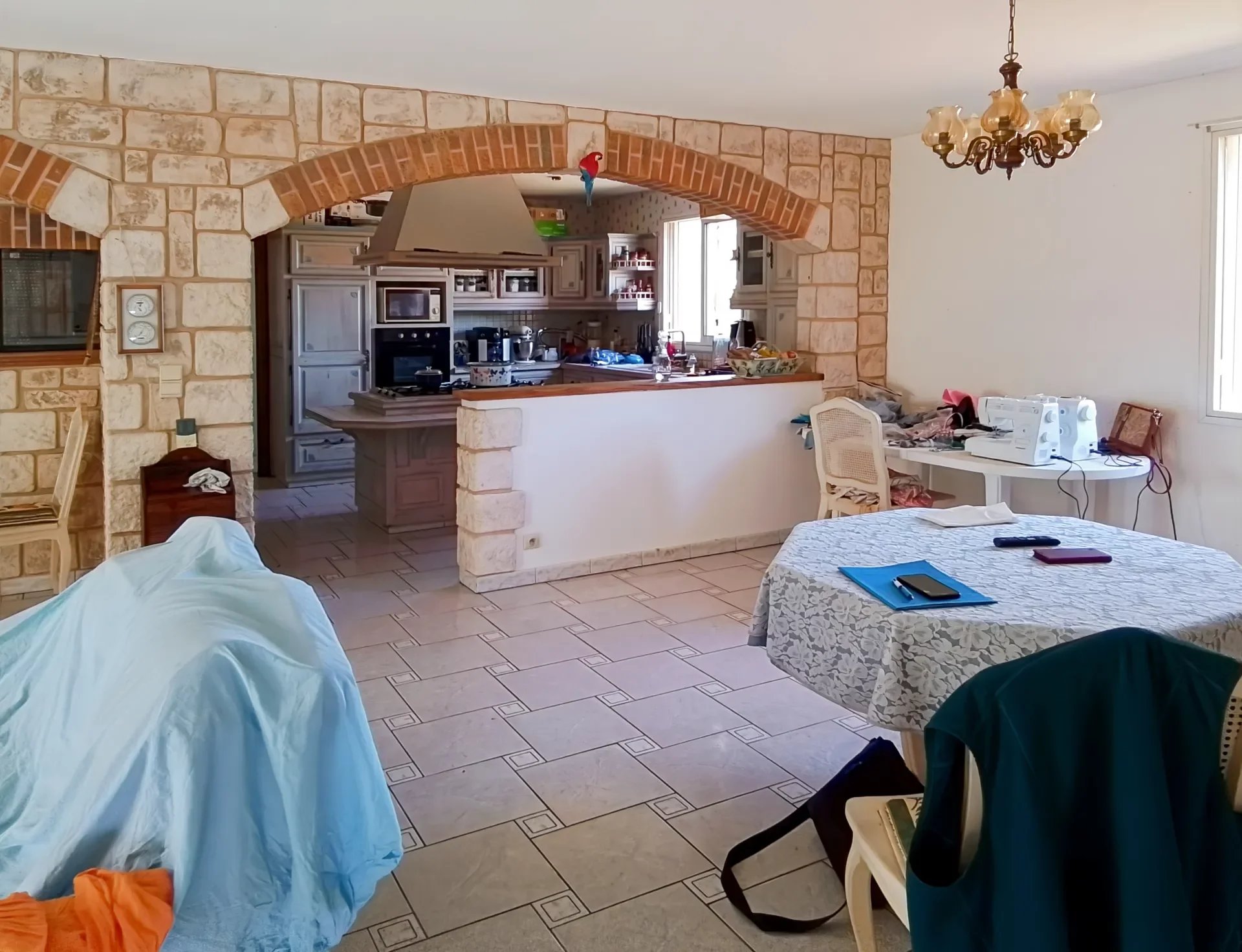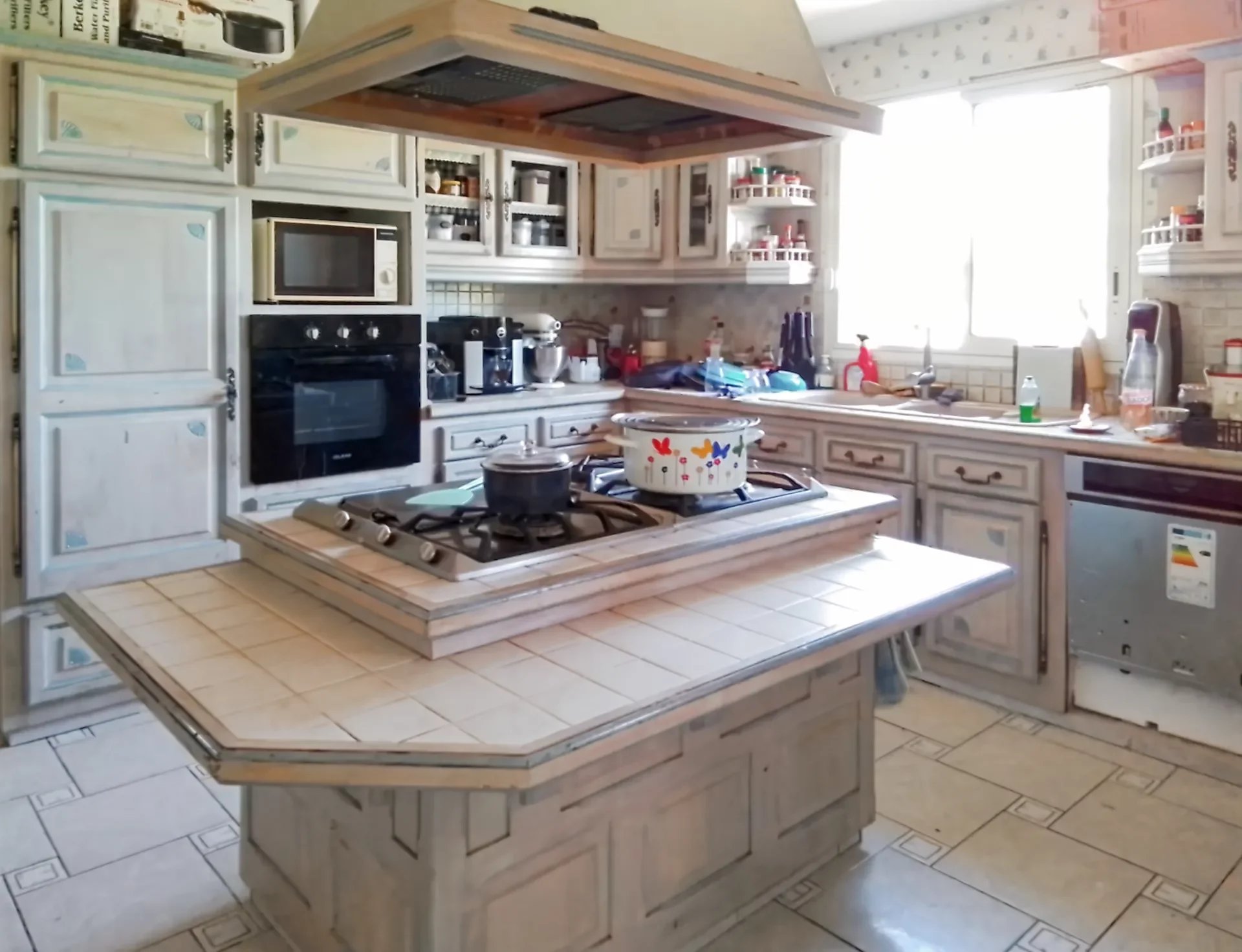 Une cuisine moderne et ouverte, avec un îlot central, parfaite pour les repas en famille.