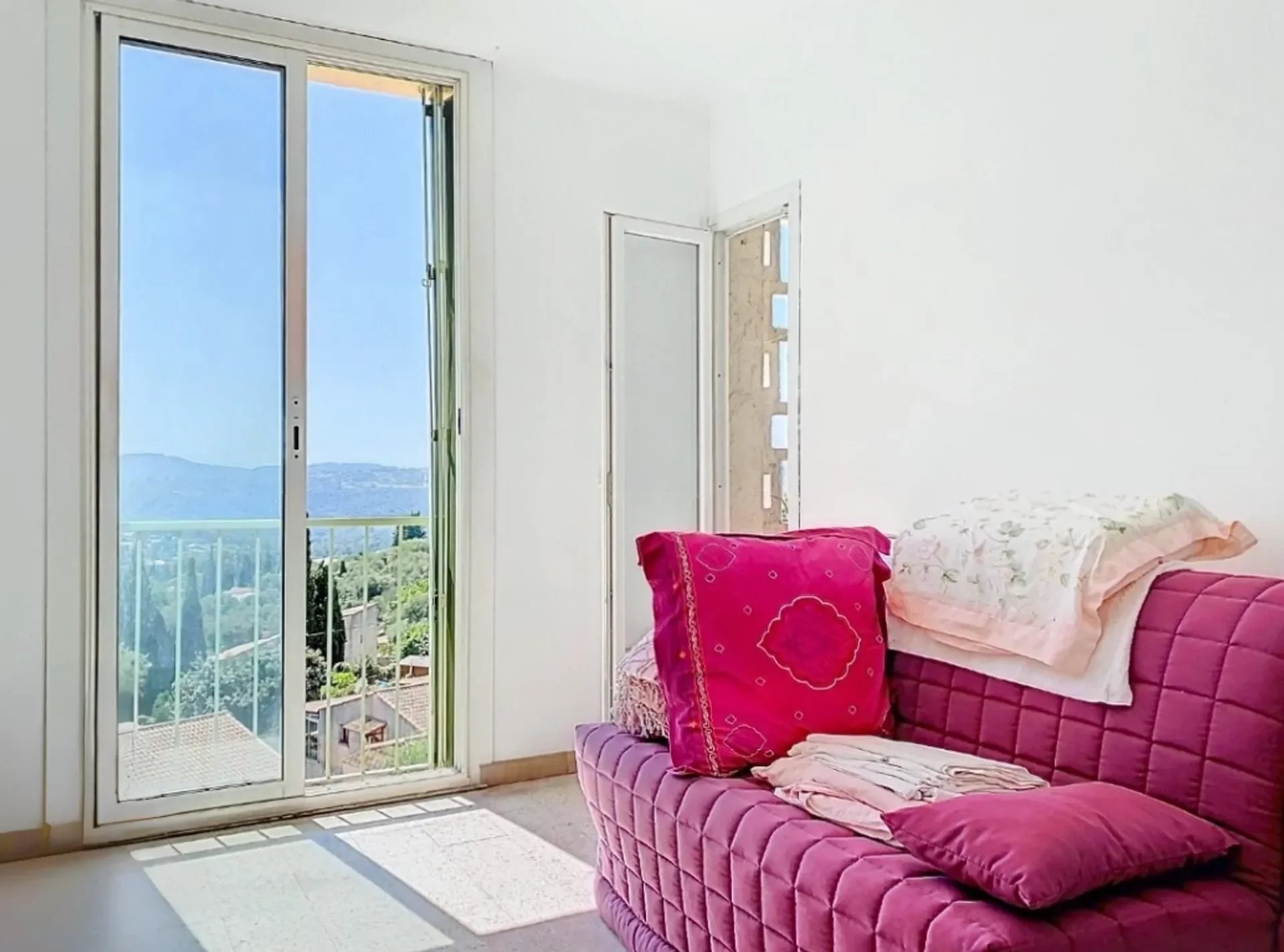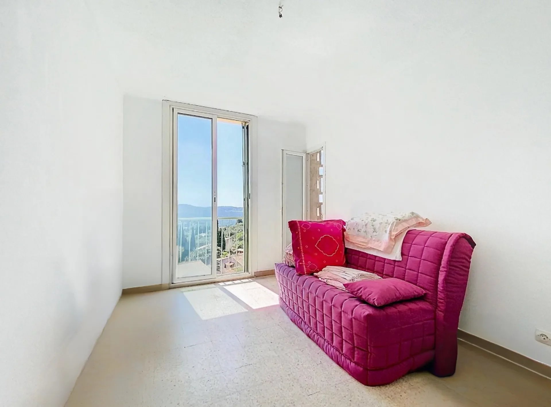 L'appartement dispose également de trois chambres avec une vue sublime sur la baie de Cannes, d'une cuisine séparée et d'un espace dressing, offrant de nombreux rangements.