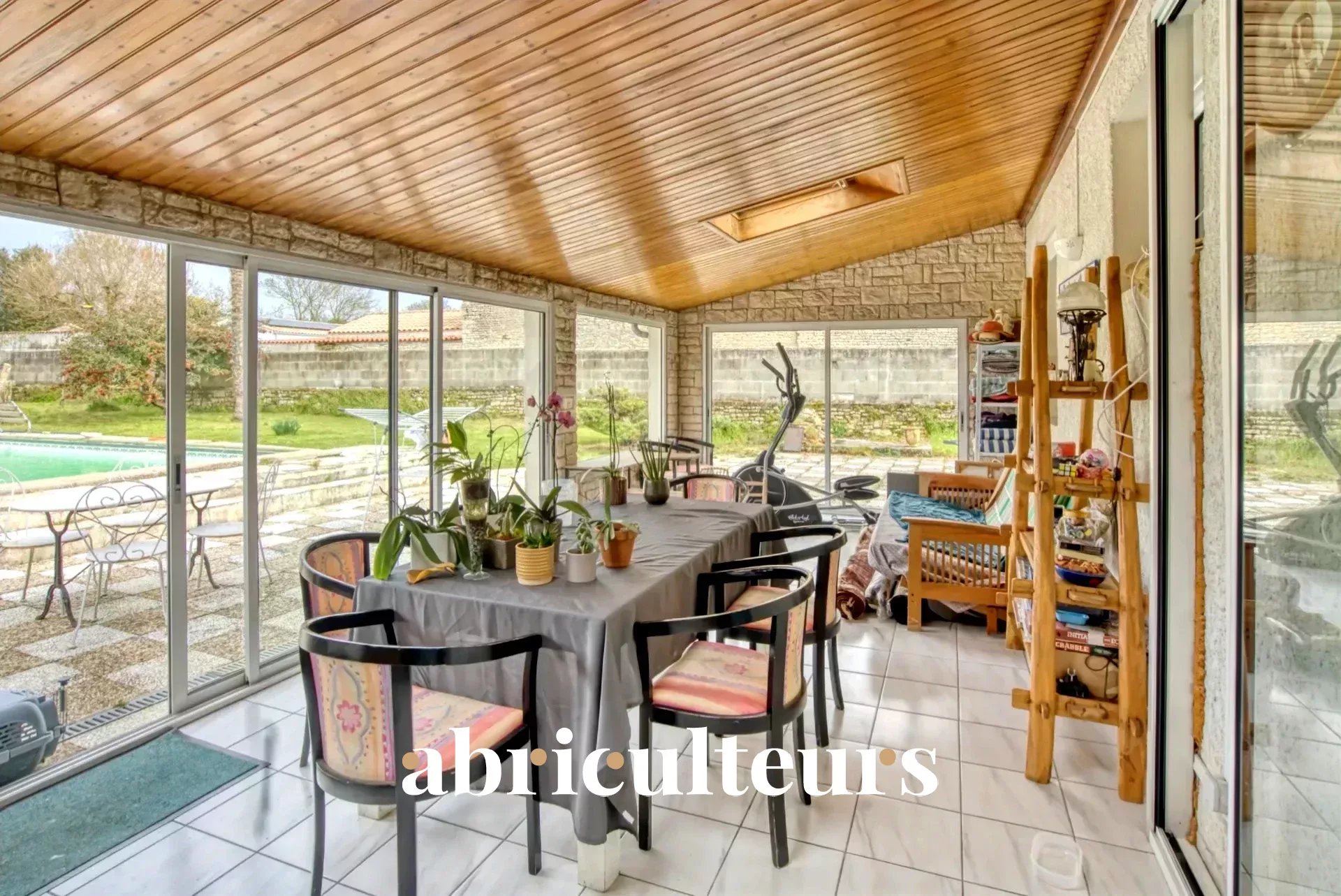 Abriculteurs offers this charming 135 m² 5-room house for sale, with an independent 35 m² T2, located in Clavette, just 15 minutes from La Rochelle and the beaches.