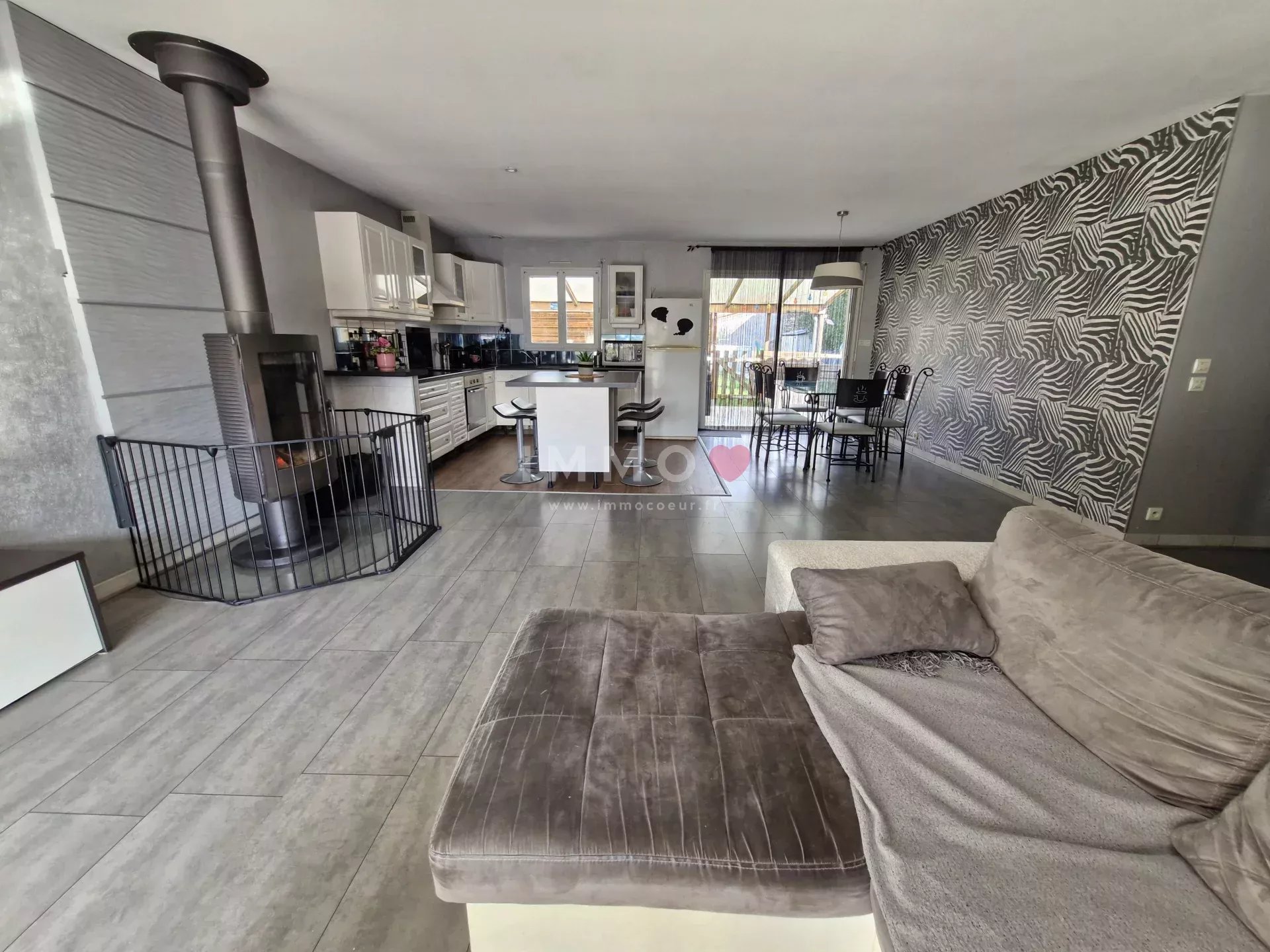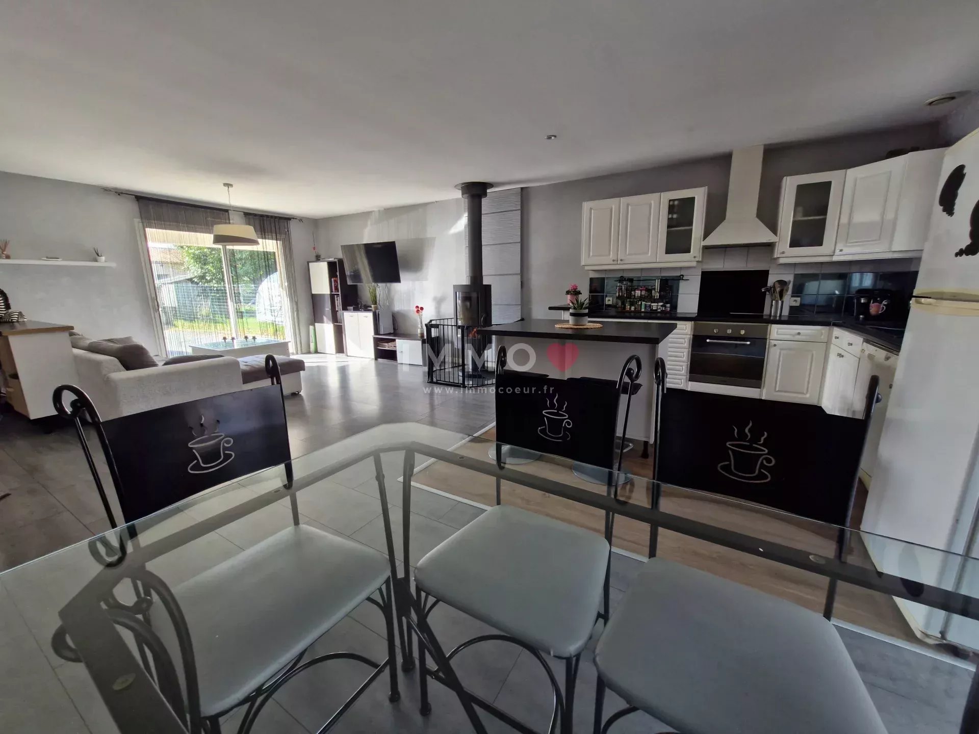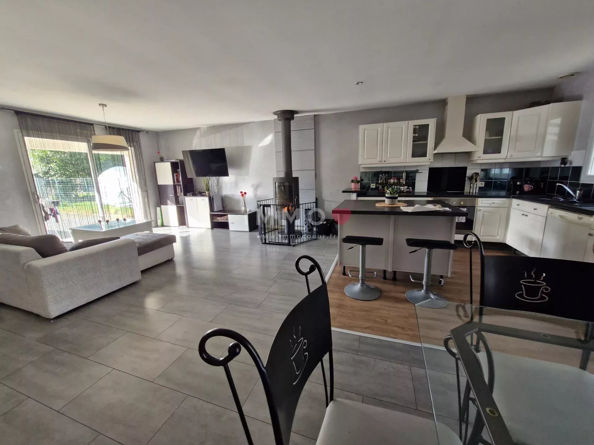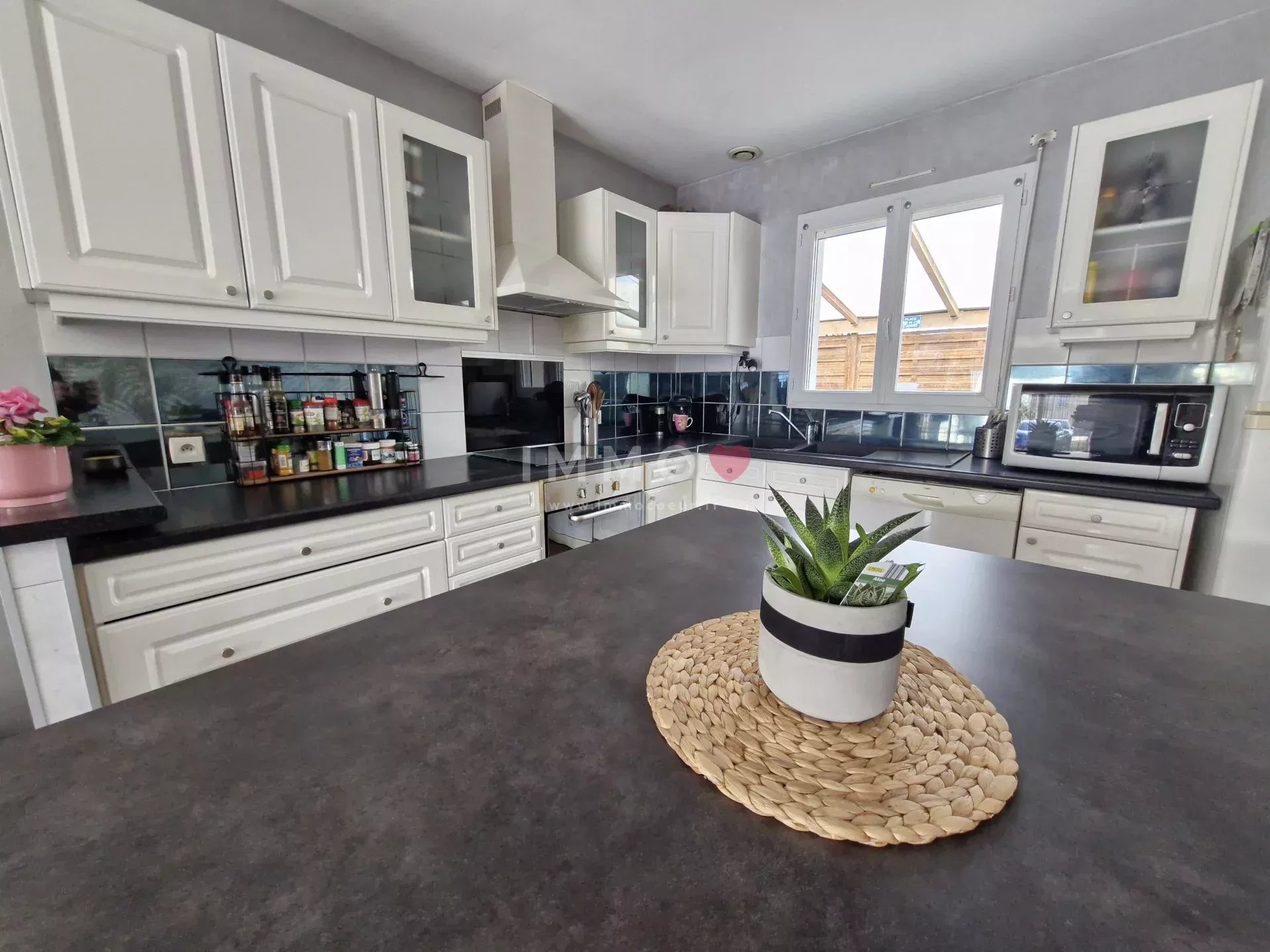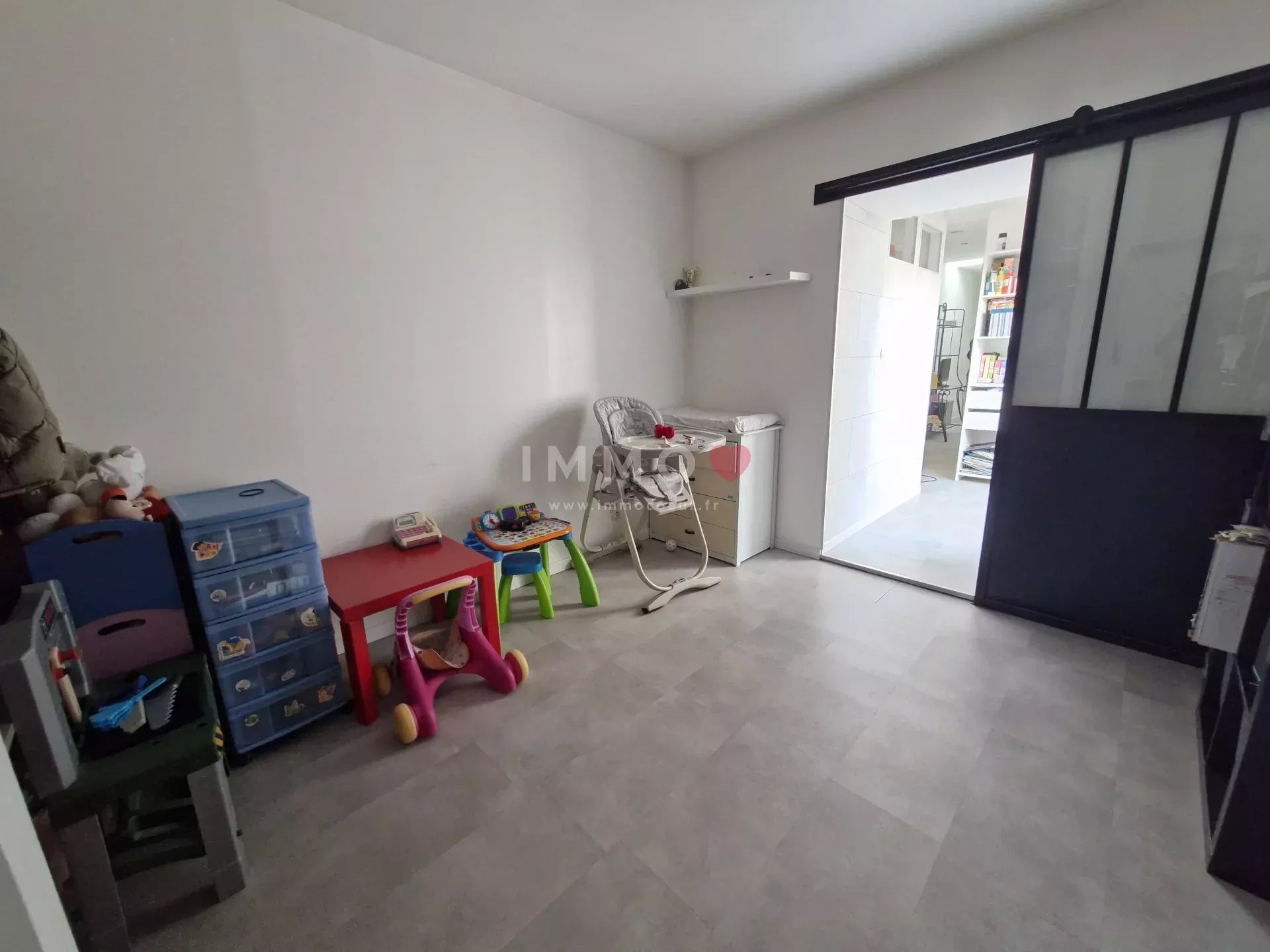 Elle se compose d'un séjour traversant exposé sud avec une cuisine ouverte donnant sur la terrasse et le jardin clos, 4 chambres, salle de jeux, salle de bains, salle d'eau, 2 wc, garage, jardin et stationnement.