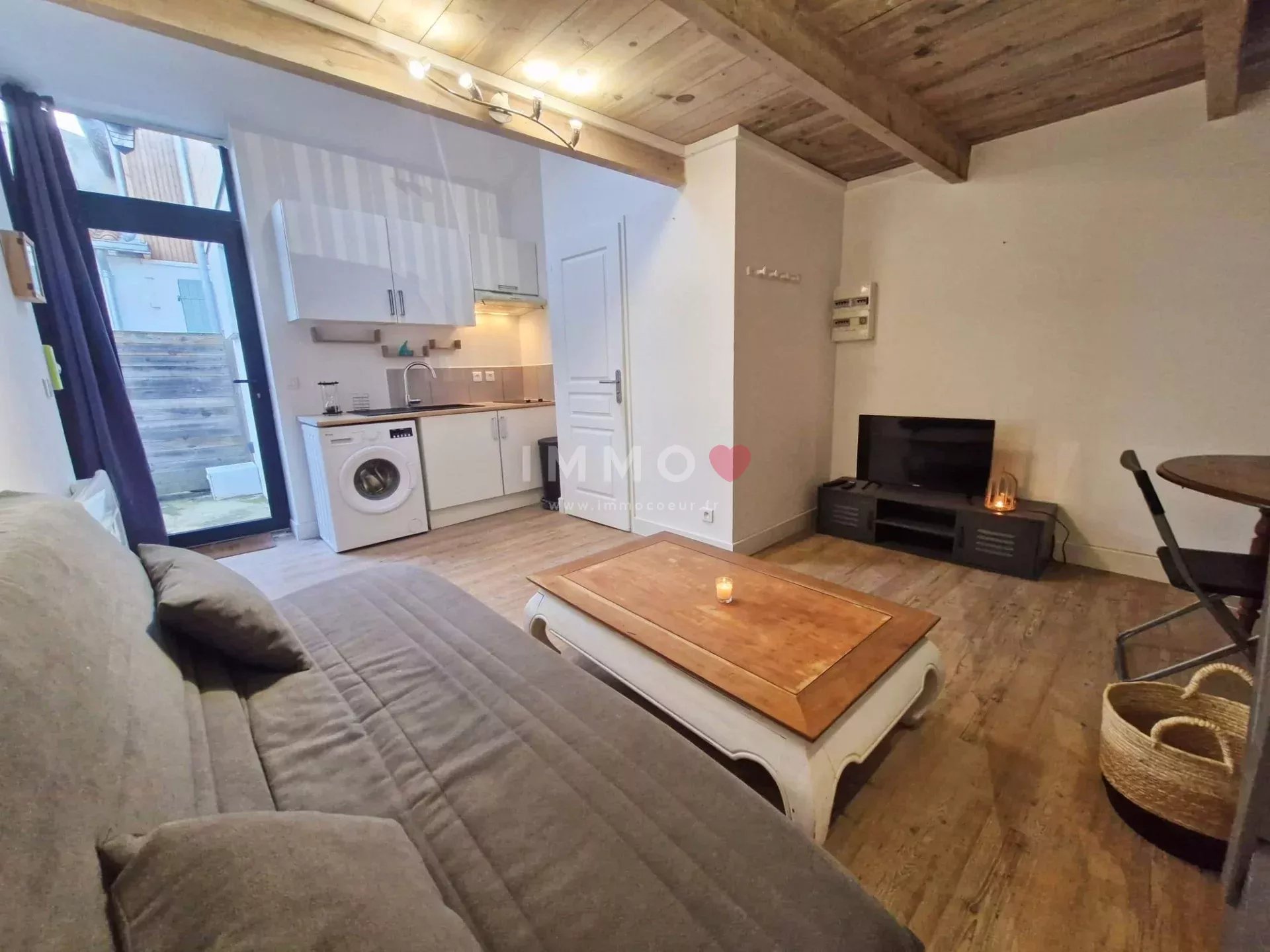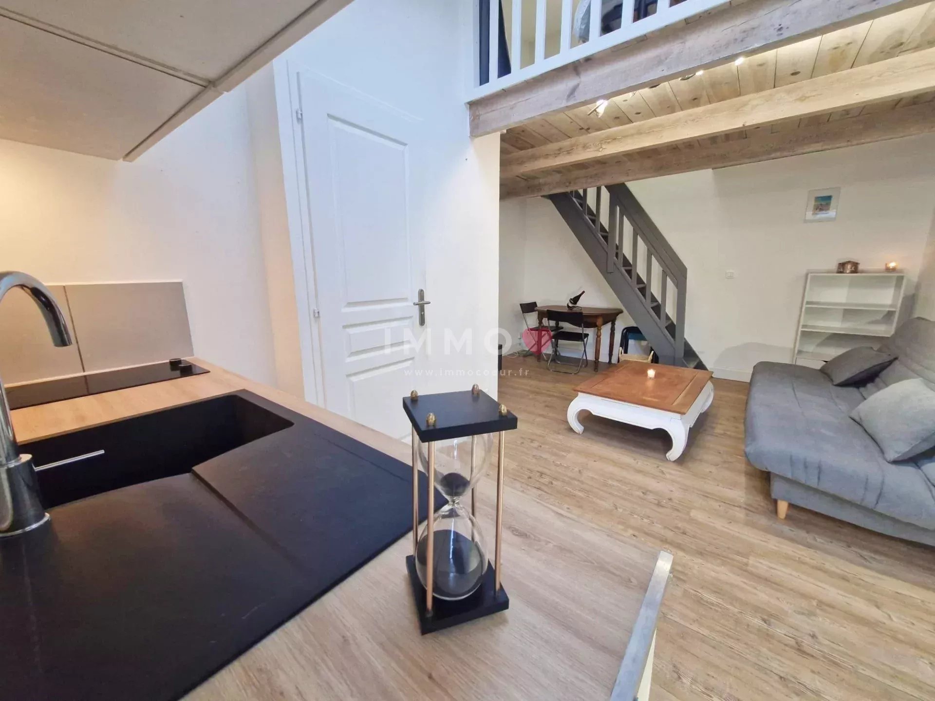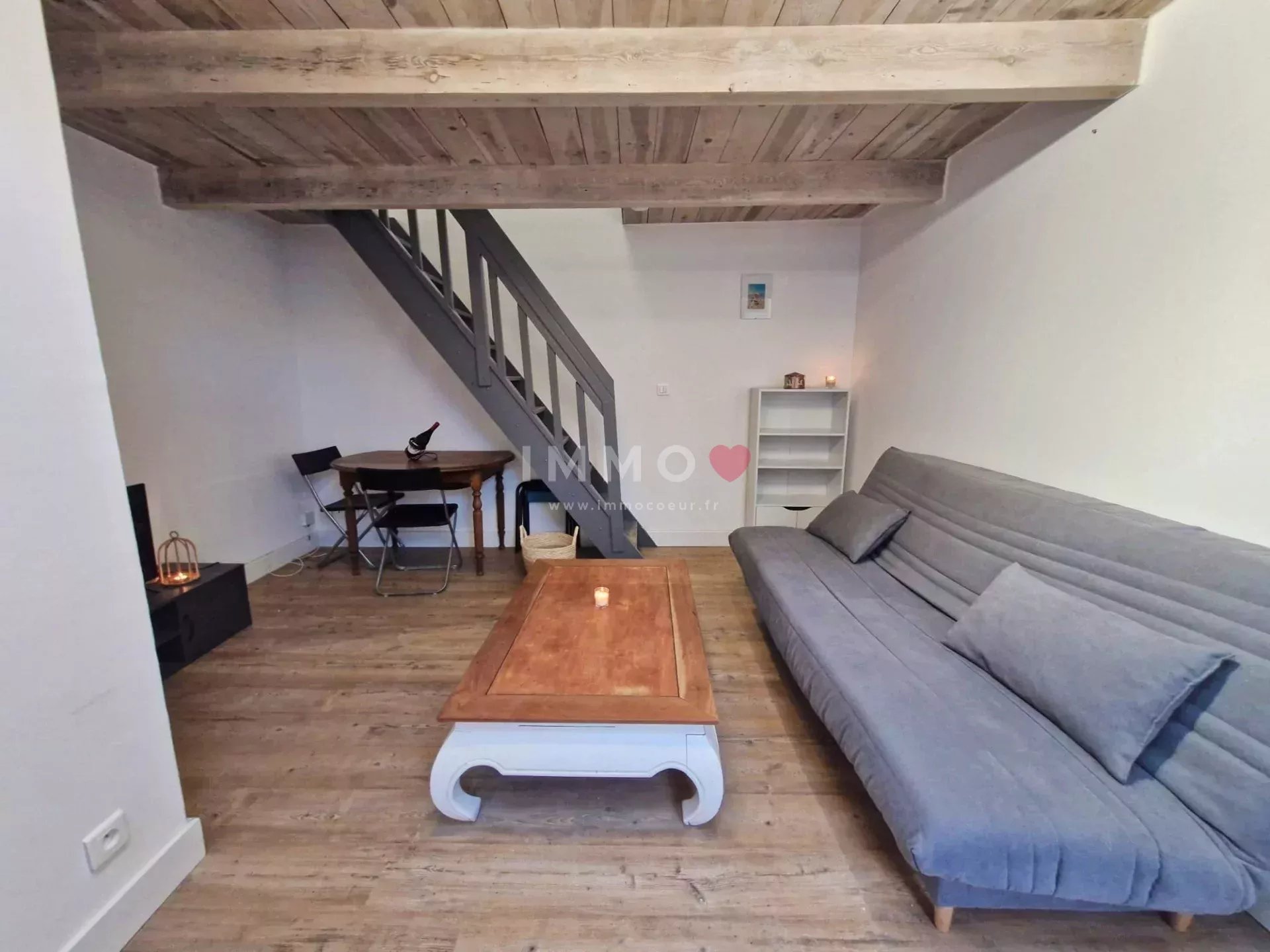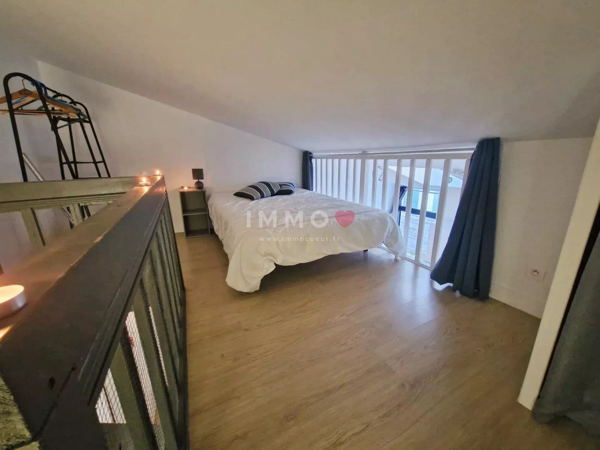 2 terrasses, séjour/cuisine, salle d'eau/toilettes et chambre en mezzanine.