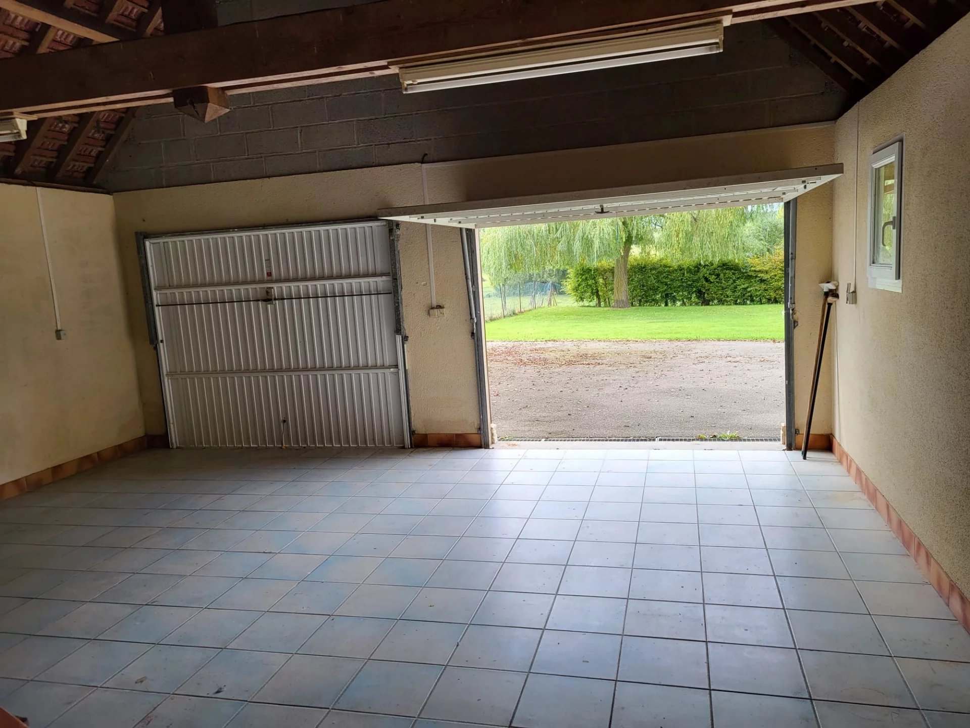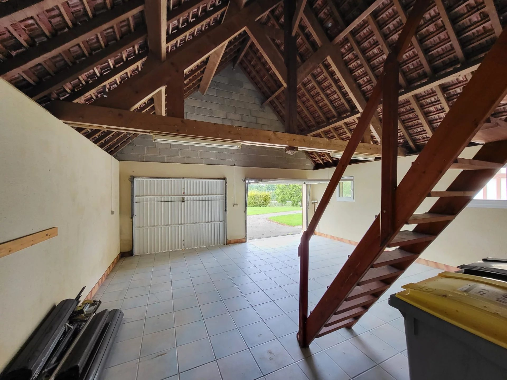 The outbuilding features a 2-car garage, 2 insulated rooms, and a mezzanine attic!