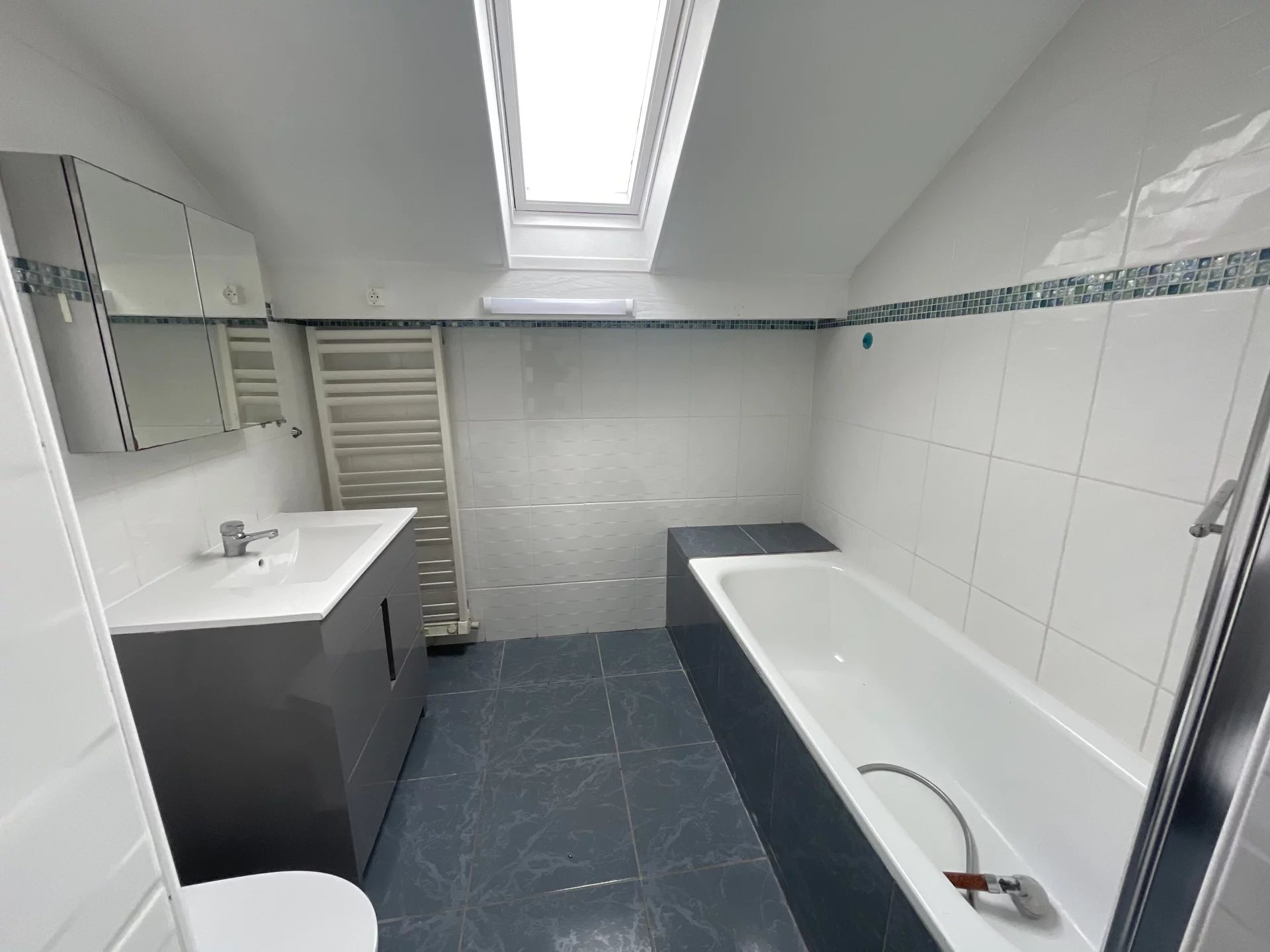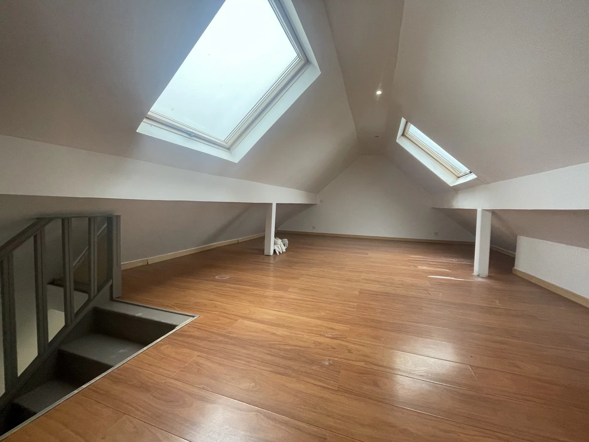 À l'étage, trois chambres, dont deux avec placards intégrés, vous offre de l'espace pour la famille. De plus, un grenier mansardé peut être utilisé comme bureau ou chambre 5 chambres au total.