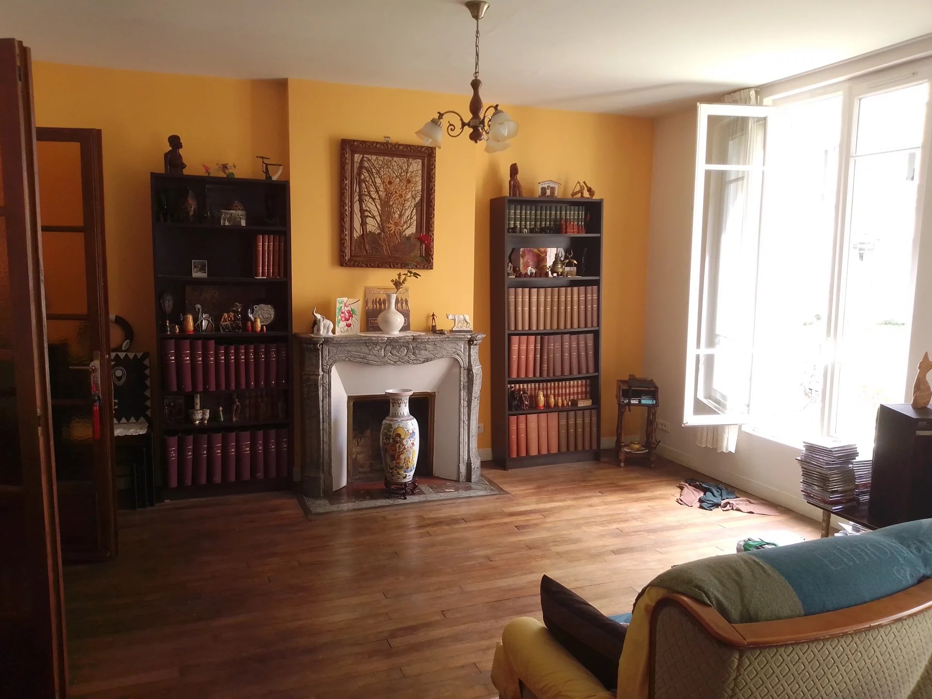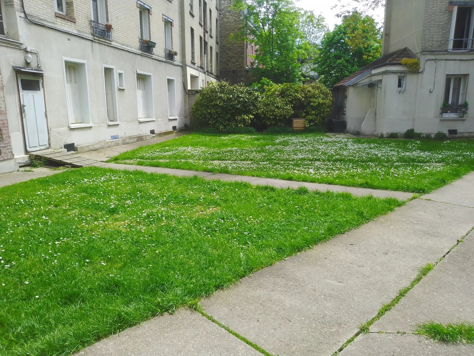 Appartement de type T3 de 80 m² au rez-de-chaussée d'un immeuble donnant sur une rue très calme composé : d'un séjour de 23 m² avec une cheminée donnant sur un jardin en copropriété (possibilité d'acquérir une parcelle d'environ de 15 m² devant les fenêtres), une cuisine séparée donnant sur le jardin ouvrable sur la pièce de vie, deux chambres, dont une avec son coin salle de bains, une salle d'eau avec WC, parquet, chauffage individuel, eau chaude individuelle,