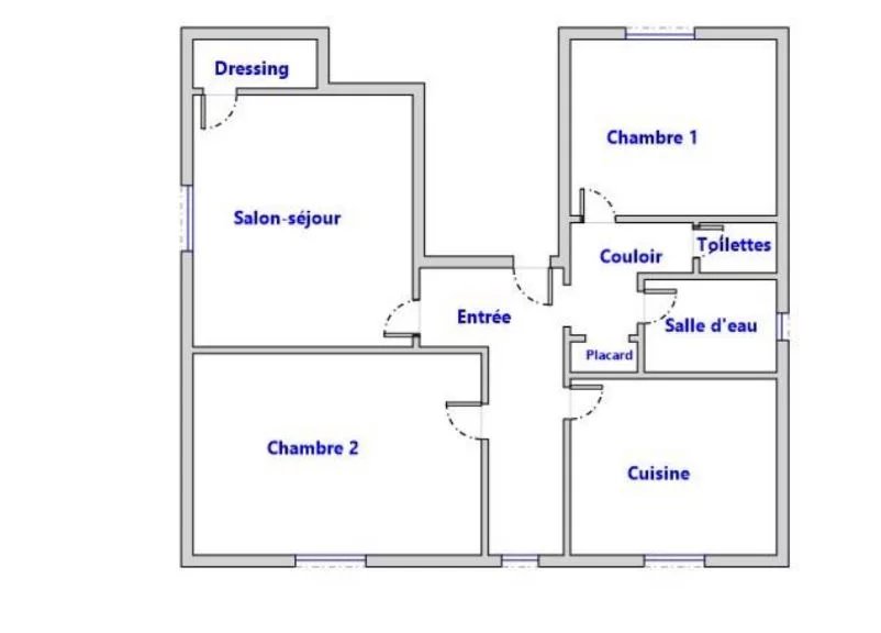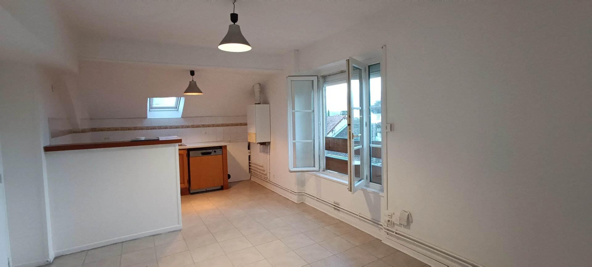 A 45 sqm T3 apartment with 1 living room/kitchen, 2 bedrooms, 1 bathroom with toilet. Currently rented.