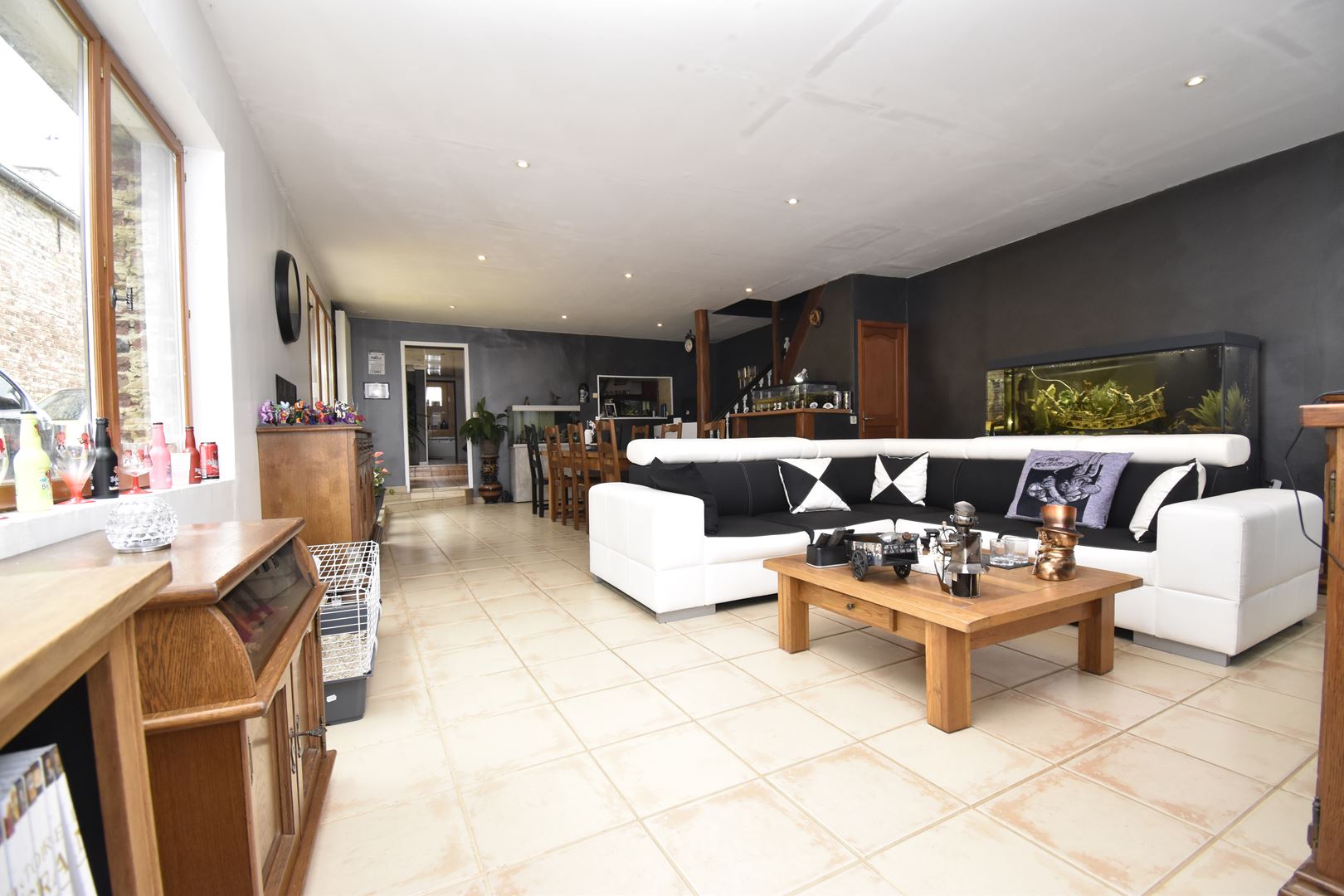 - Entrée avec vestiaire d'environ 13 m², salle de bain de 6.5m², chambre de 11 m² , buanderie de 7.5 m², wc , cuisine équipée de 12m² ouverte sur le salon/salle à manger de plus de 55 m², grenier d'environ 20 m² aménageable et cave