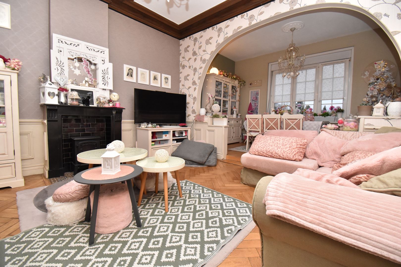 - Rez de chaussée : Entrée, salon/salle à manger d'environ 35m2, cuisine équipée avec espace de pas d'environ 20m2, véranda non chauffée de 13m2, wc,